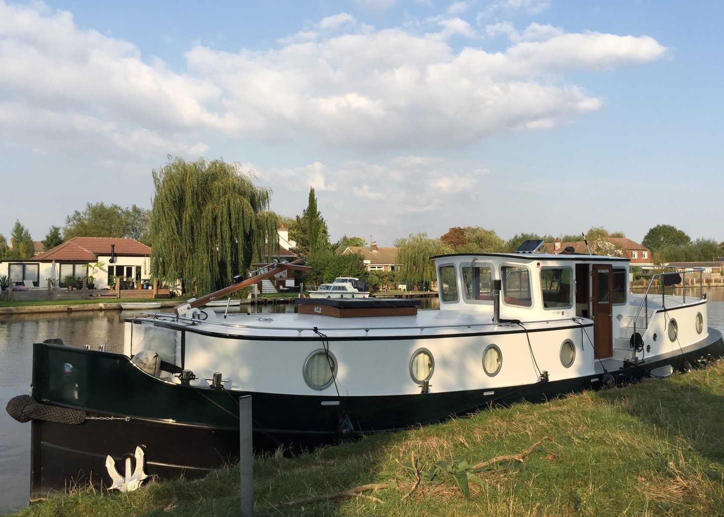 Vedette construite en 1973. L’intérieur est lumineux et bien agencé. Il offre un séjour ouvert avec poste de pilotage, salon et coin repas, une cuisine, une douche et un WC, une cabine avec deux lits simples. La dinette est convertible pour offrir un couchage supplémentaire.