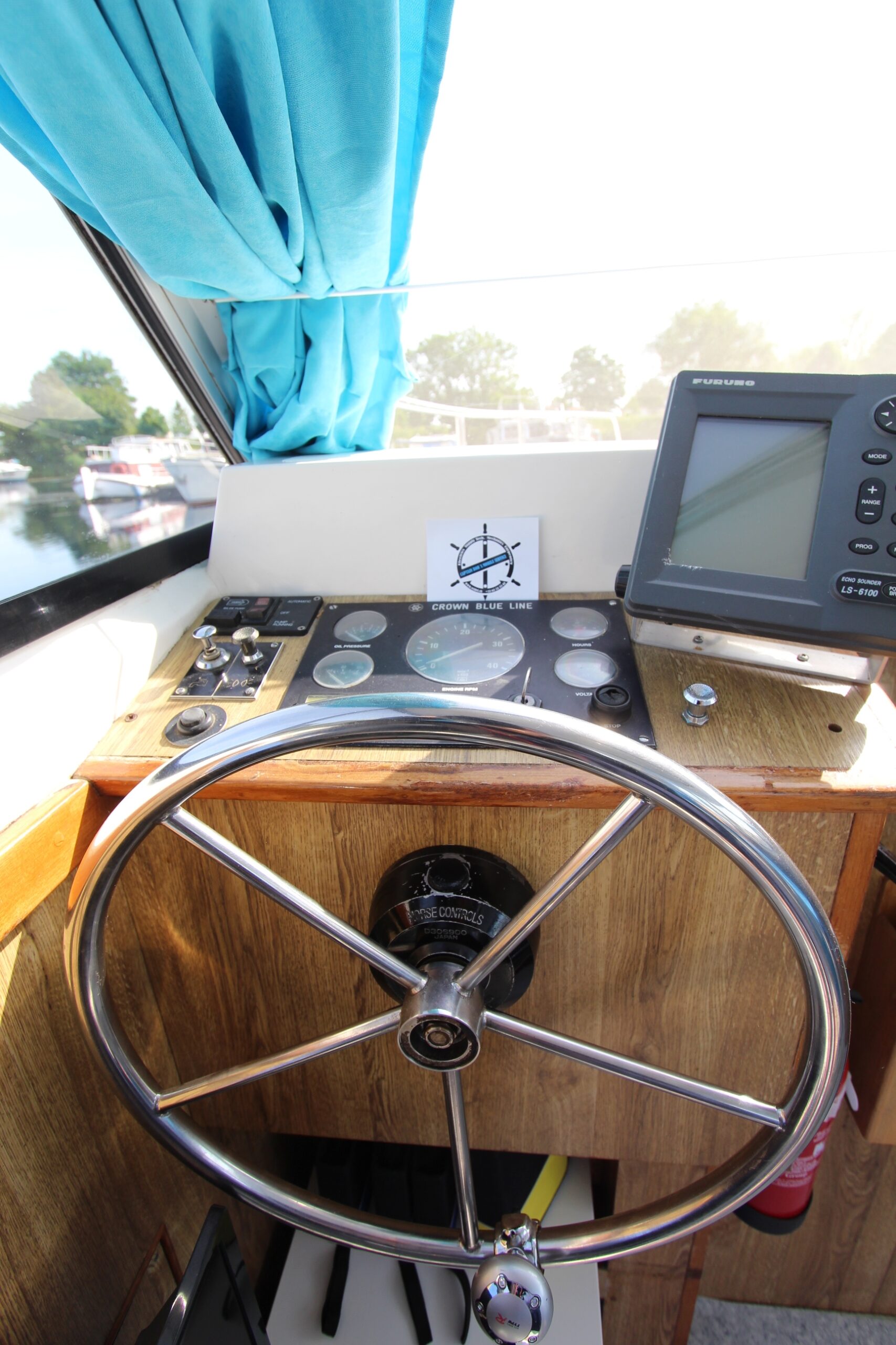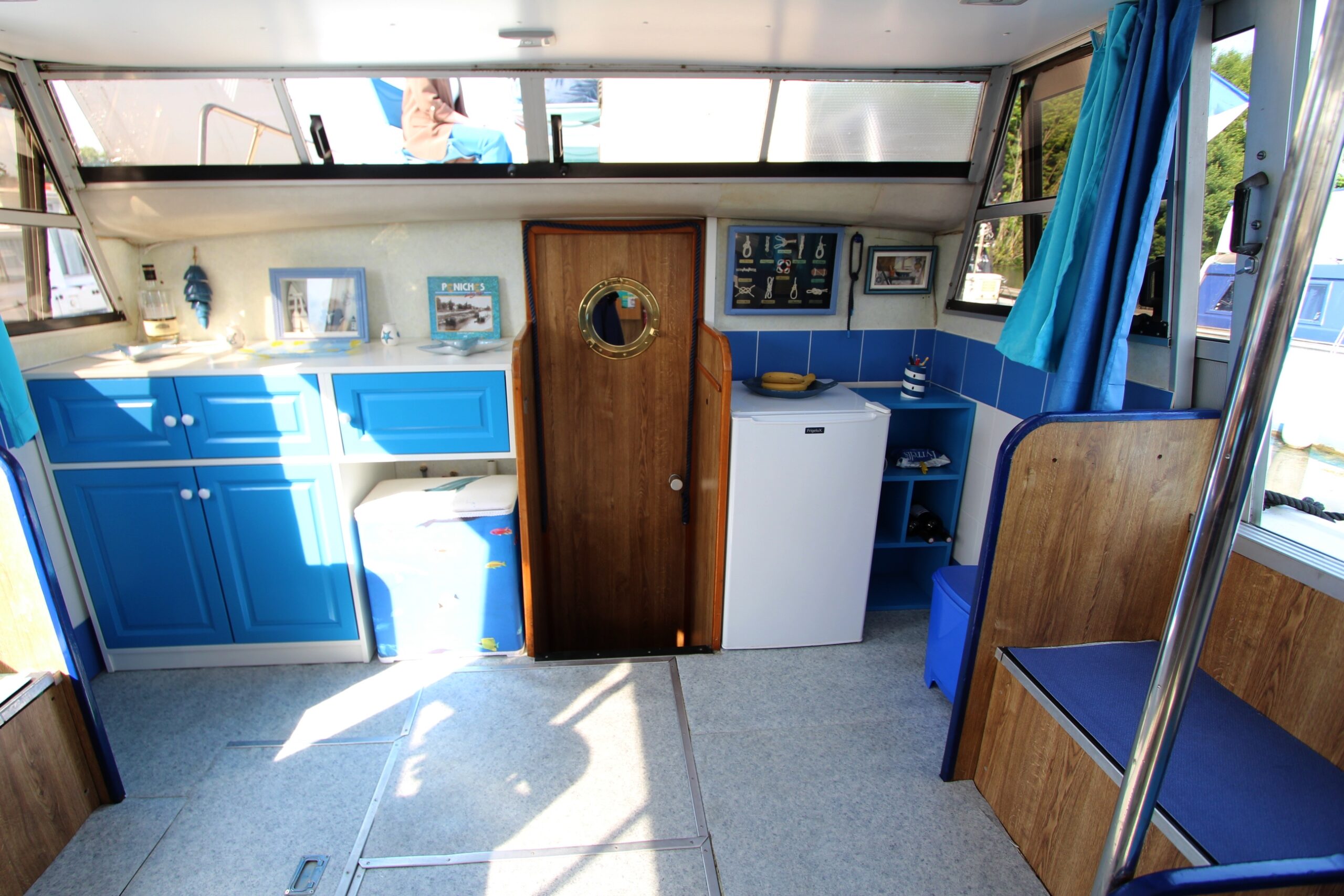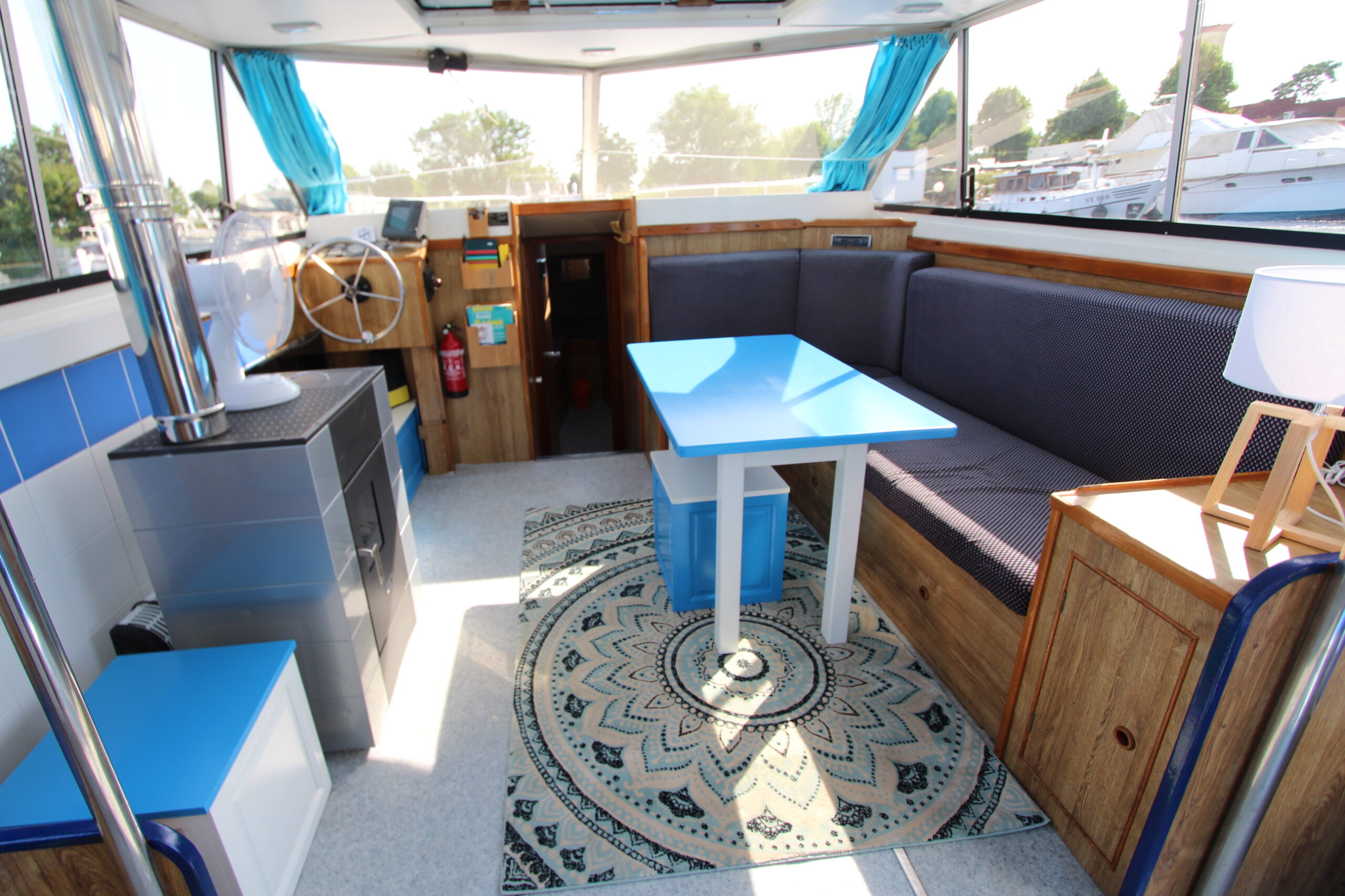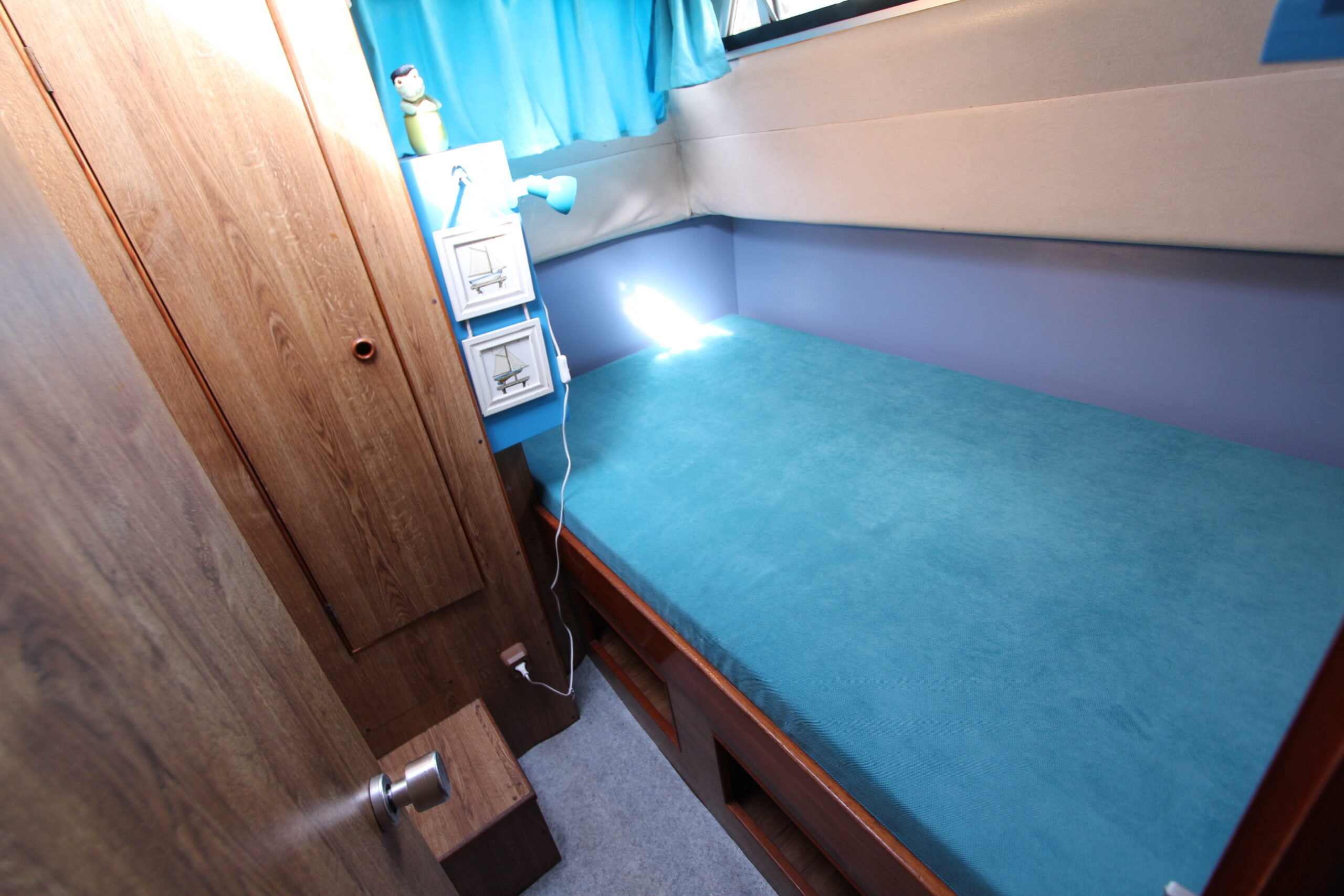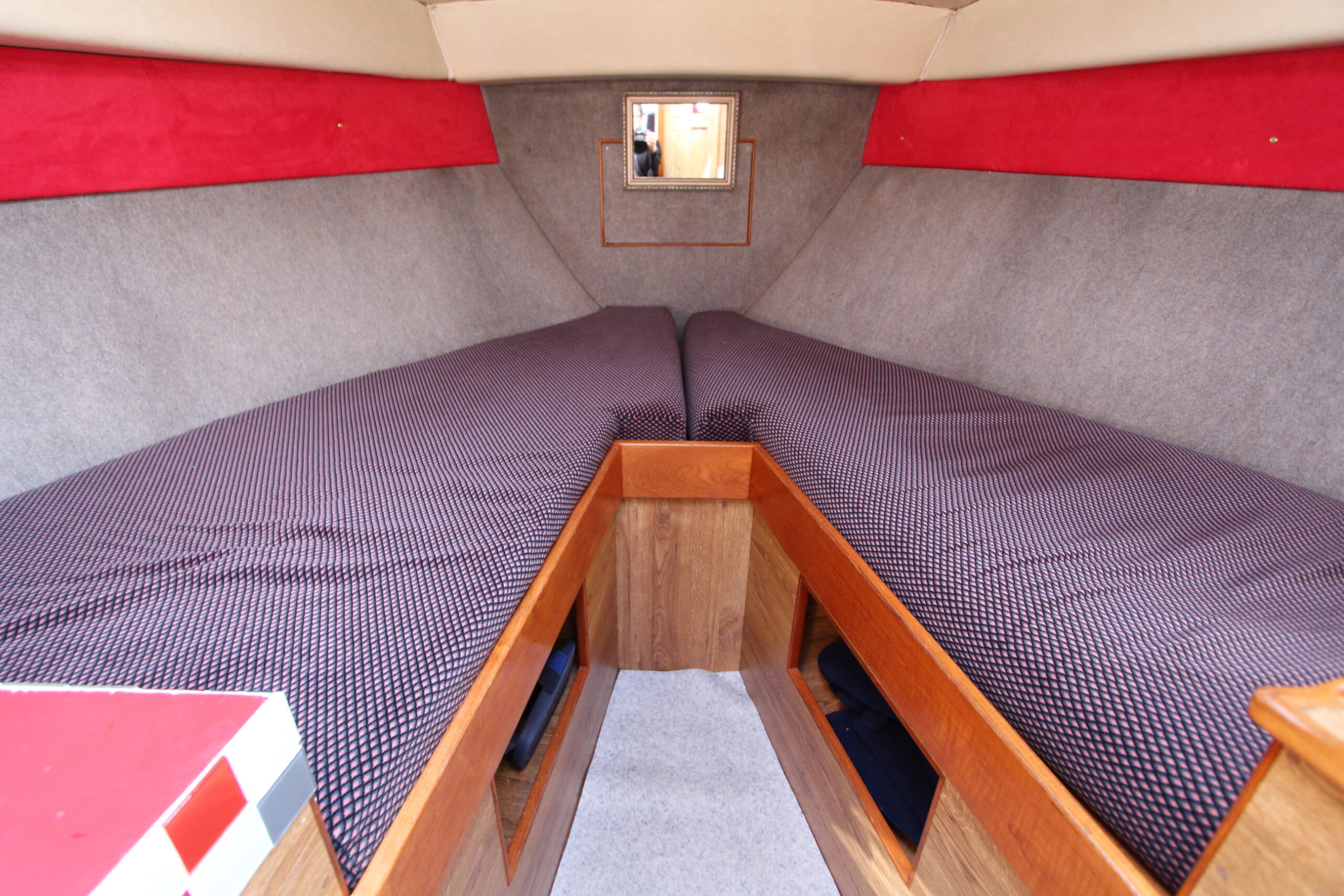 Vedette polyester Challenger de 1991. Idéale pour naviguer en famille et avec les amis sur toutes les voies navigables intérieures. Spacieuse terrasse pour profiter d’agréables moments lors de vos accostages. Deux entrées latérales. Espace à vivre lumineux offrant vue panoramique sur l’eau et comprenant un salon et un poste de pilotage. L’avant dessert une cabine avec lits simples, un WC et une cuisine. Sur l’arrière, vous retrouverez une dinette convertible en lit double, deux cabines avec lit double, une salle de bain et un WC.