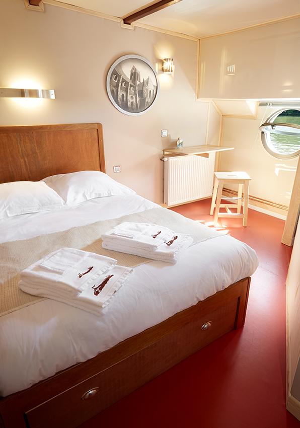 Péniche Freycinet traditionnelle construite en 1930 et aménagée avec sobriété et élégance. Conforme aux normes Européenne sont certificat communautaire est valide jusqu’en Septembre 2028. Vous êtes une famille nombreuse ? Vous aimez recevoir ? Un projet de chambres d’hôtes ? Ce bateau est peut-être celui qu’il vous faut. La terrasse offre de réels moments de détente avec sa vue paisible sur l’eau. L’intérieur est spacieux et confortable. Il se compose du classique logement marinier à l’arrière avec chambre double et salle de bain, d’une cuisine, d’une salle à manger, d’un salon. Un couloir dessert cinq cabines avec salle de bain privatif.