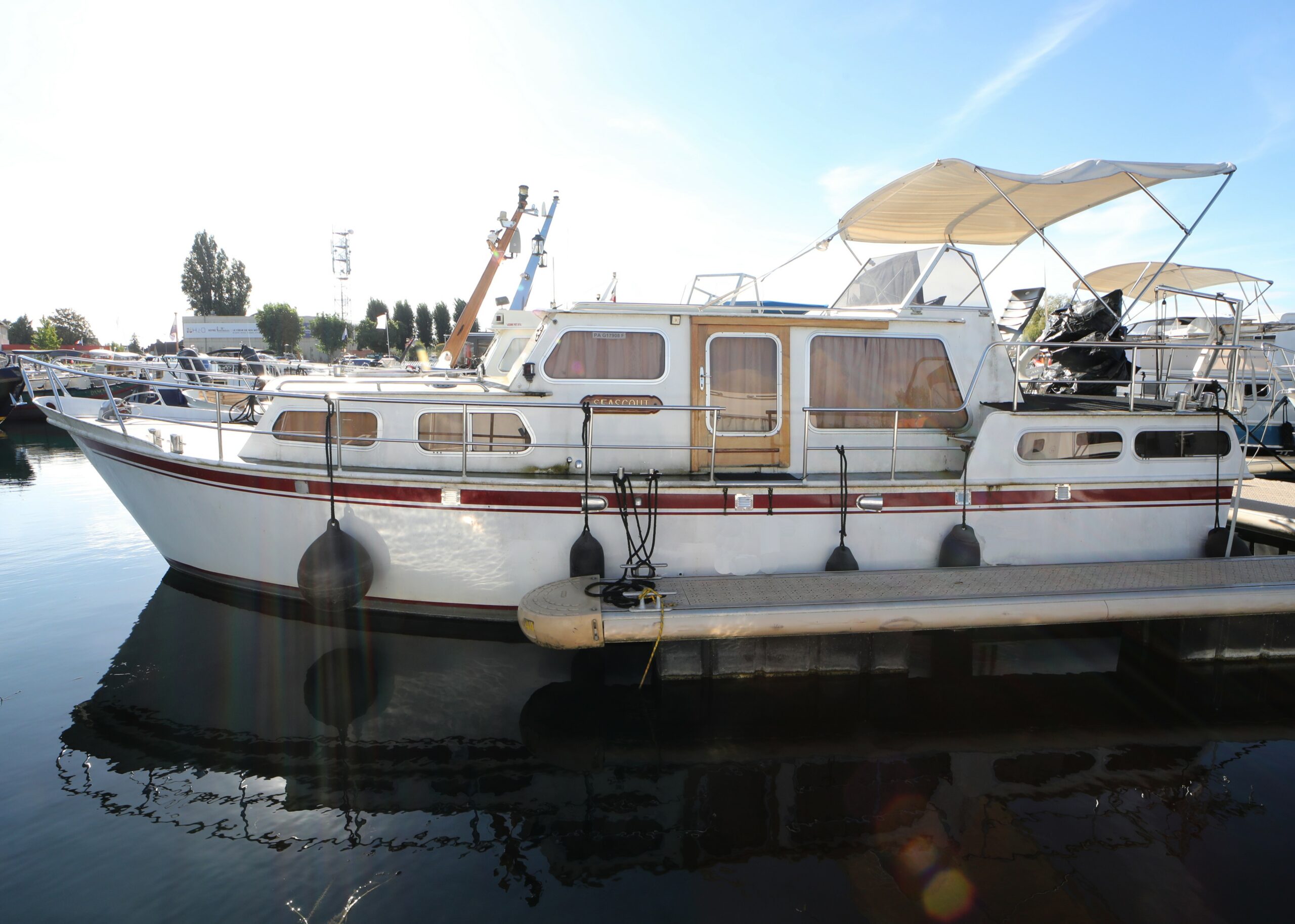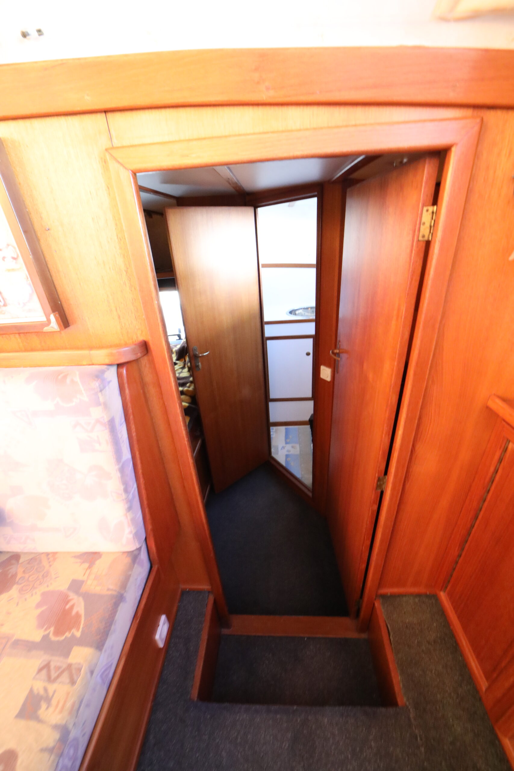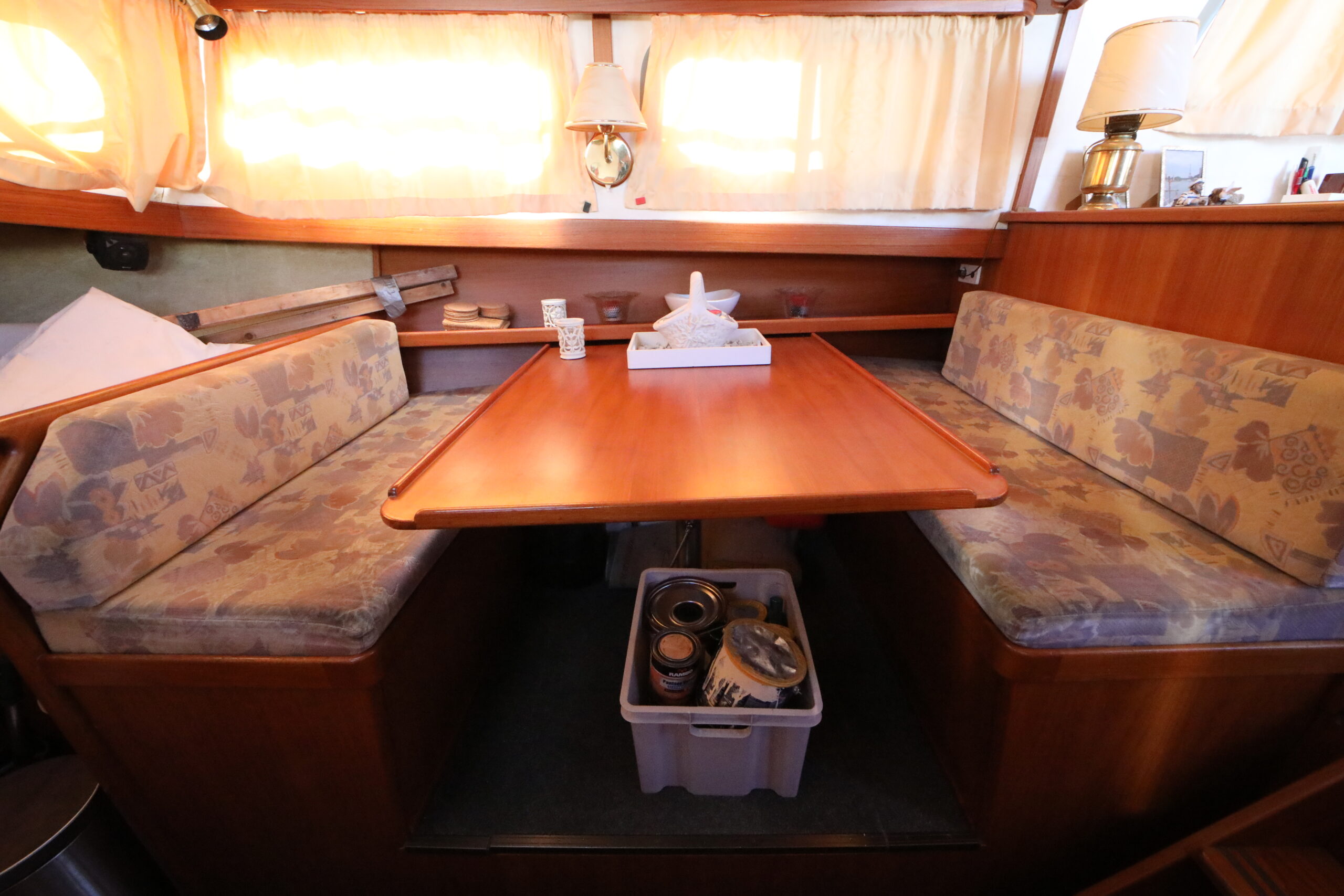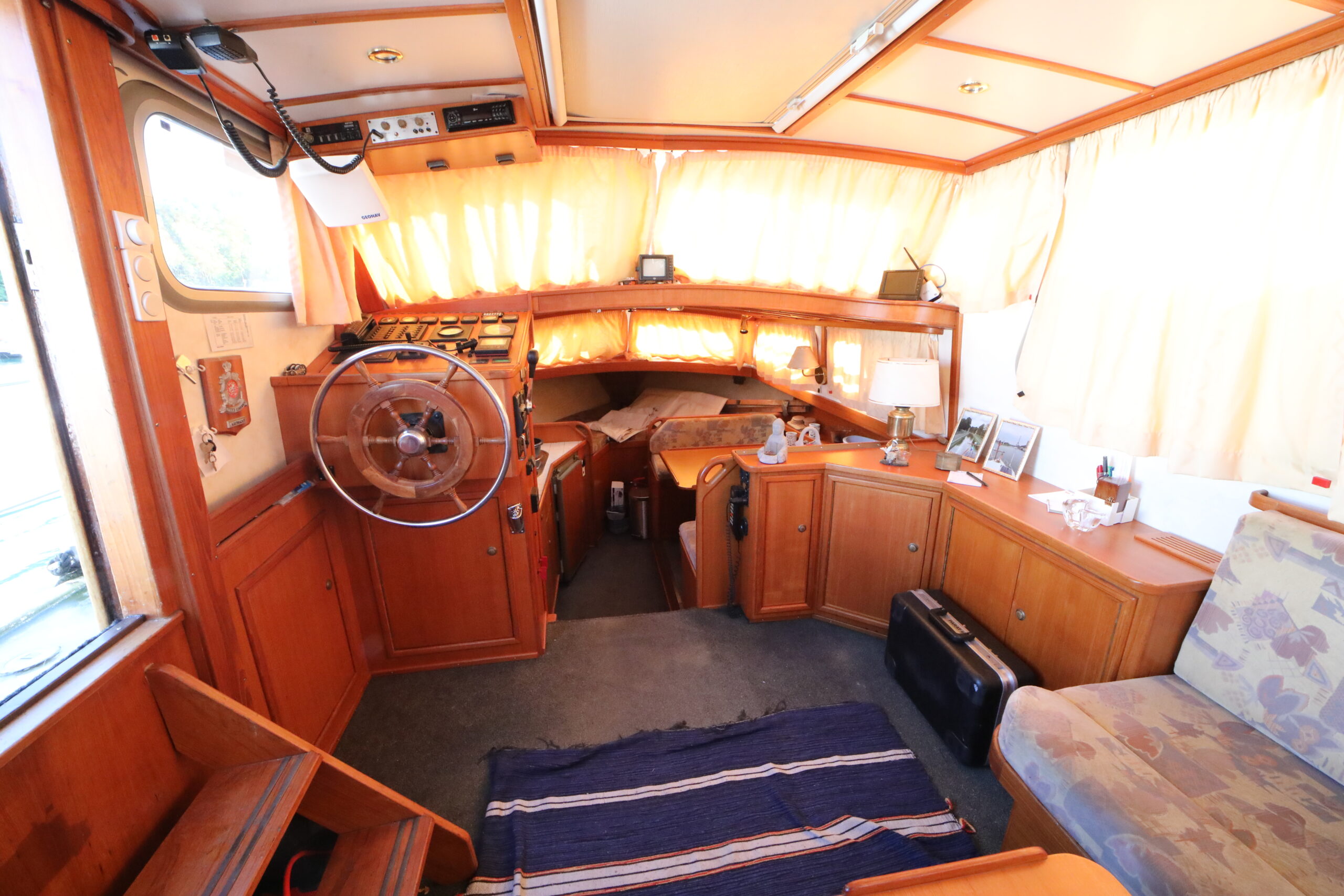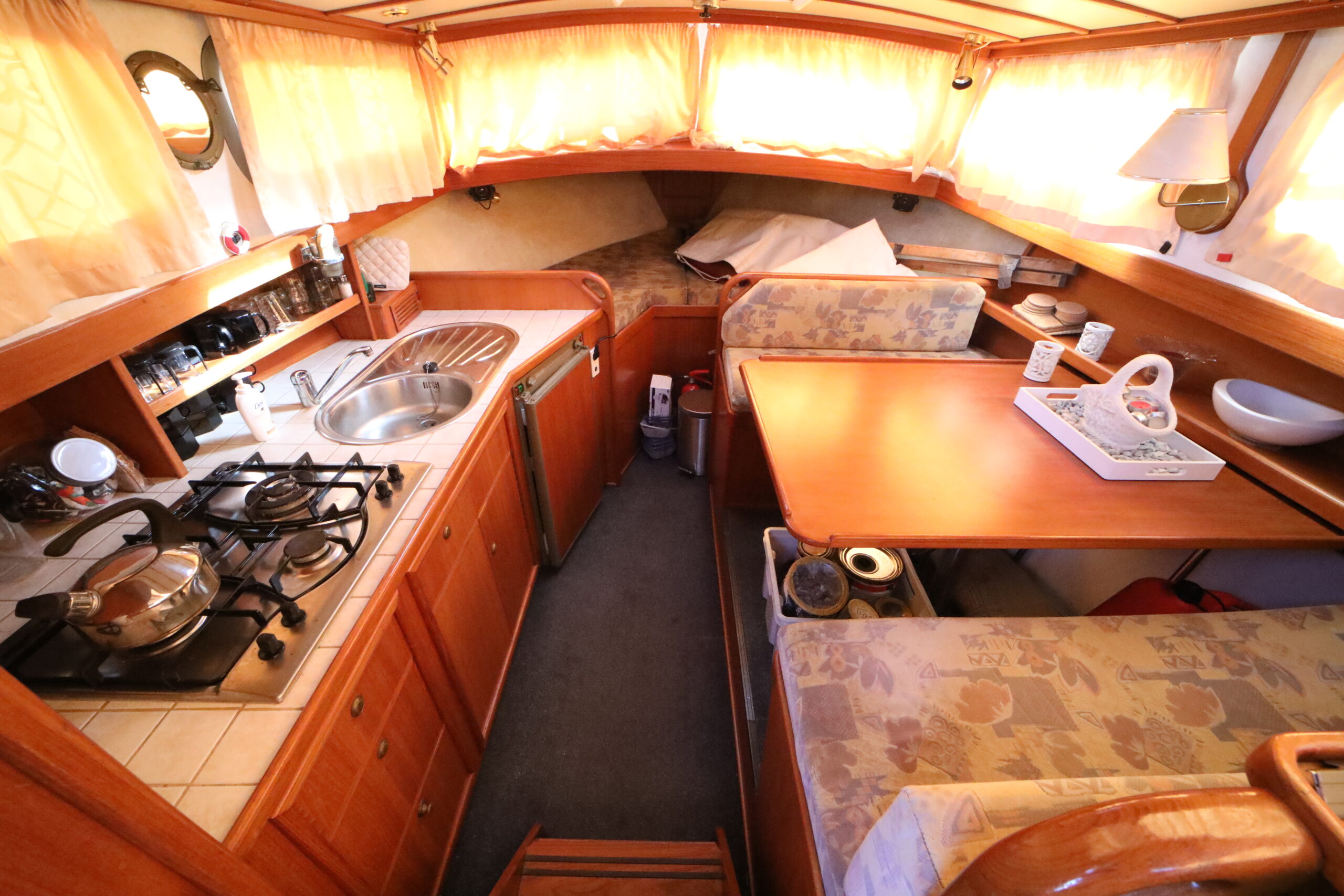 Jolie vedette hollandaise de 1979, idéale pour parcourir sereinement les canaux français et européens. La terrasse, agréable en navigation comme au mouillage, offre un bel espace pour profiter des paysages. L’accès latéral mène à un intérieur confortable et lumineux, composé d’un salon accueillant, d’une cabine avec lit double et salle de bain avec douche et wc. La cuisine est très fonctionnelle, la dinette est conviviale. Deux couchettes confortables se trouvent dans le pic avant du bateau.