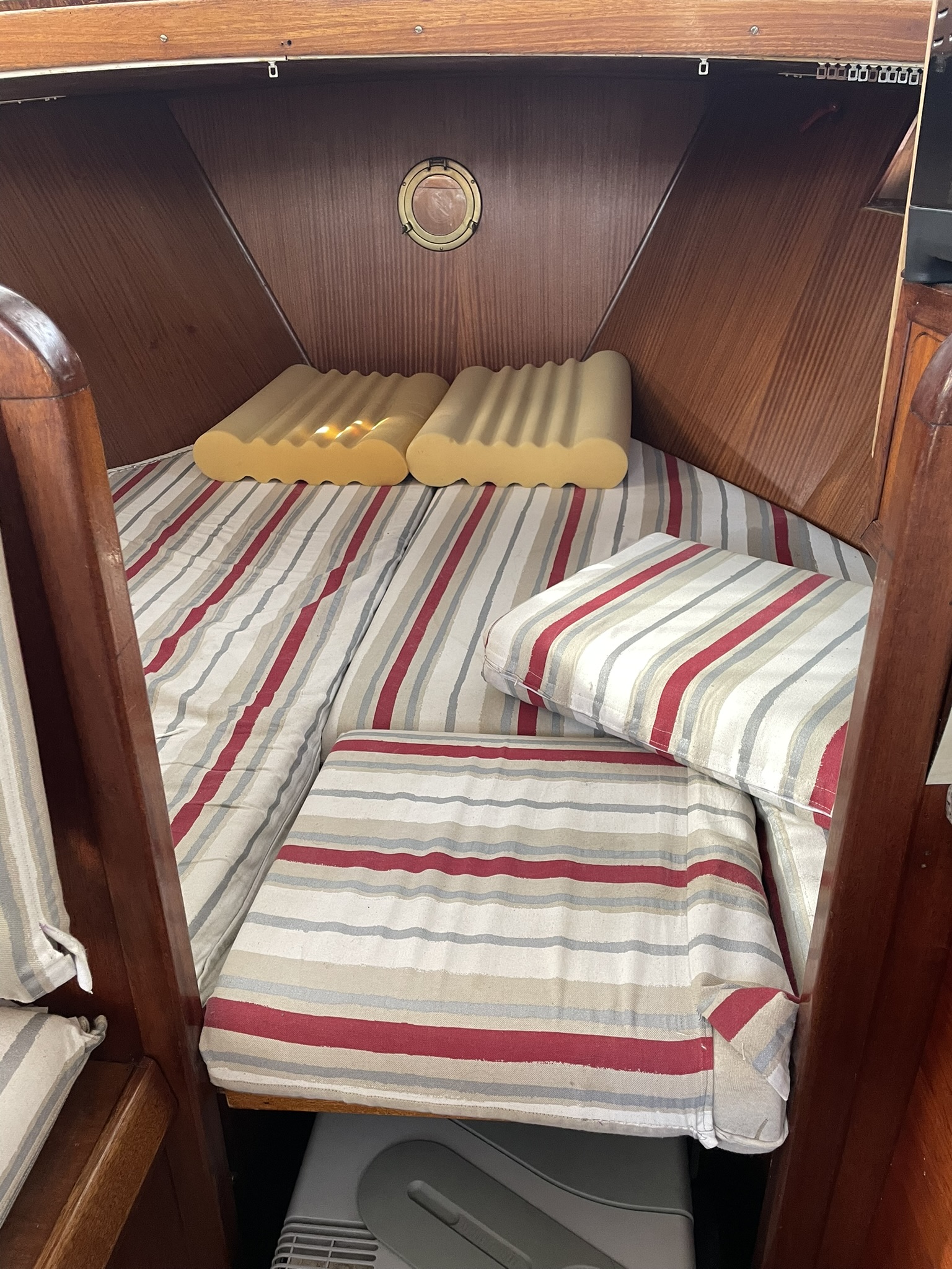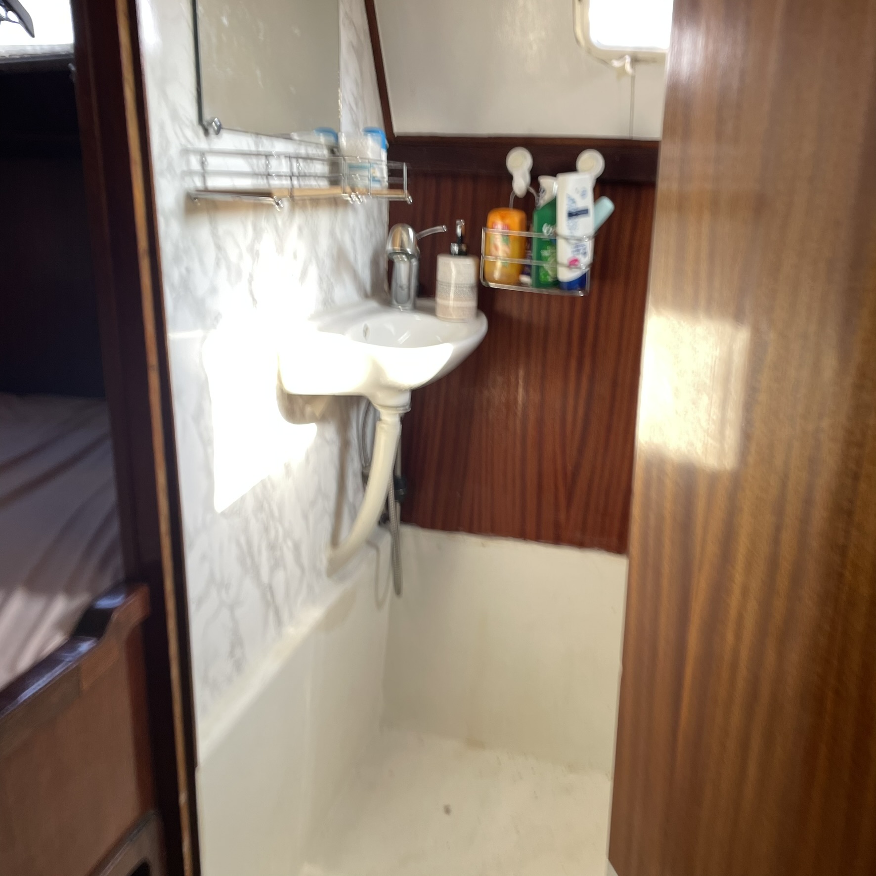 L’agencement comprend deux cabines confortables, idéales pour accueillir famille et amis. Une salle d’eau avec douche et WC complète l’ensemble, assurant un bon niveau de confort pour les séjours prolongés.