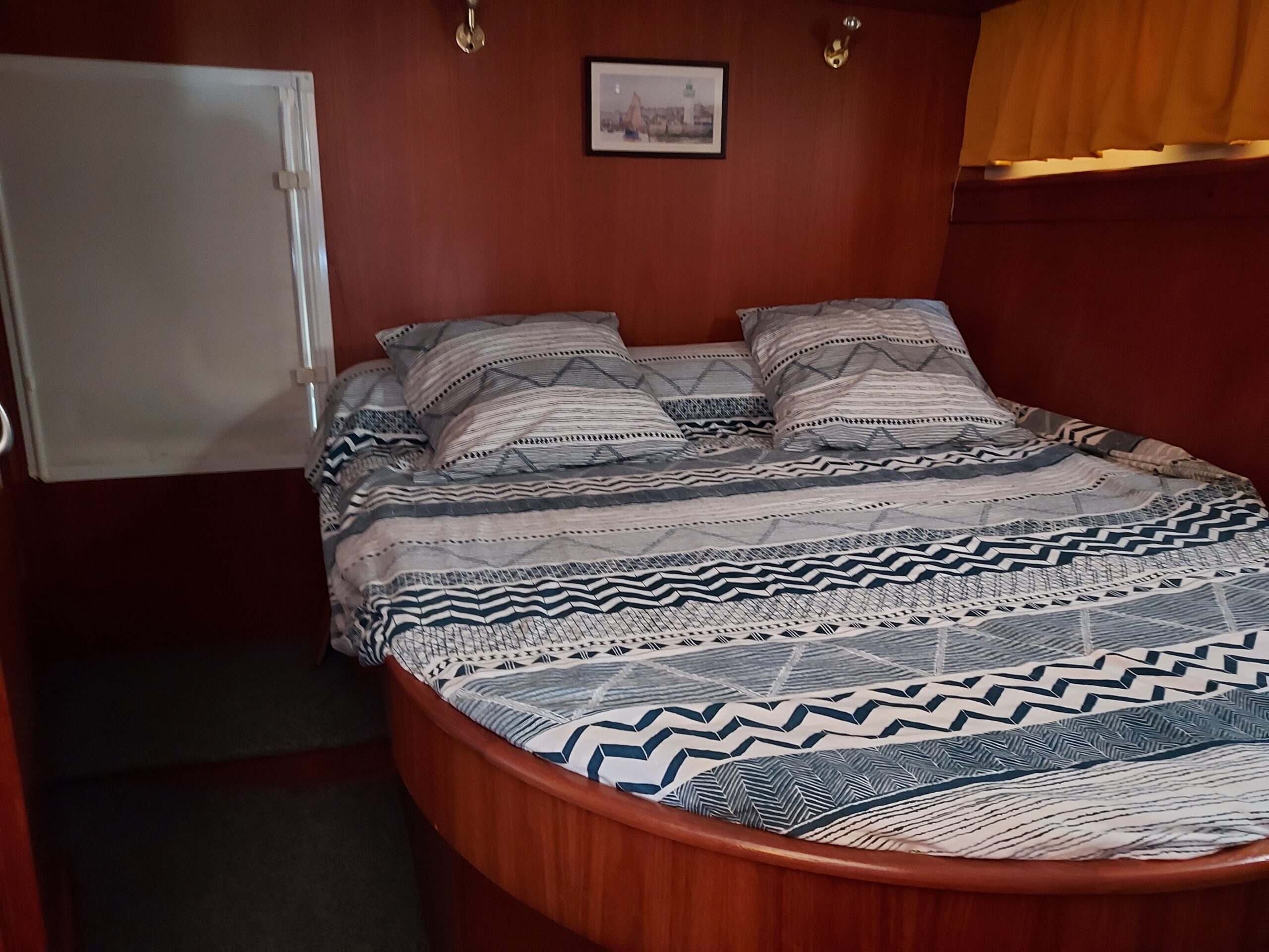 Construite en acier par le chantier Pedro, cette vedette de 10,60 mètres incarne un parfait compromis entre robustesse, confort et élégance. Son intérieur lumineux, ses finitions bois, ses deux cabines fermées et son salon spacieux offrent un cadre de vie chaleureuse, tandis que sa cuisine équipée et sa salle d’eau avec WC assurent une vraie autonomie à bord. Avec ses larges passerelles, sa plateforme de bain confortable, elle permet de naviguer en toute sérénité, été comme hors saison.