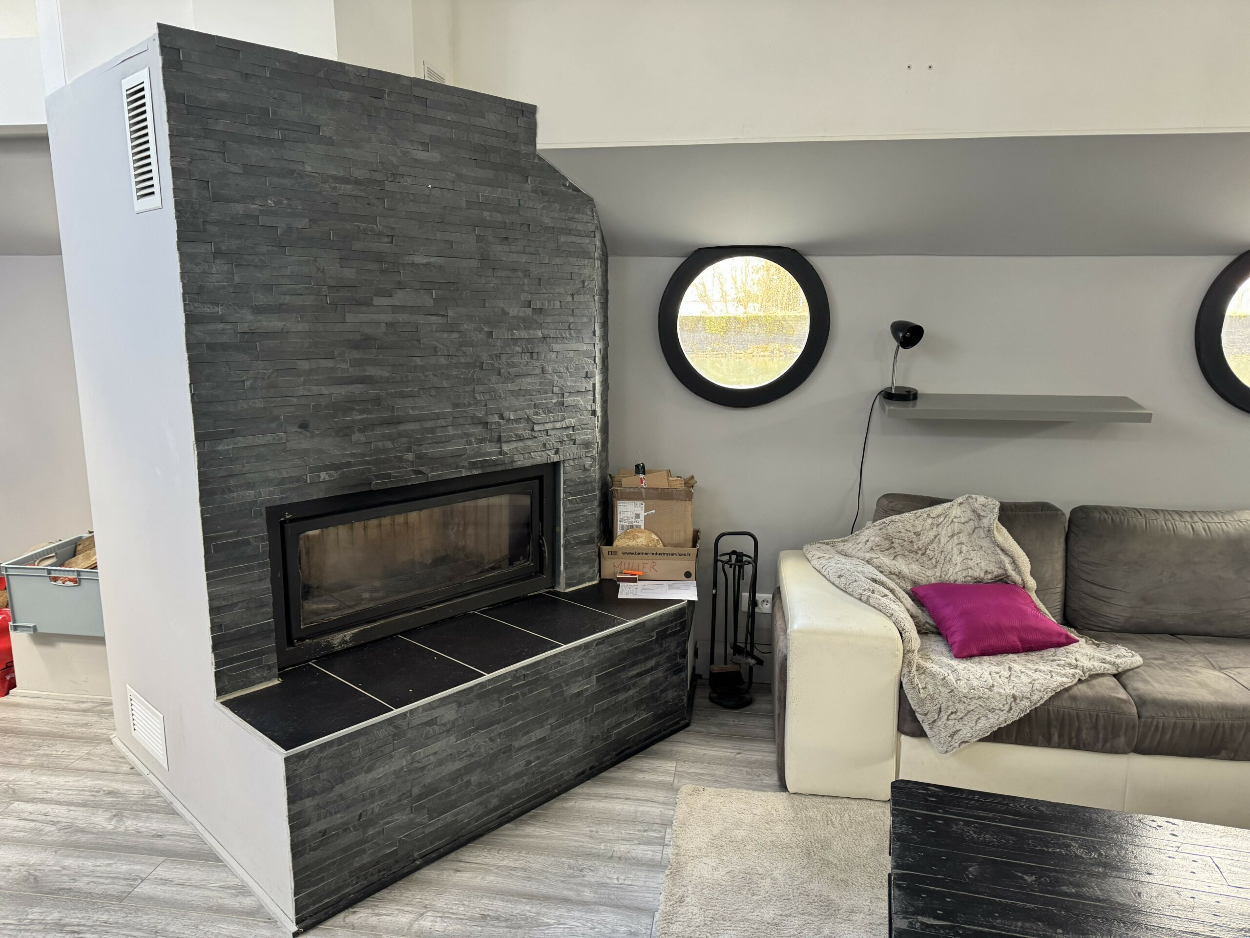 Le cœur du bateau est une immense pièce à vivre, baignée de lumière, offrant une très grande hauteur sous barrot et ouverte sur une cuisine contemporaine, idéale pour recevoir et partager. Une cheminée, complétée par une pompe à chaleur, assure un confort optimal tout au long de l’année.