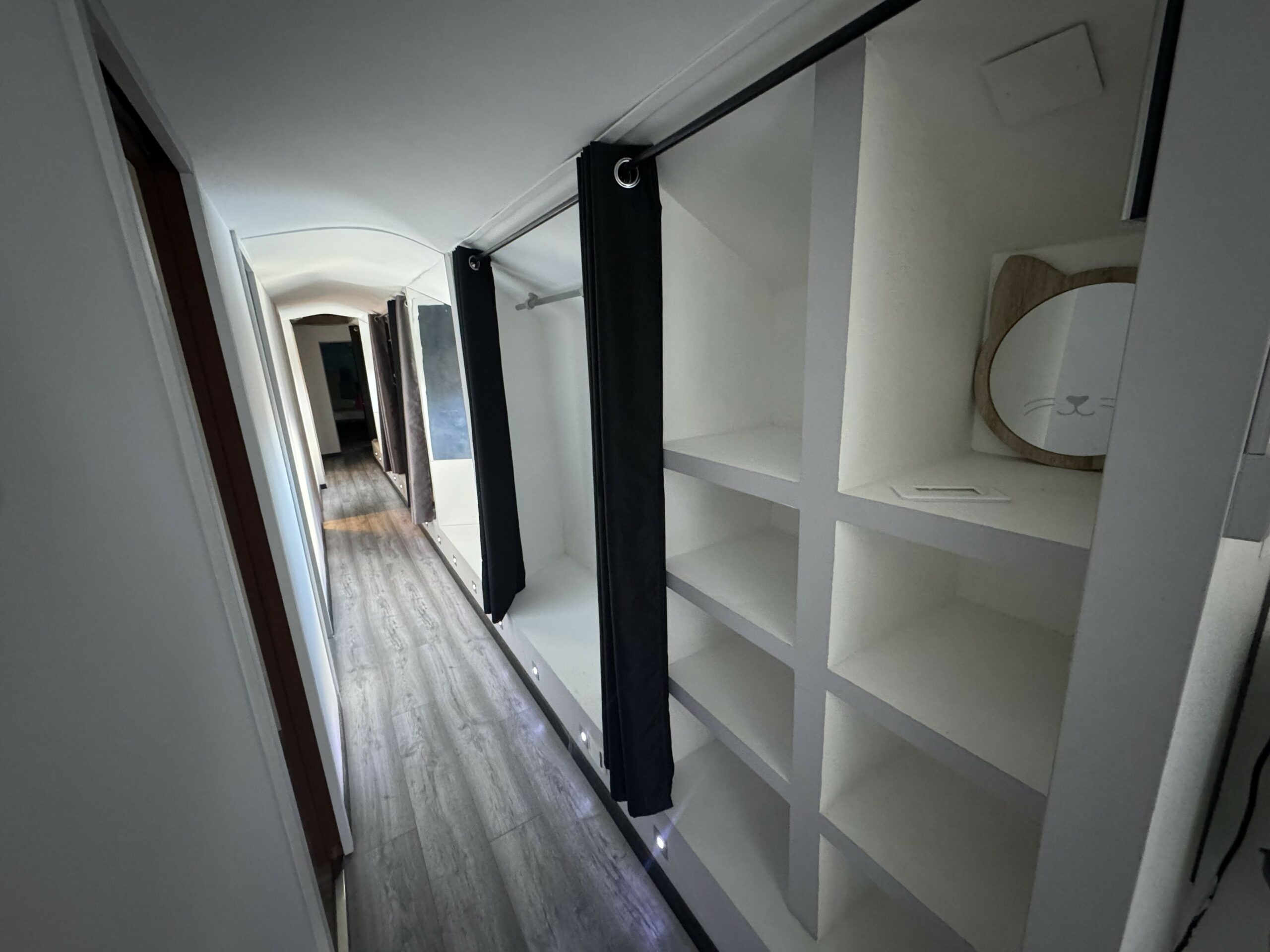 Elle propose deux cabines confortables, ainsi qu’une spacieuse salle de bain moderne. L’ancienne cabine du capitaine a été transformée en un espace de vie accueillant, parfait pour les moments de détente.