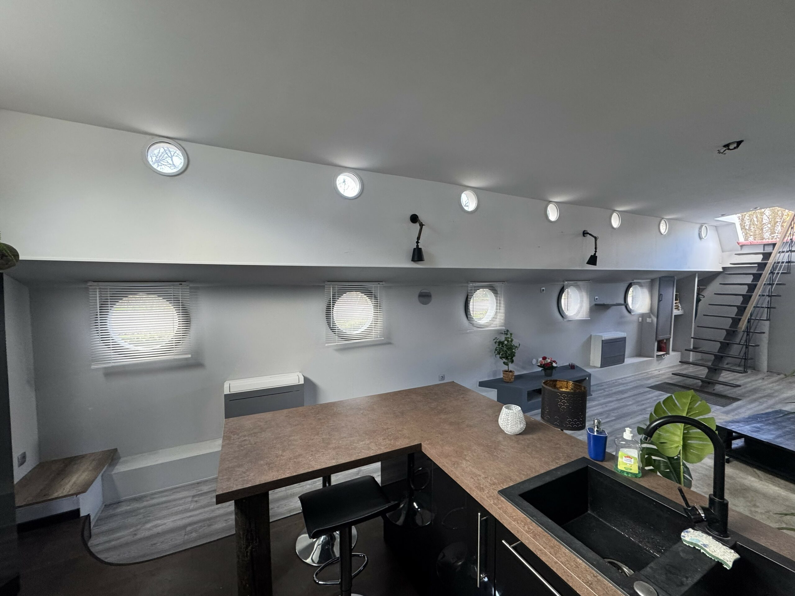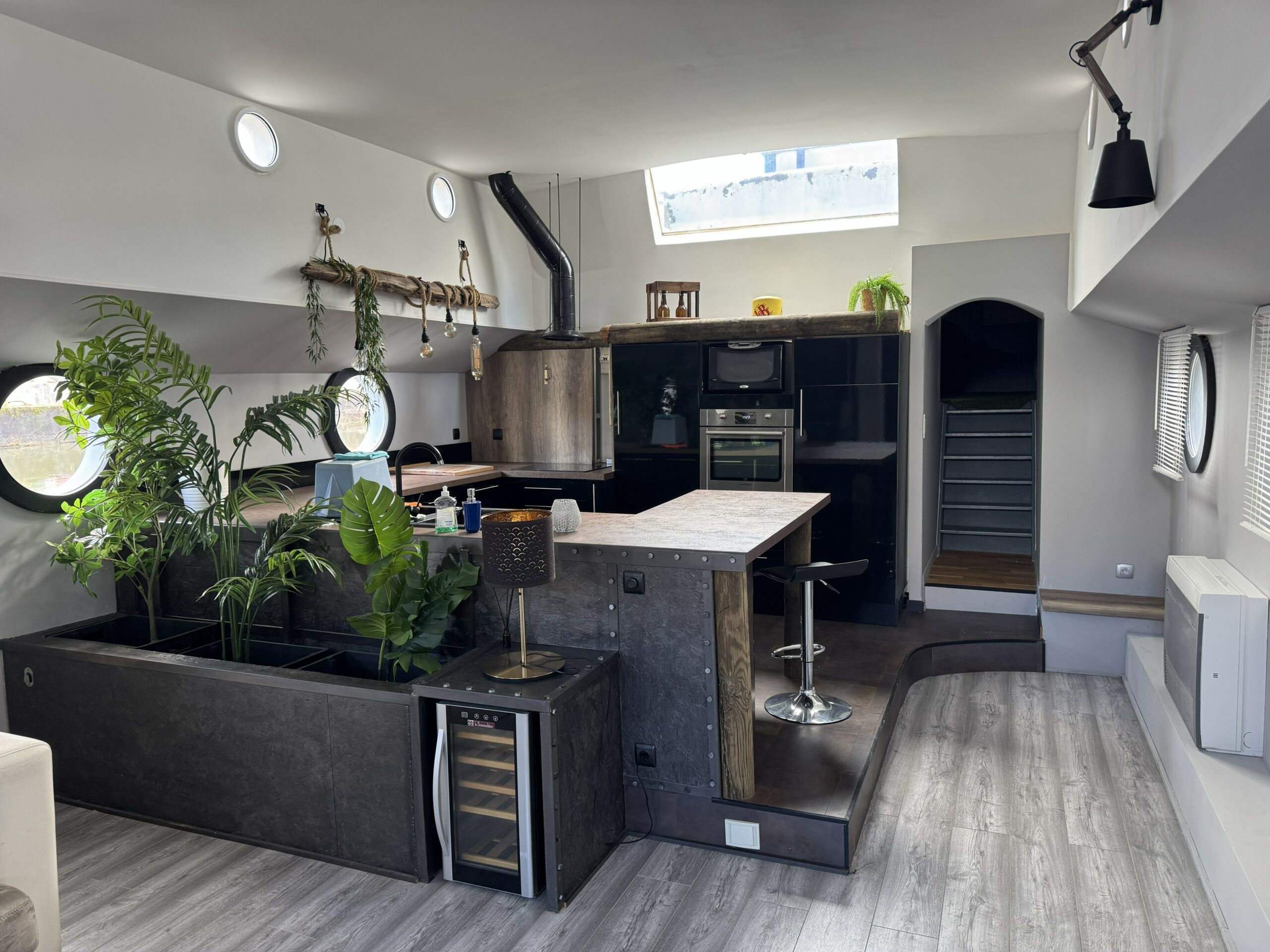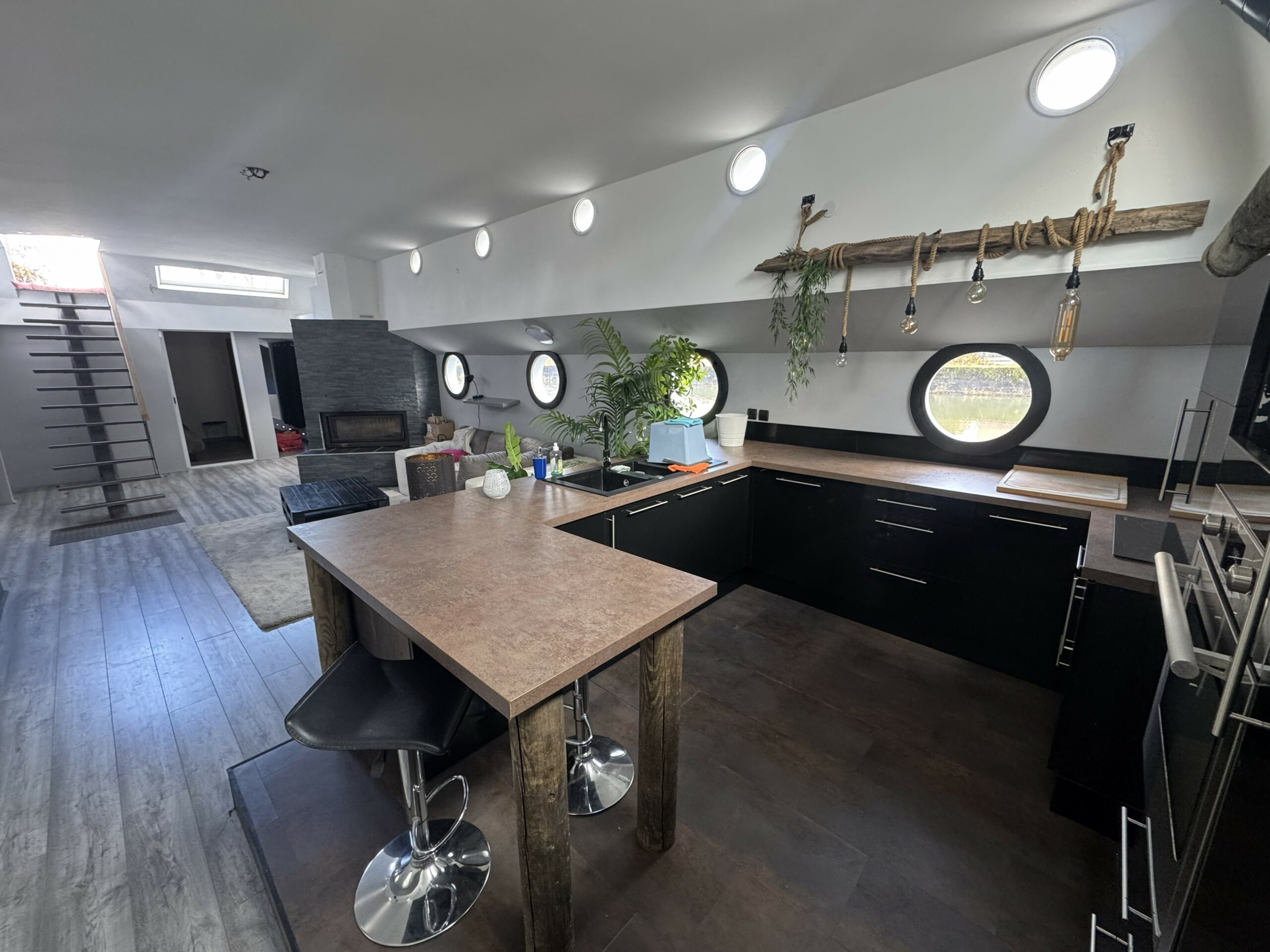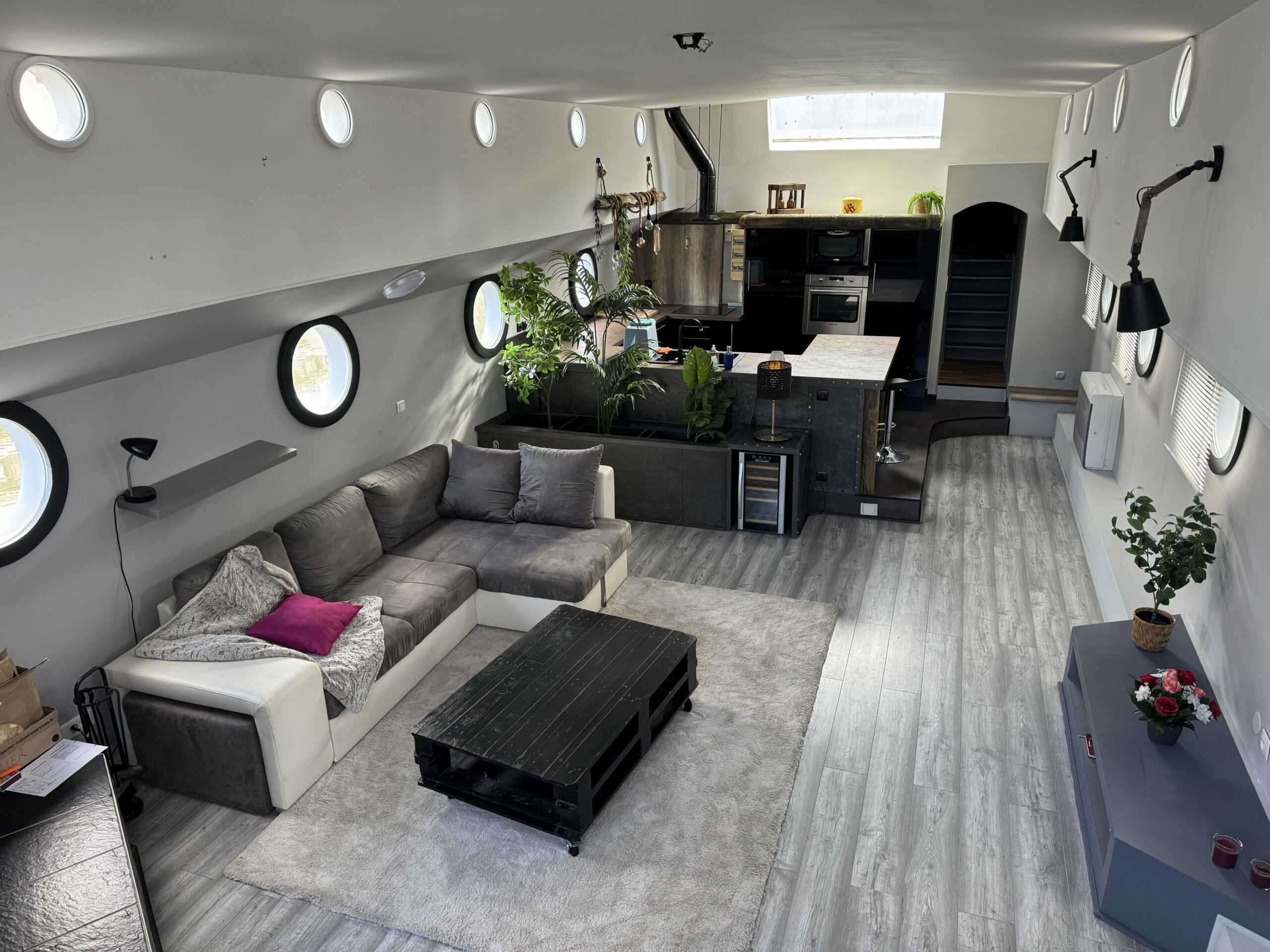 Pensée comme une véritable maison flottante, cette péniche séduit par ses volumes généreux, sa luminosité et son atmosphère chaleureuse.