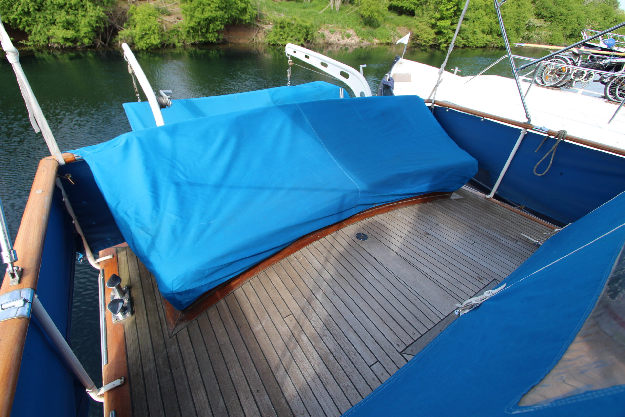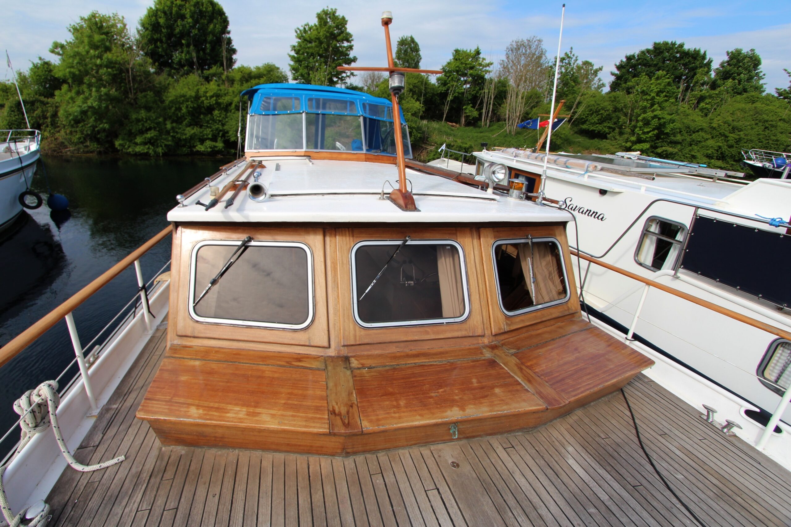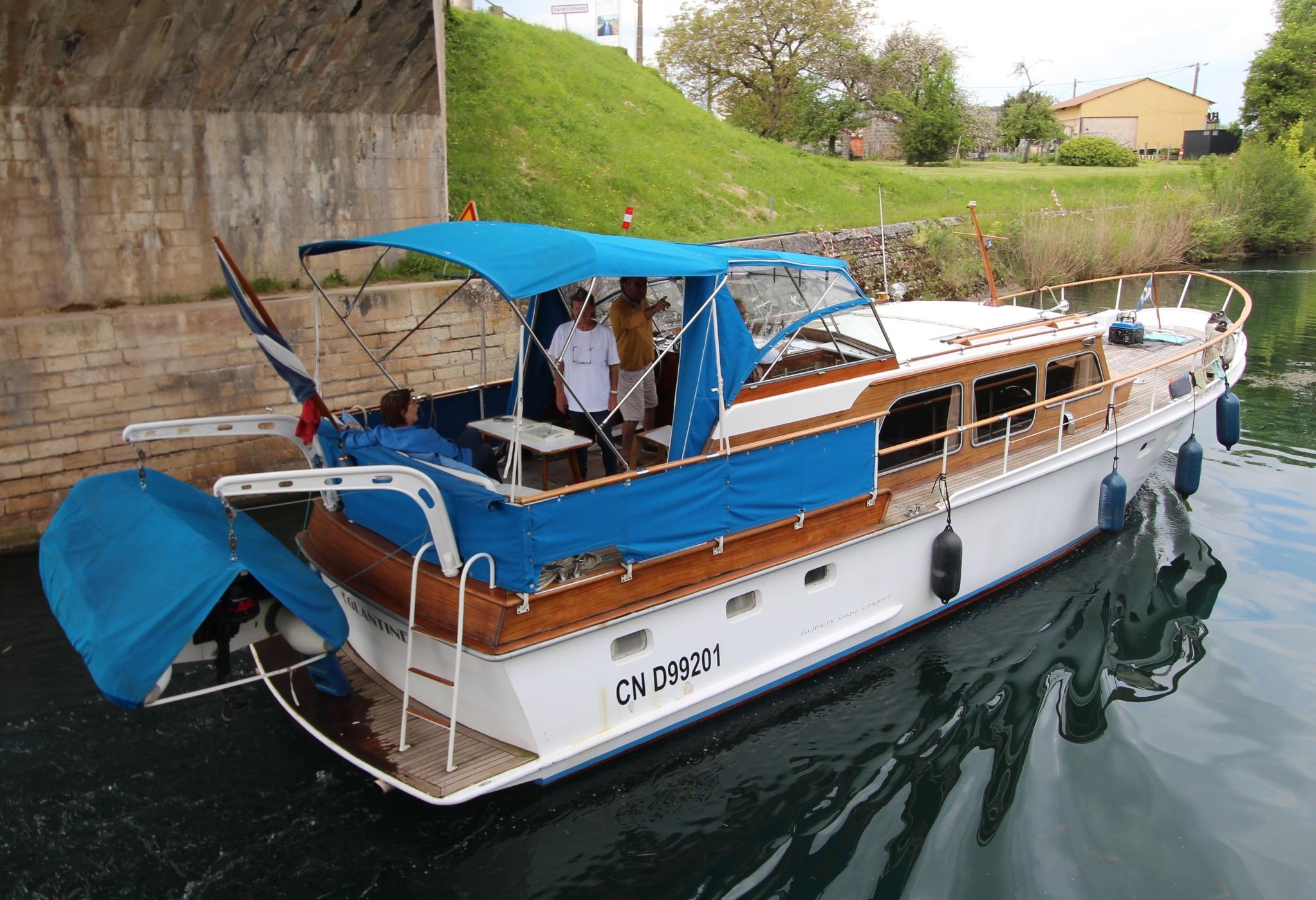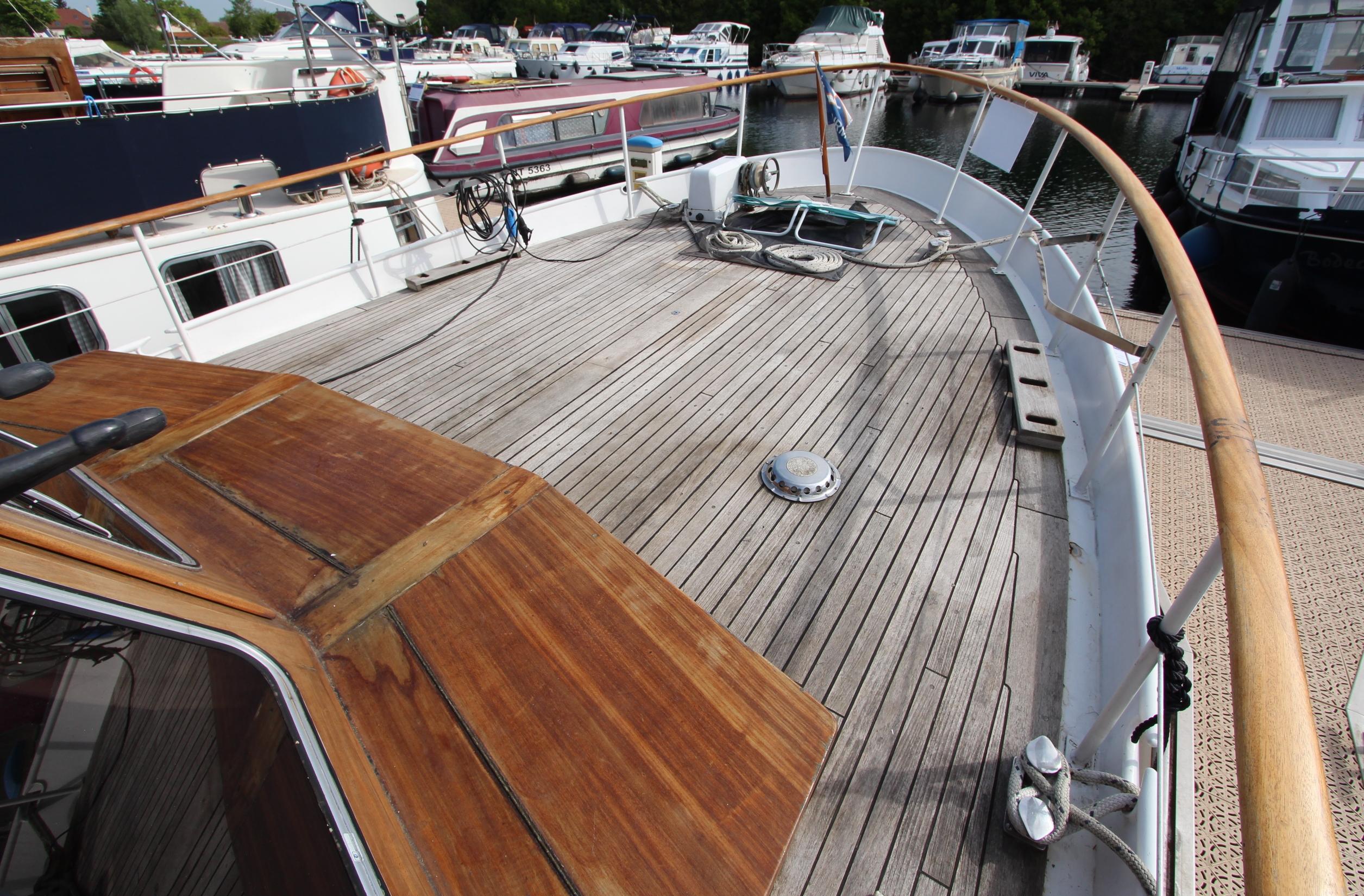 Vous êtes sensible aux belles boiseries ? Ce Super Van Craft à la ligne élégante vous attend pour continuer son voyage. Son pont en teck et sa superstructure en acajou lui confèrent un charme intemporel qui ne passera pas inaperçu sur les canaux. La navigation sera facile et une fois à quai, vous logerez dans un intérieur confortable et lumineux offrant un salon convivial, deux cabines, une cuisine, une salle de bain et deux WC.