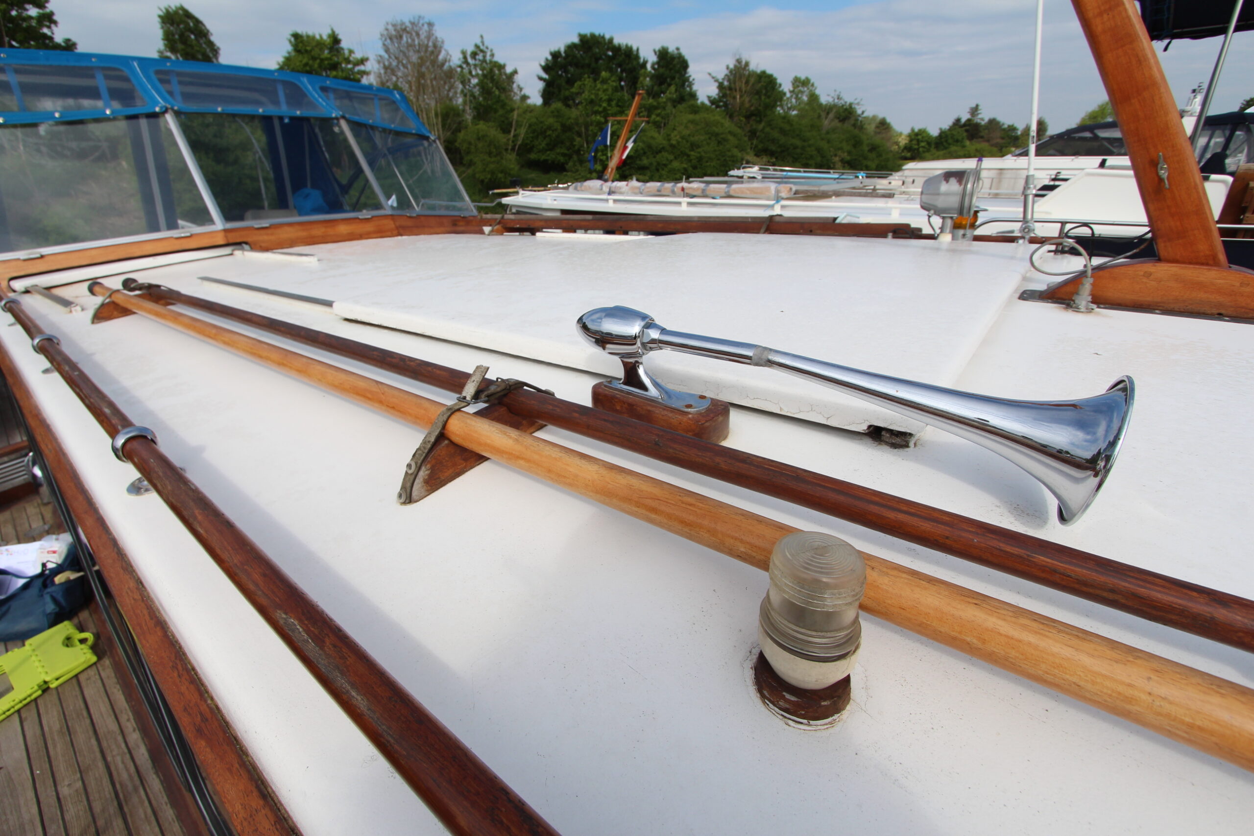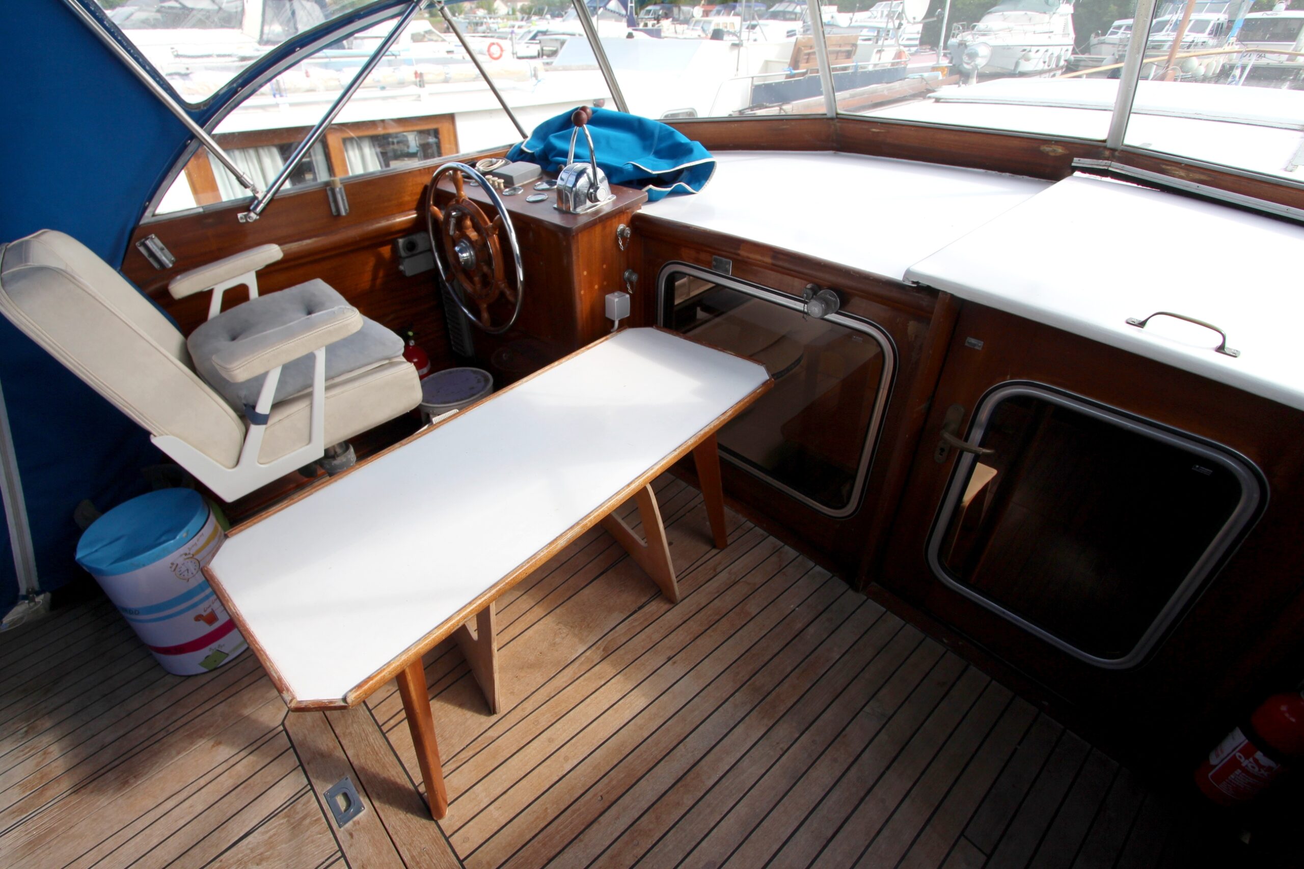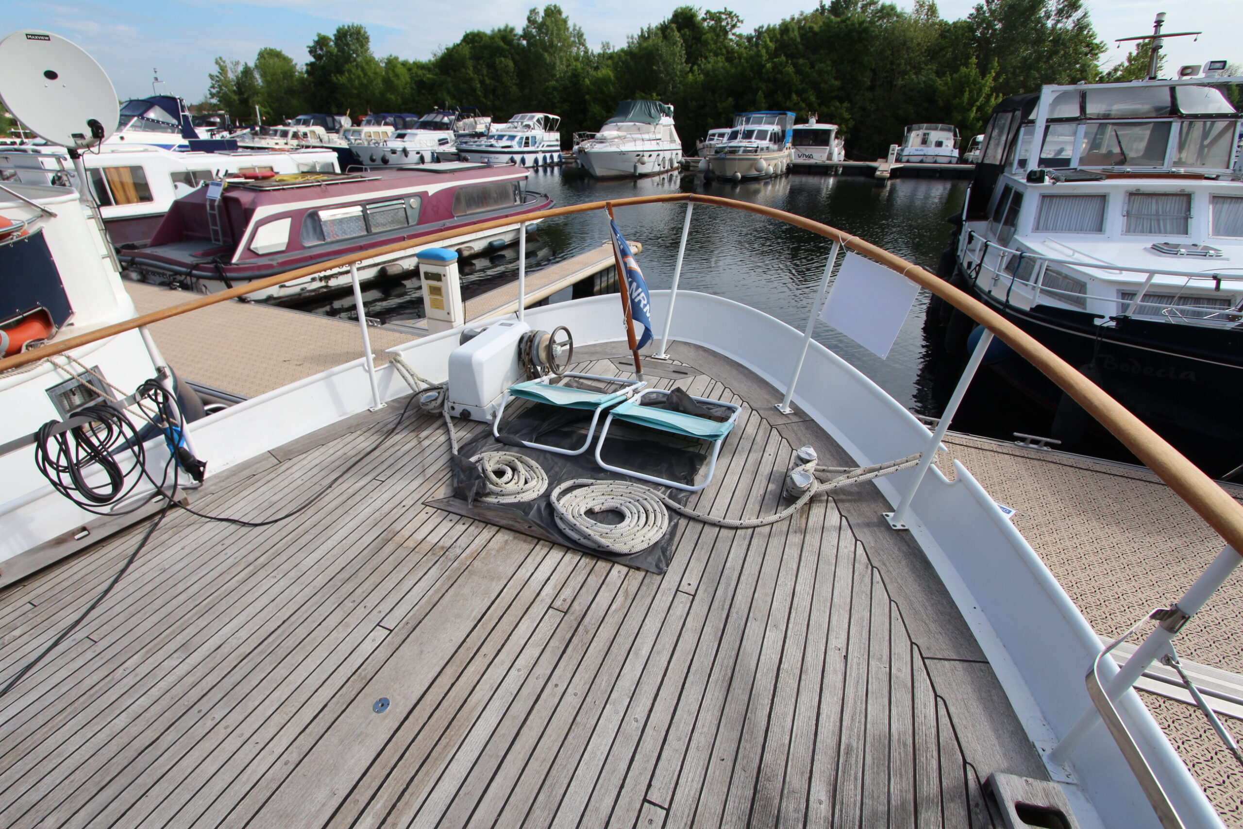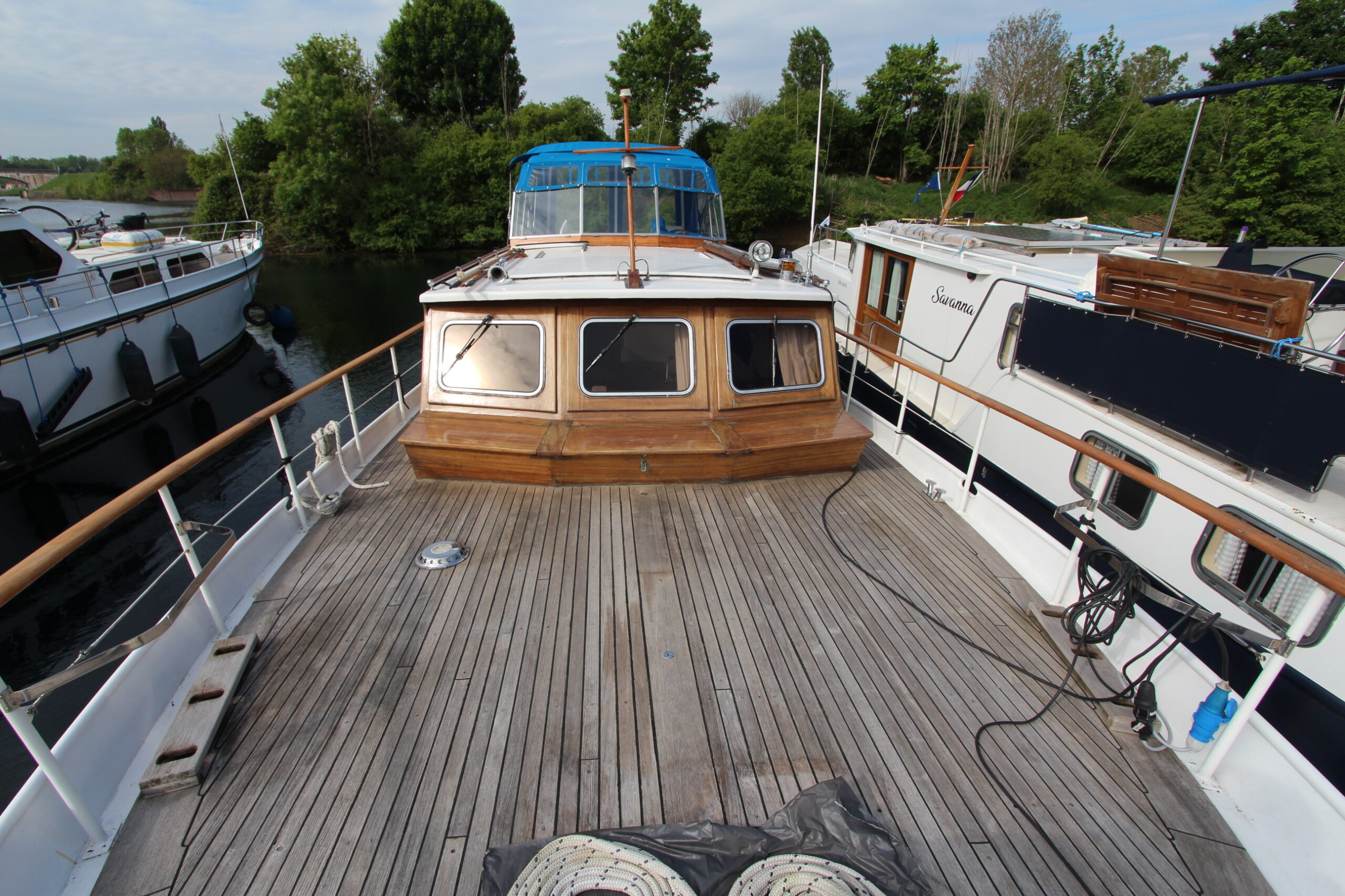 Vous êtes sensible aux belles boiseries ? Ce Super Van Craft à la ligne élégante vous attend pour continuer son voyage. Son pont en teck et sa superstructure en acajou lui confèrent un charme intemporel qui ne passera pas inaperçu sur les canaux. La navigation sera facile et une fois à quai, vous logerez dans un intérieur confortable et lumineux offrant un salon convivial, deux cabines, une cuisine, une salle de bain et deux WC.