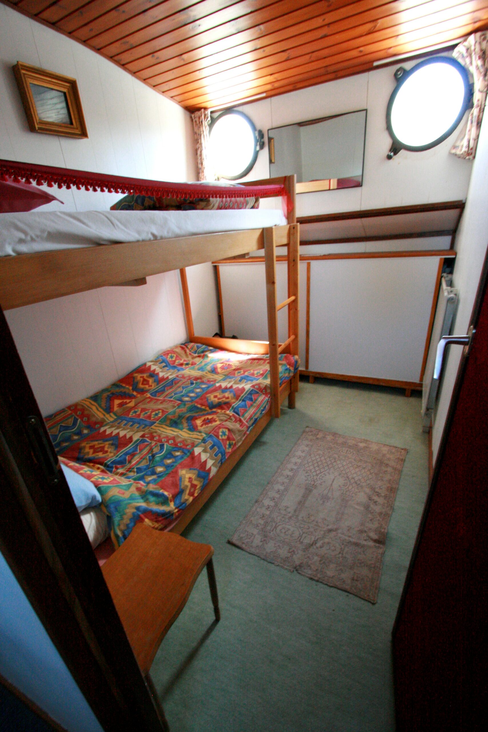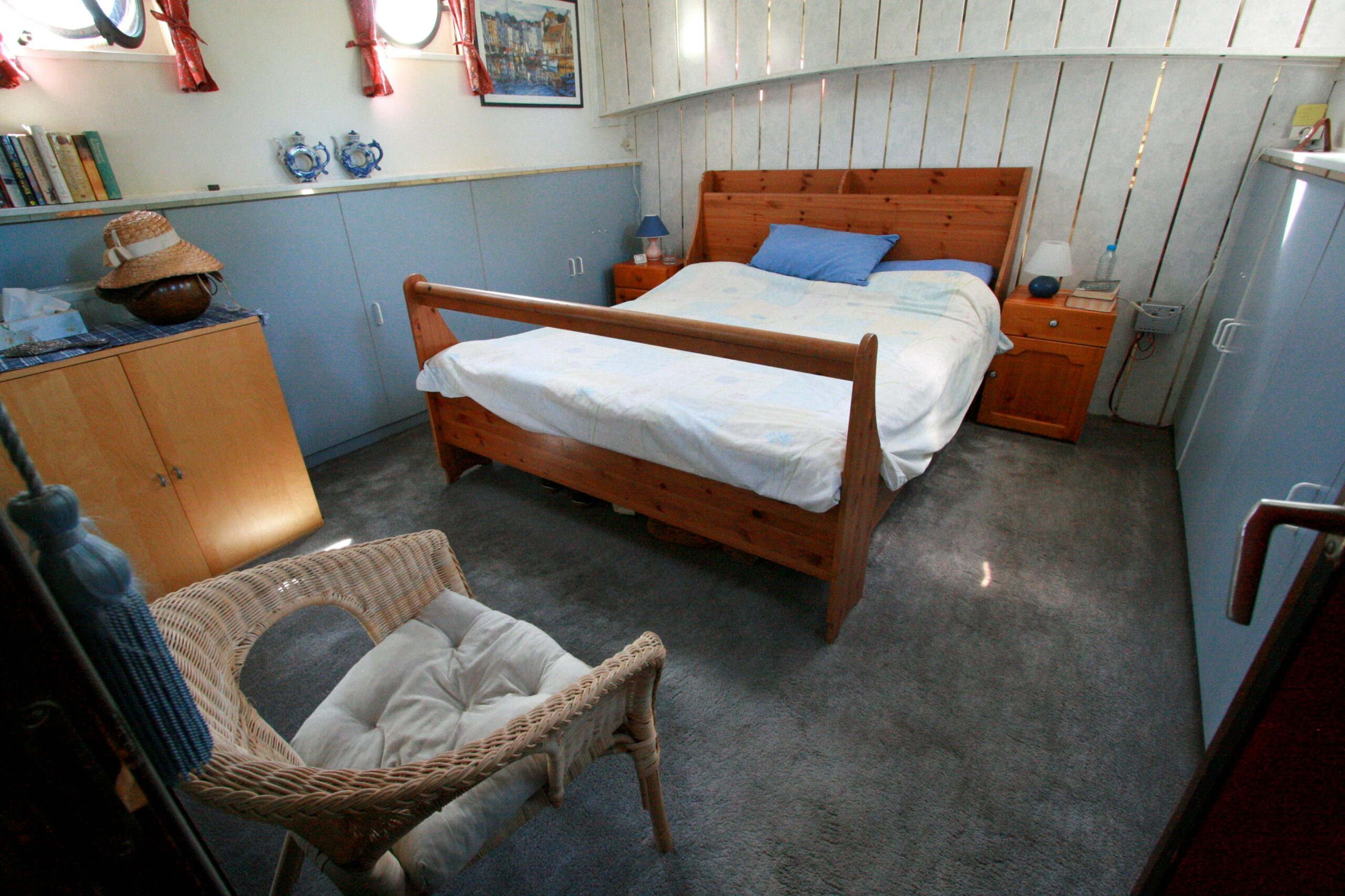 L’espace nuit comprend deux cabines : l’une avec lit double, l’autre avec lits superposés, ainsi qu’une salle de bain avec douche et WC. Le confort est renforcé par un chauffage au fioul, un système d’eau chaude et de pressurisation, ainsi qu’une hauteur sous barrot supérieure à 2 mètres.