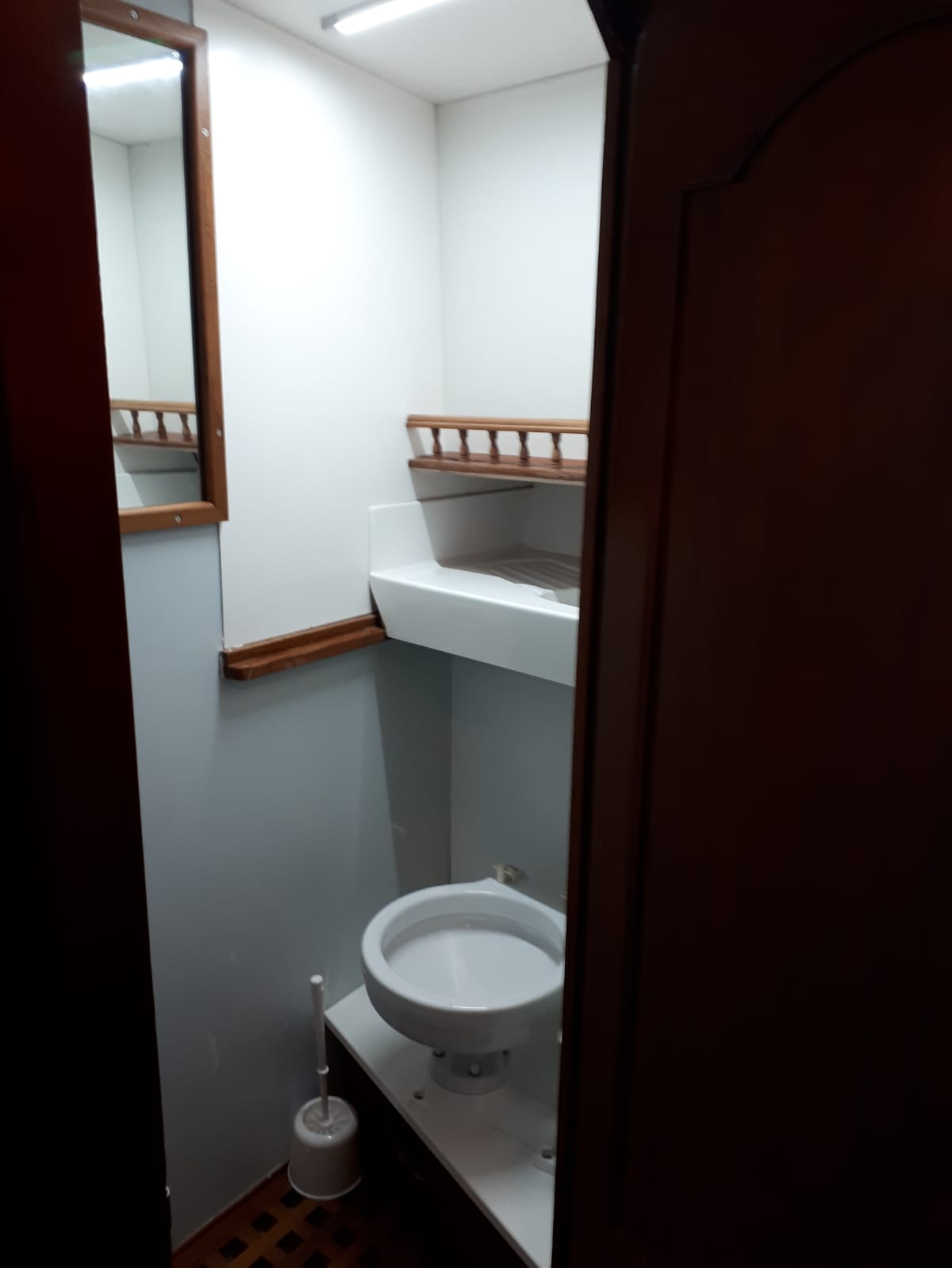 Conçu pour offrir confort et autonomie, il dispose de deux cabines, chacune équipée de sa salle de bain privative avec WC, garantissant une parfaite indépendance à bord. La cabine principale propose un lit double complété par un lit simple, tandis que la cabine avant accueille deux lits simples en pointe, faisant de cette vedette un ce bateau idéal pour 4 à 5 personnes.