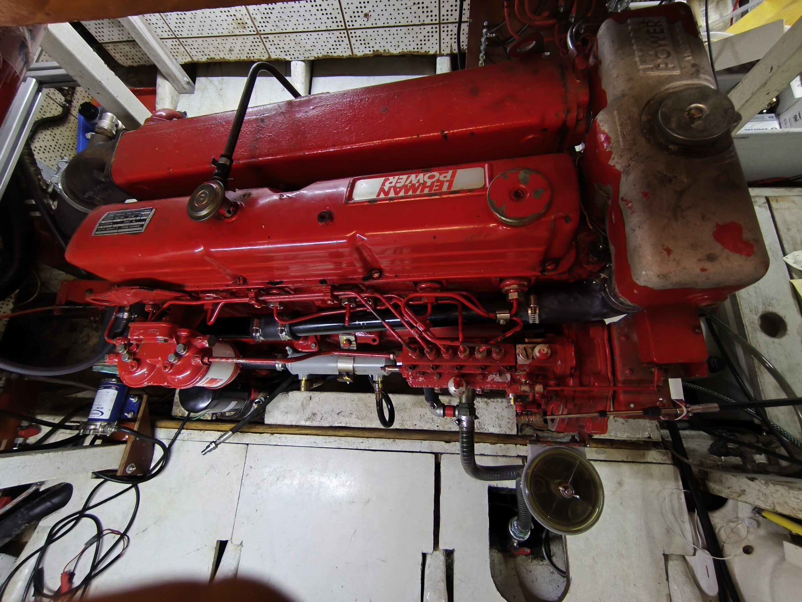 La motorisation est assurée par un Ford Lehman de 120 CV, réputé pour sa robustesse et sa longévité. La manœuvrabilité est remarquable grâce au double safran associé à un propulseur d’étrave, permettant au bateau de pivoter quasiment sur place.