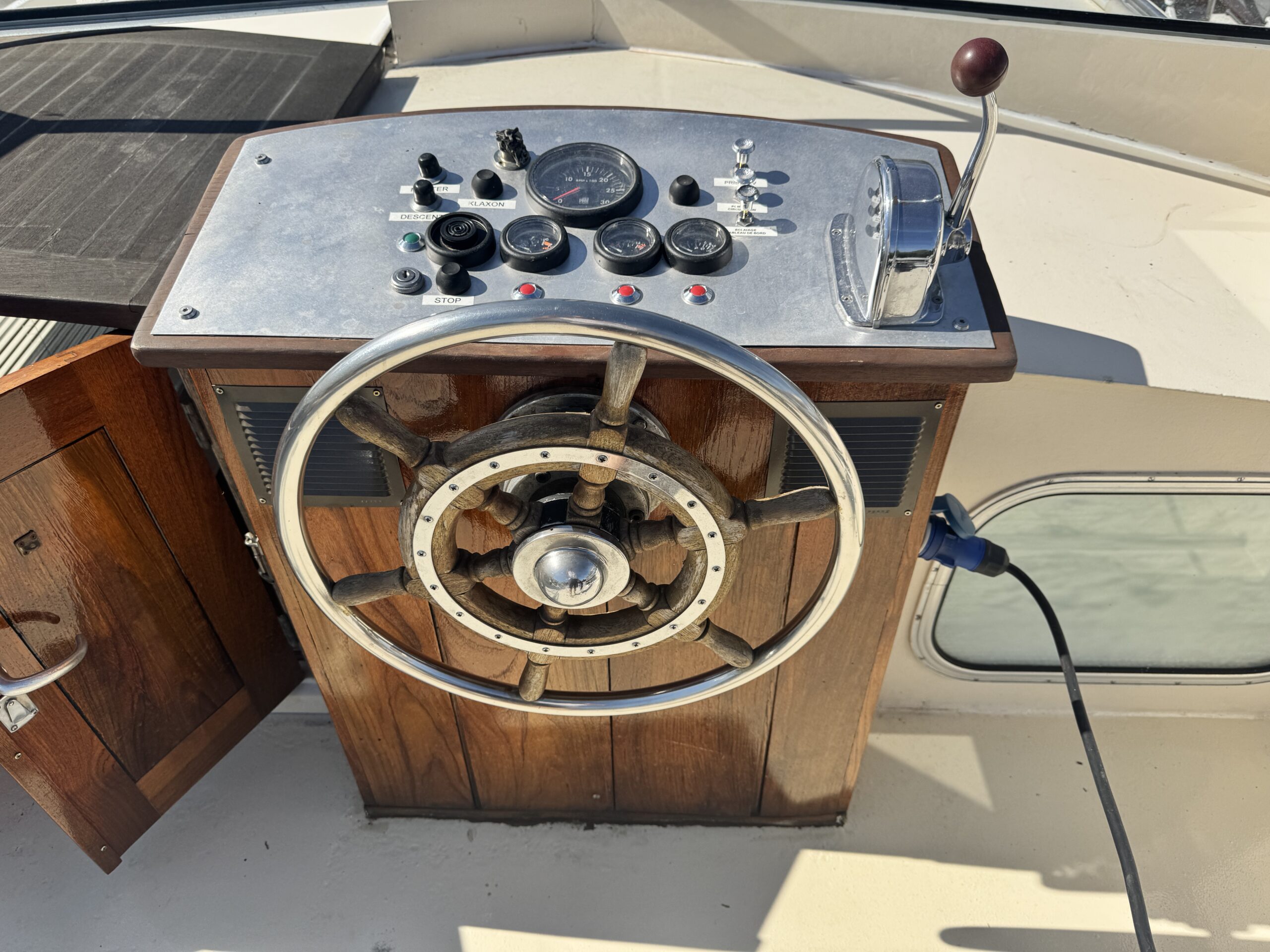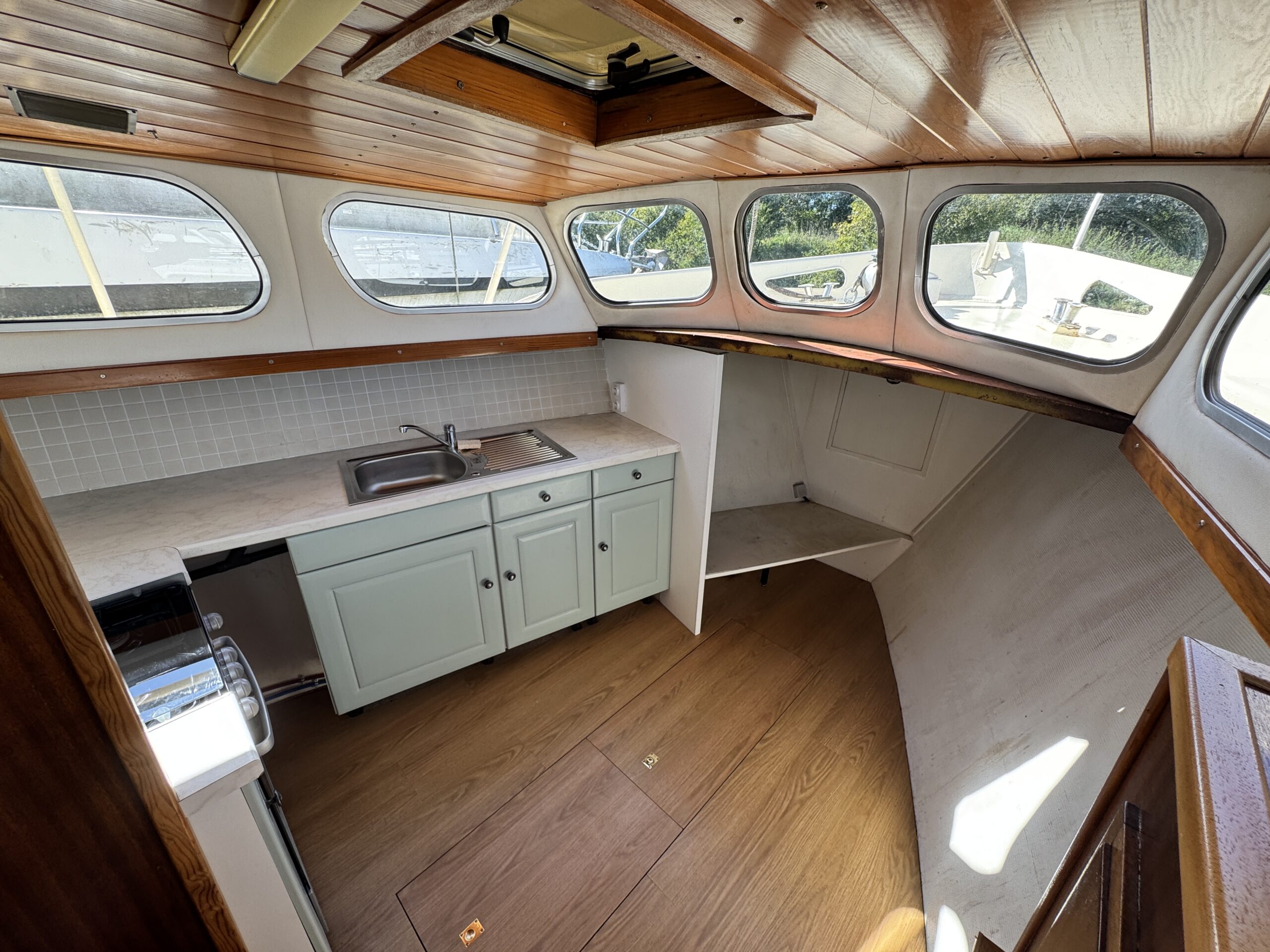 Par ailleurs, le bateau dispose déjà d’une cabine, d’une salle de bain avec douche et WC ainsi que d’une cuisine équipée d’une plaque et d’un four au gaz, d’un réfrigérateur au gaz et d’un micro-ondes. De plus, deux postes de pilotage, l’un à l’intérieur et l’autre à l’extérieur, vous permettront de naviguer dans le confort tout en profitant pleinement du soleil lors des belles journées d’été.