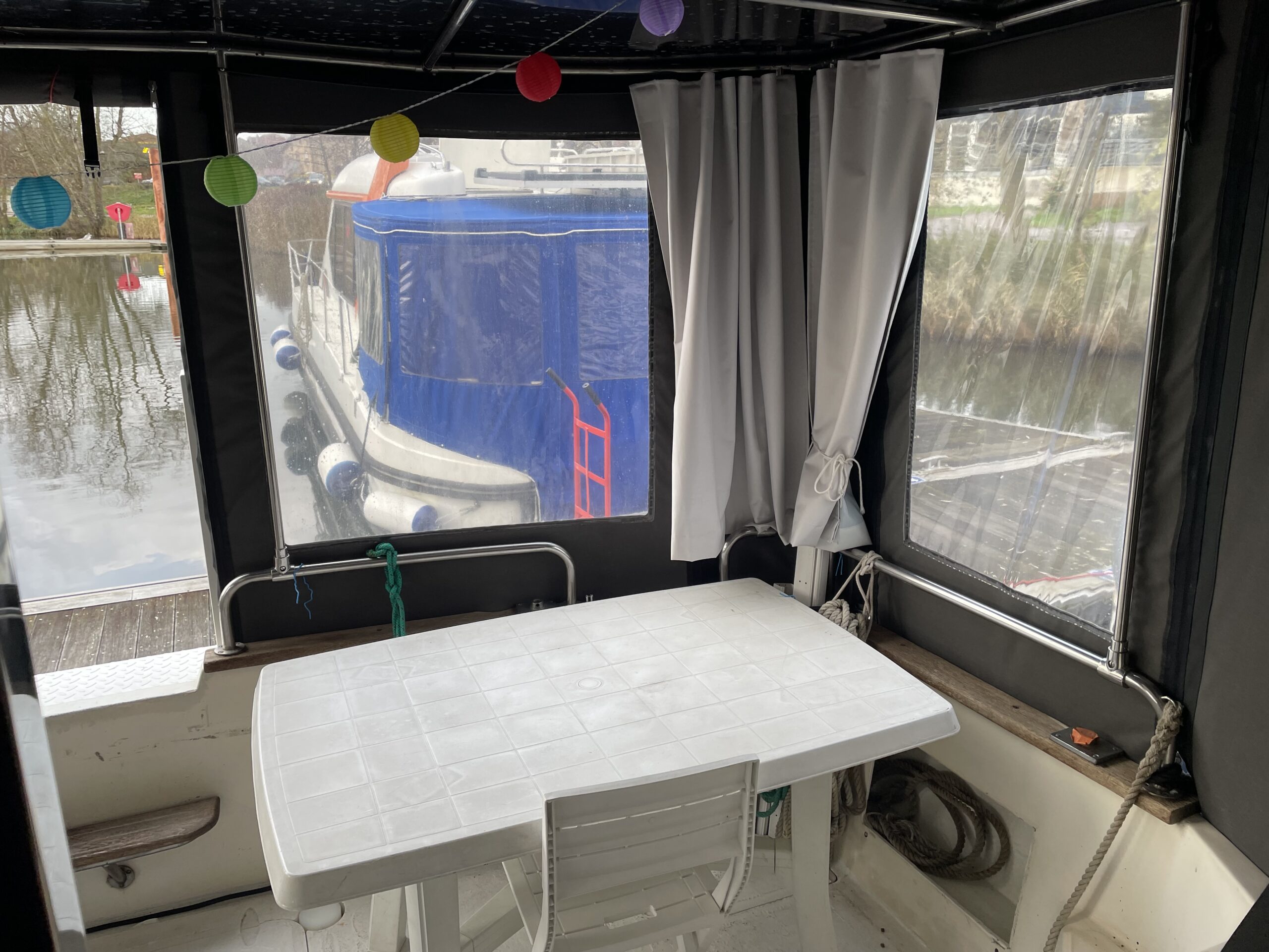 L’intérieur offre un vaste espace de vie lumineux, idéal pour profiter pleinement de la vie à bord. En effet, il dispose de deux belles cabines confortables, d’une salle d’eau, d’une cuisine entièrement équipée avec plaque de cuisson au gaz, réfrigérateur 200V, congélateur et micro-ondes, ainsi que d’un carré convivial parfait pour partager des repas ou des moments de détente.