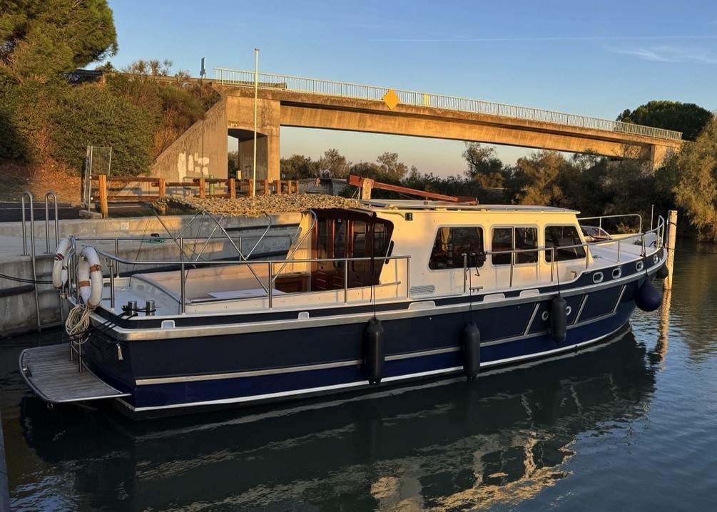 Découvrez cette belle vedette Barkas 1100 de 11.30 mètres de long et de 3.85 mètres de large construite en 1997. Conçue pour la navigation mixte, cette vedette est réputée pour son excellent confort de vie à bord. Son aménagement sur un seul niveau, avec très peu de marches, facilite la circulation et offre une agréable sensation d’espace.