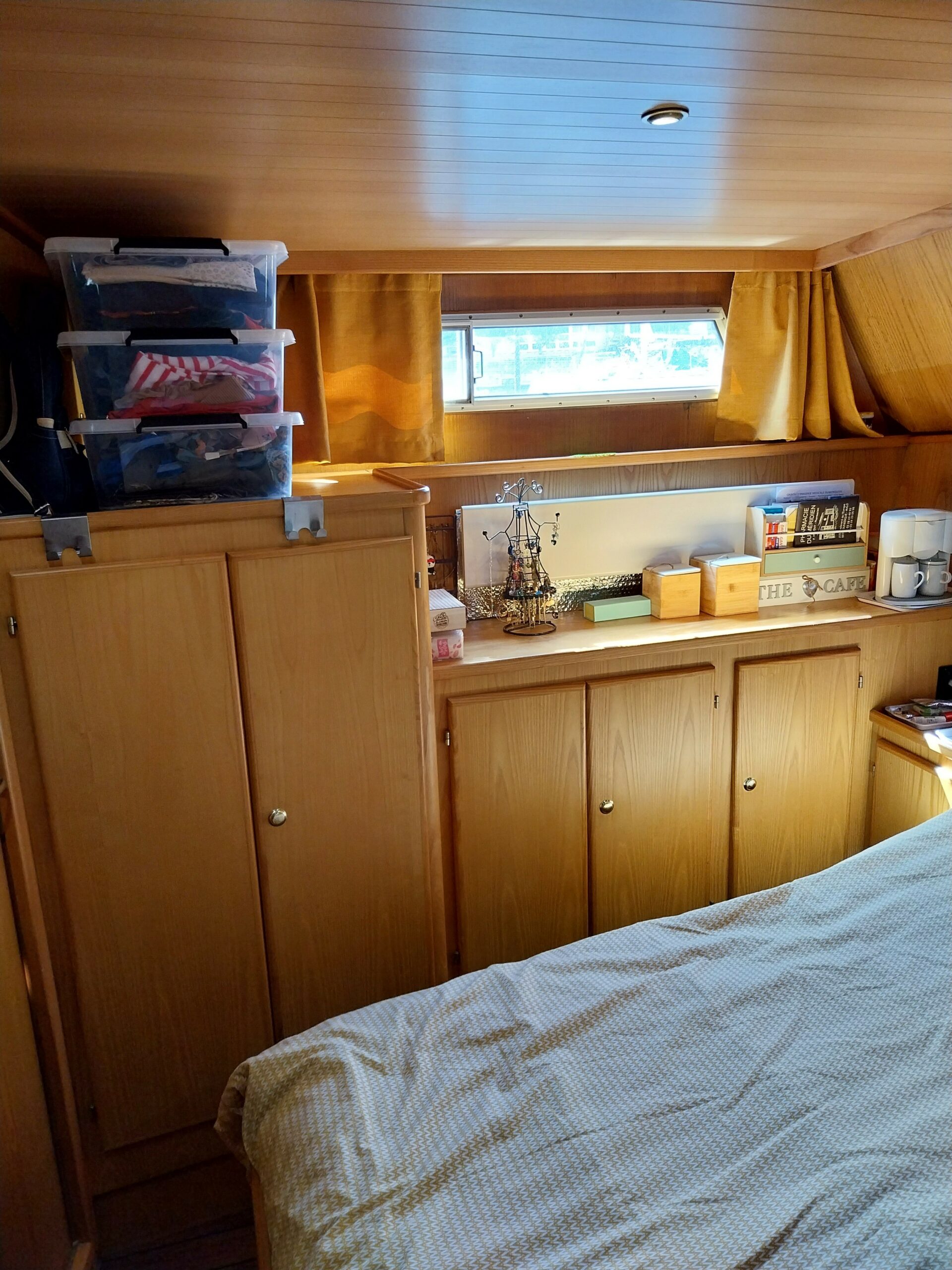 L’intérieur, il se distingue par un grand salon lumineux offrant une belle hauteur sous barrots, une cuisine entièrement équipée ainsi que deux cabines dont une vaste cabine propriétaire. De plus, les espaces sont généreux et soigneusement agencés. La salle de bains dispose d’une douche et d’un WC. Un cabinet de toilettes avec WC et lavabo vient compléter l’agrément général du bateau.