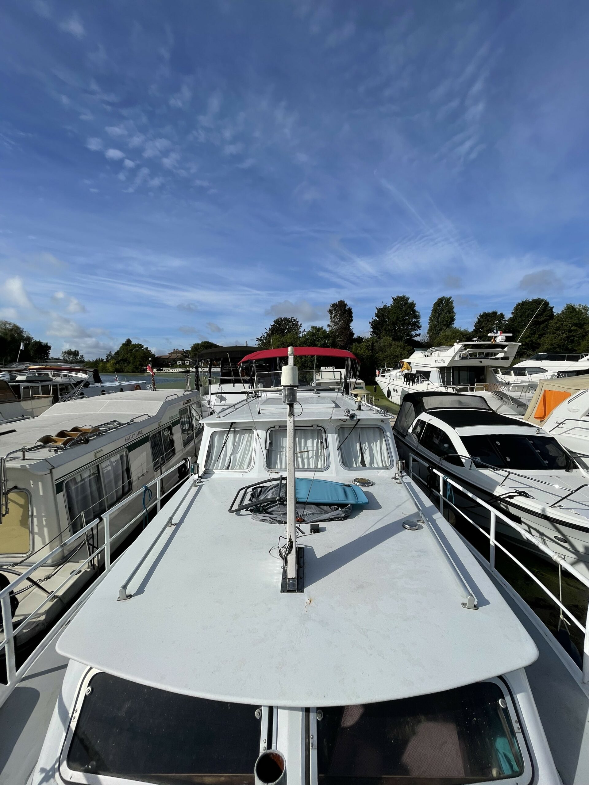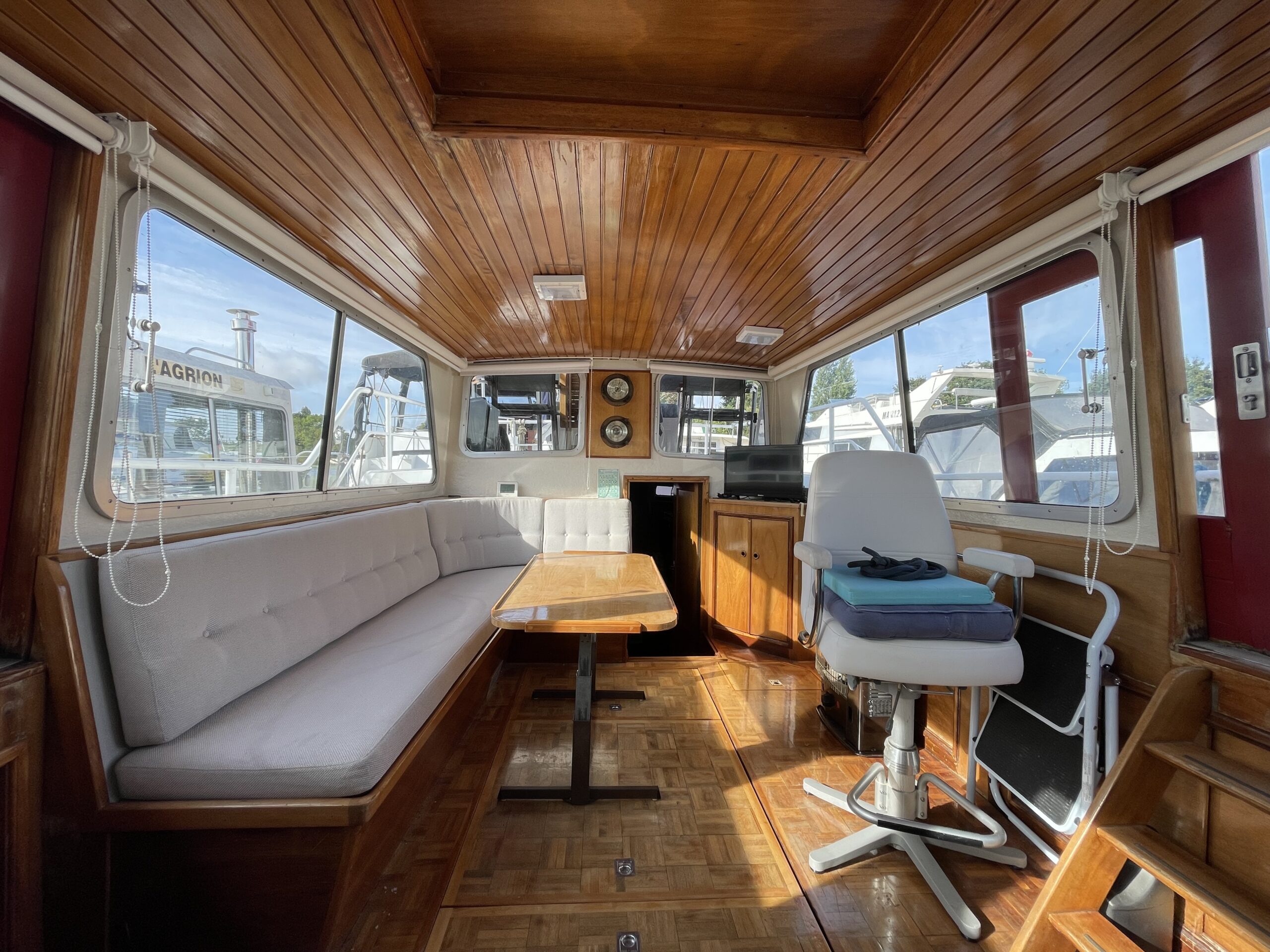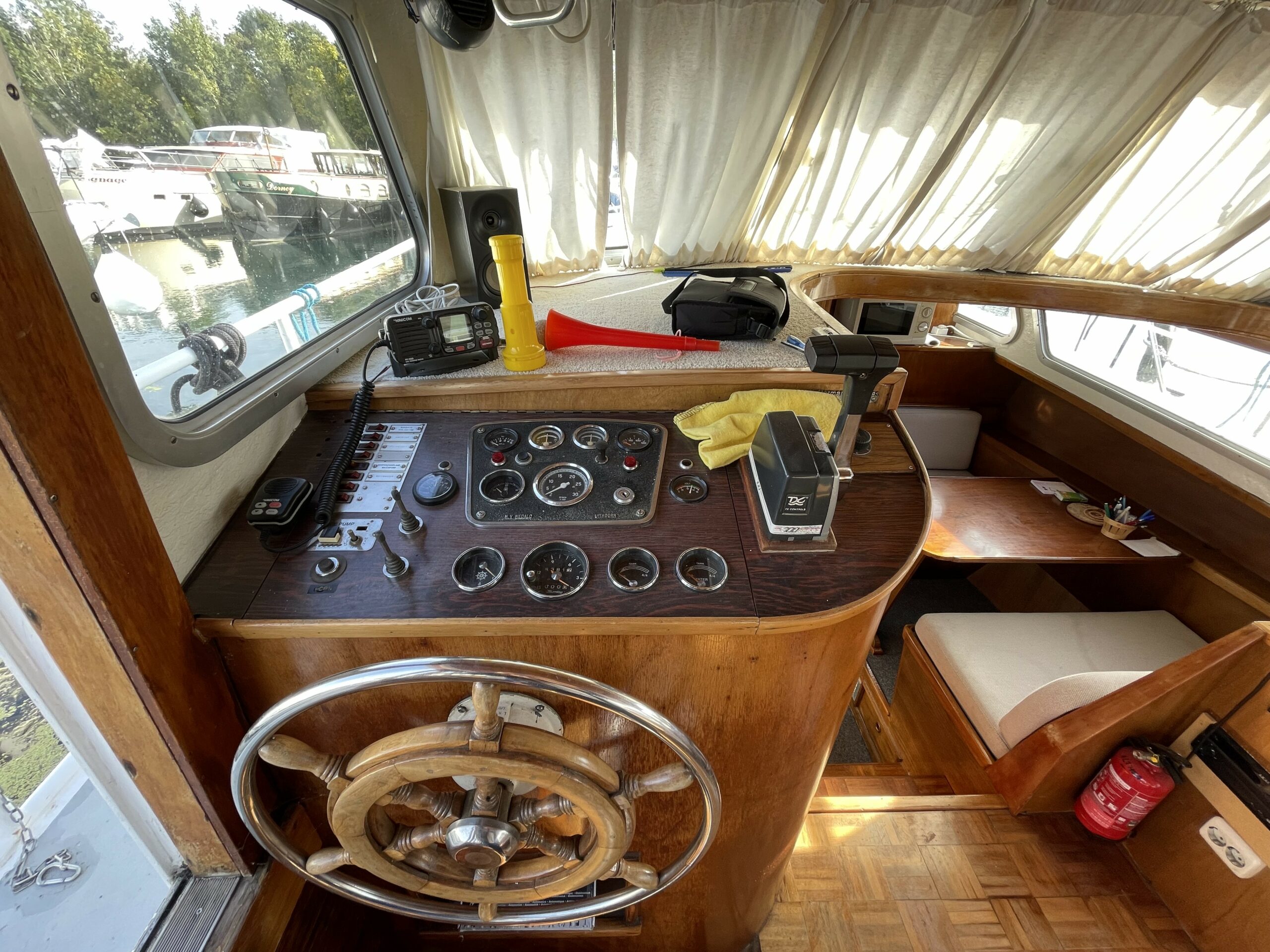 Voici une vedette signée Holterman & De Vries, constructeur néerlandais réputé pour ses vedettes solides et bien finies. Ce bateau incarne le mariage entre savoir-faire traditionnel et vie à bord confortable : la coque et la conception témoignent d’une construction sérieuse, pensée non seulement pour durer, mais aussi pour offrir une navigation sûre et sereine.