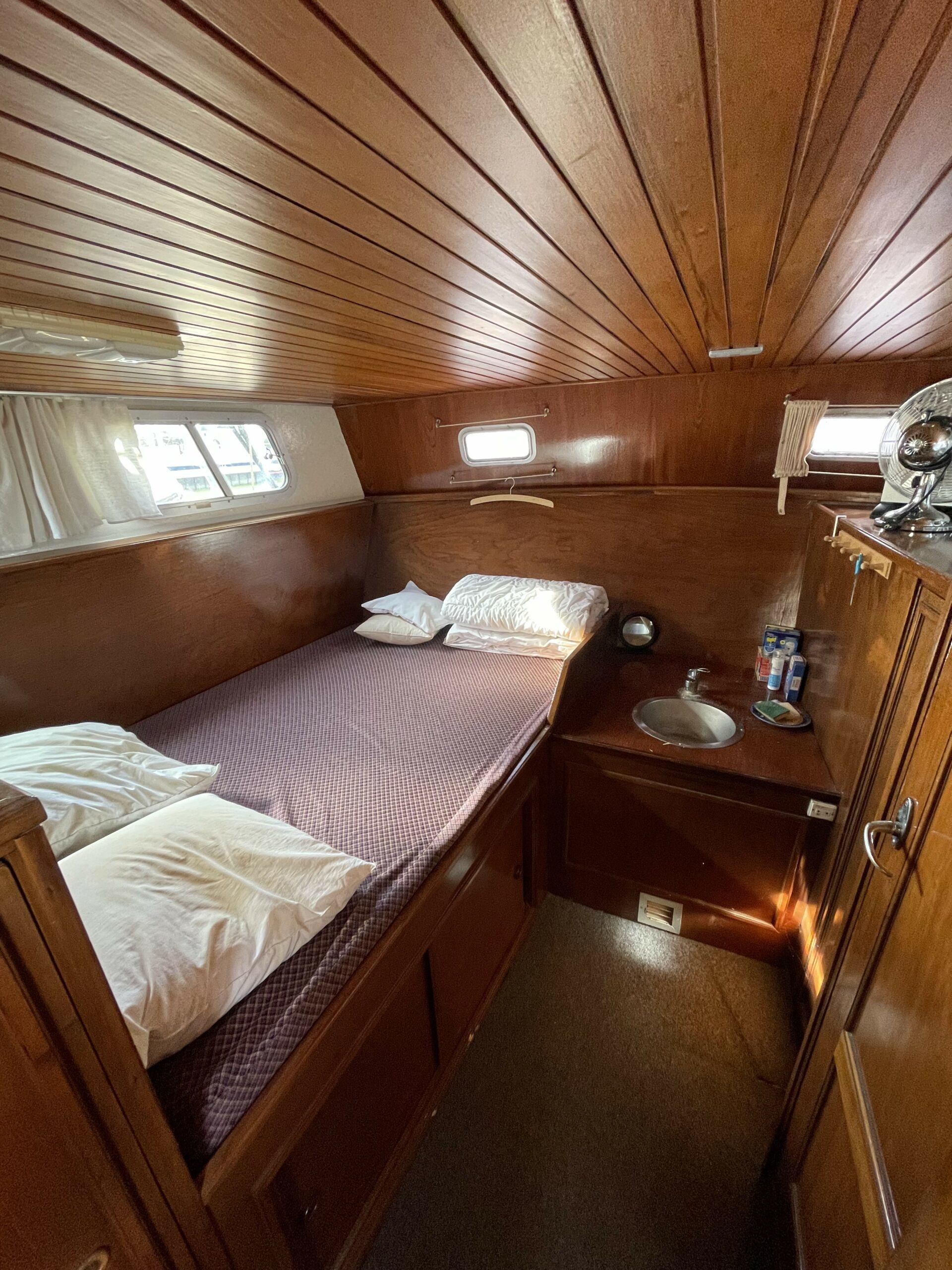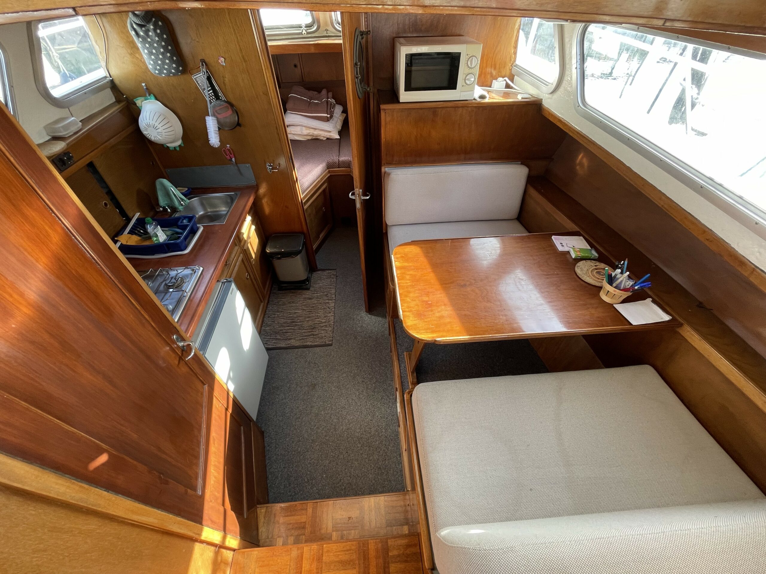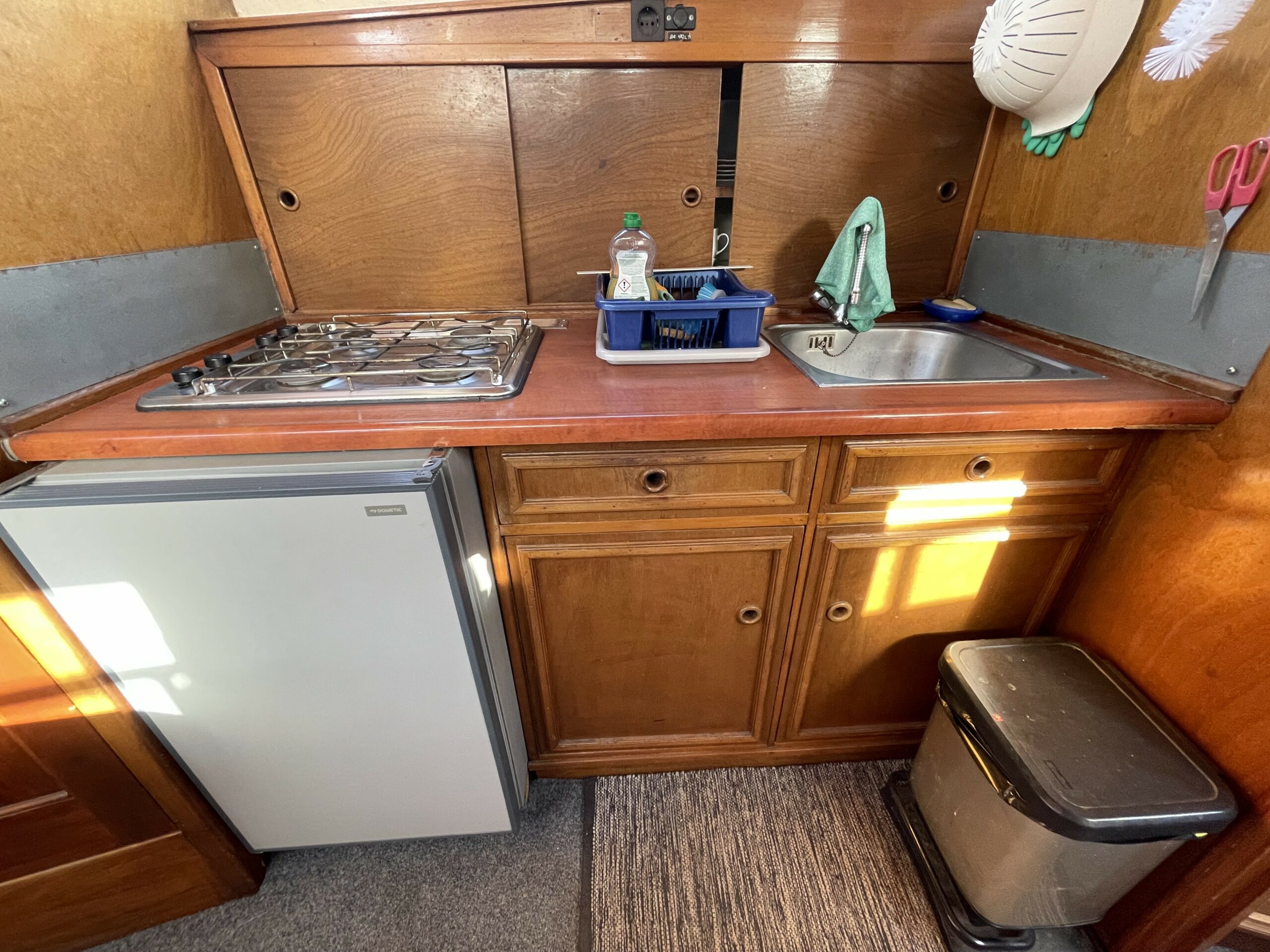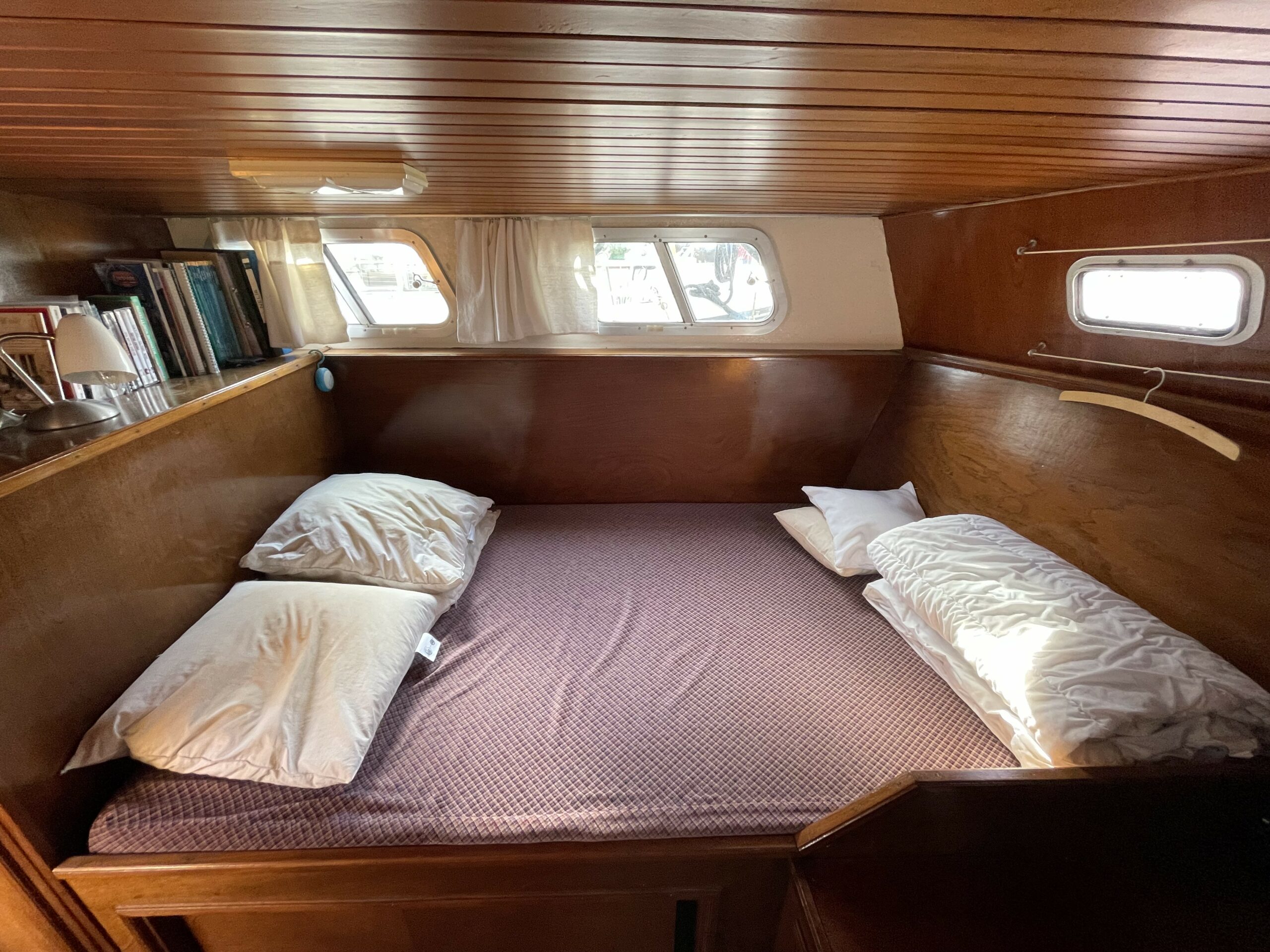Voici une vedette signée Holterman & De Vries, constructeur néerlandais réputé pour ses vedettes solides et bien finies. Ce bateau incarne le mariage entre savoir-faire traditionnel et vie à bord confortable : la coque et la conception témoignent d’une construction sérieuse, pensée non seulement pour durer, mais aussi pour offrir une navigation sûre et sereine.