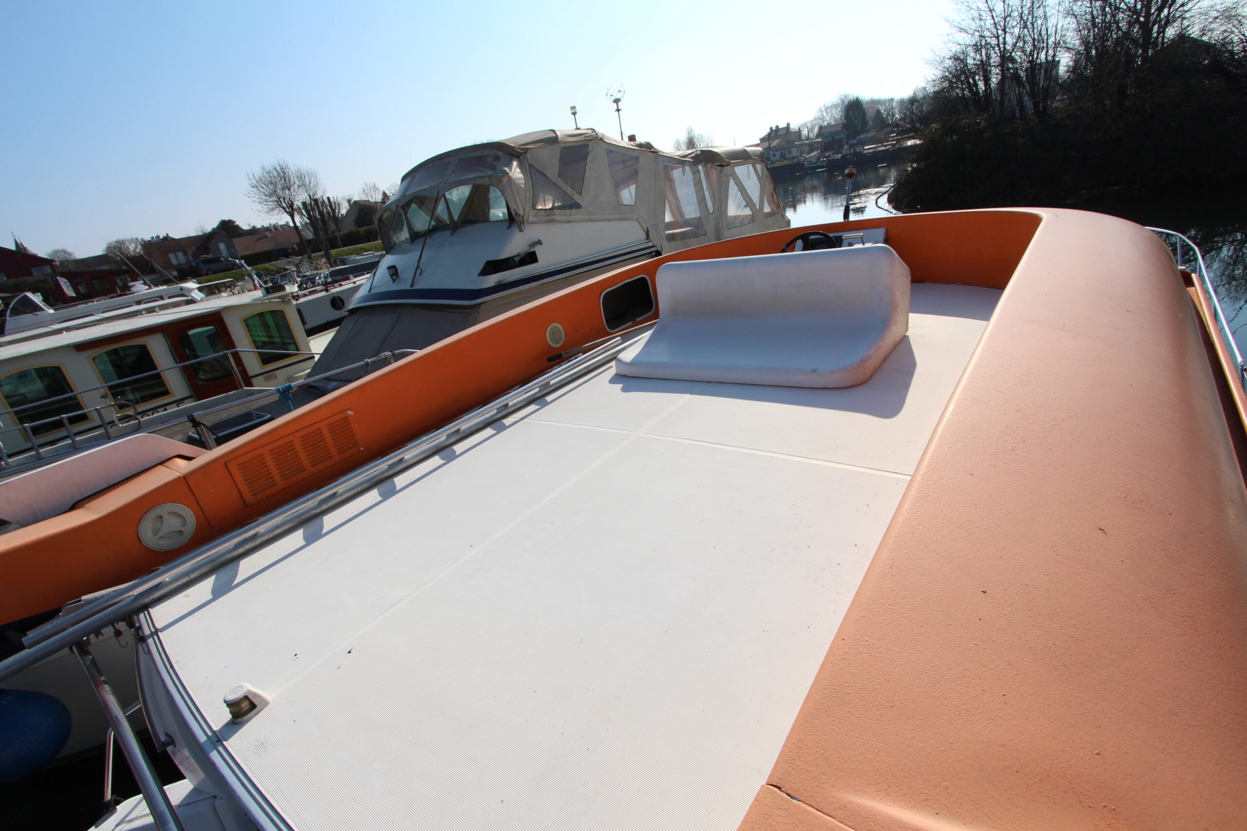Découvrez cette vedette Nicols de 13 mètres de long et 3,70 mètres de large, construite en 1996, parfaitement adaptée pour naviguer sur tous les canaux d’Europe avec votre famille ou vos amis. Ce modèle Sedan est particulièrement recherché grâce à sa vaste terrasse arrière, idéale pour les moments de détente en plein air.