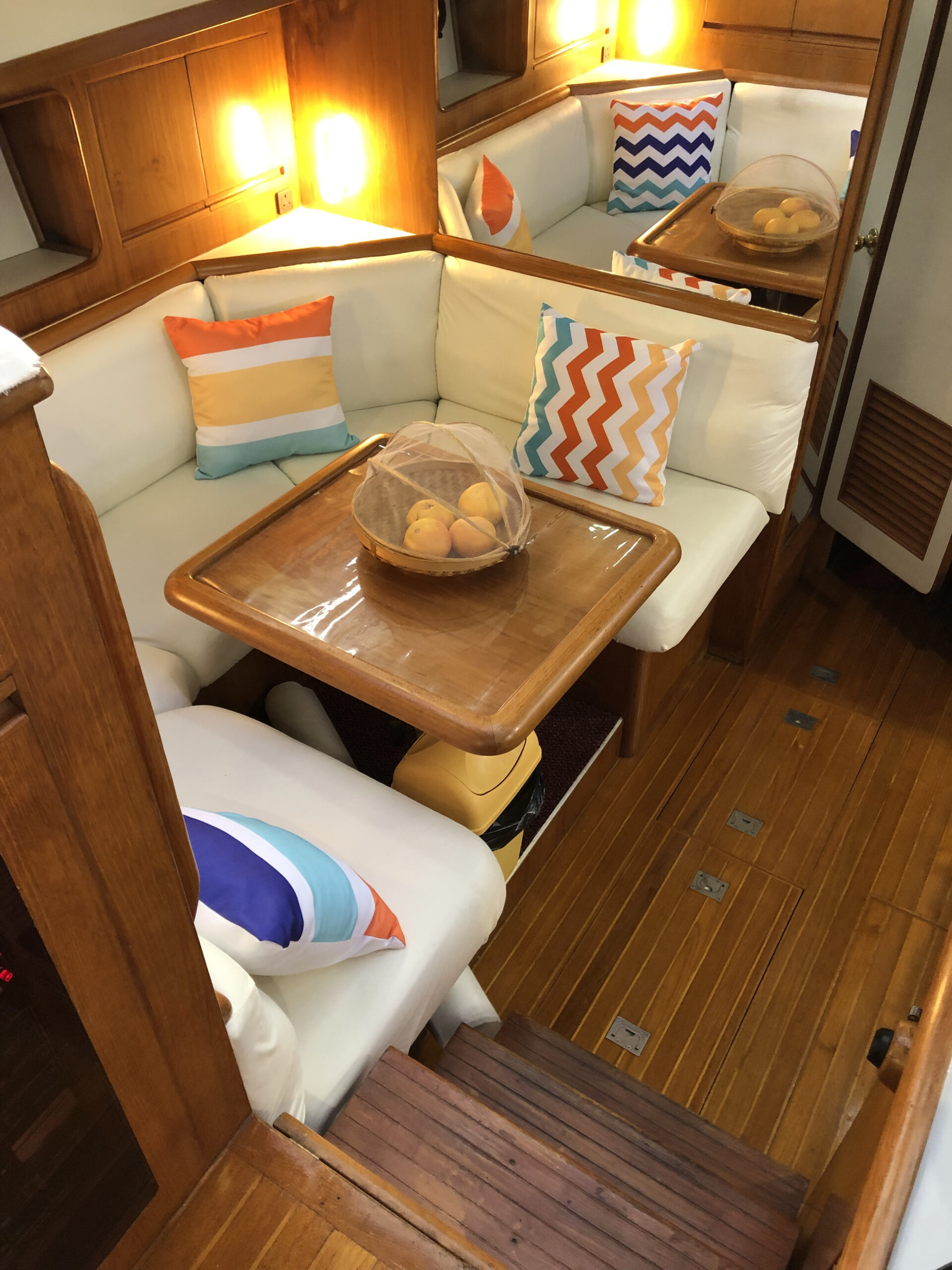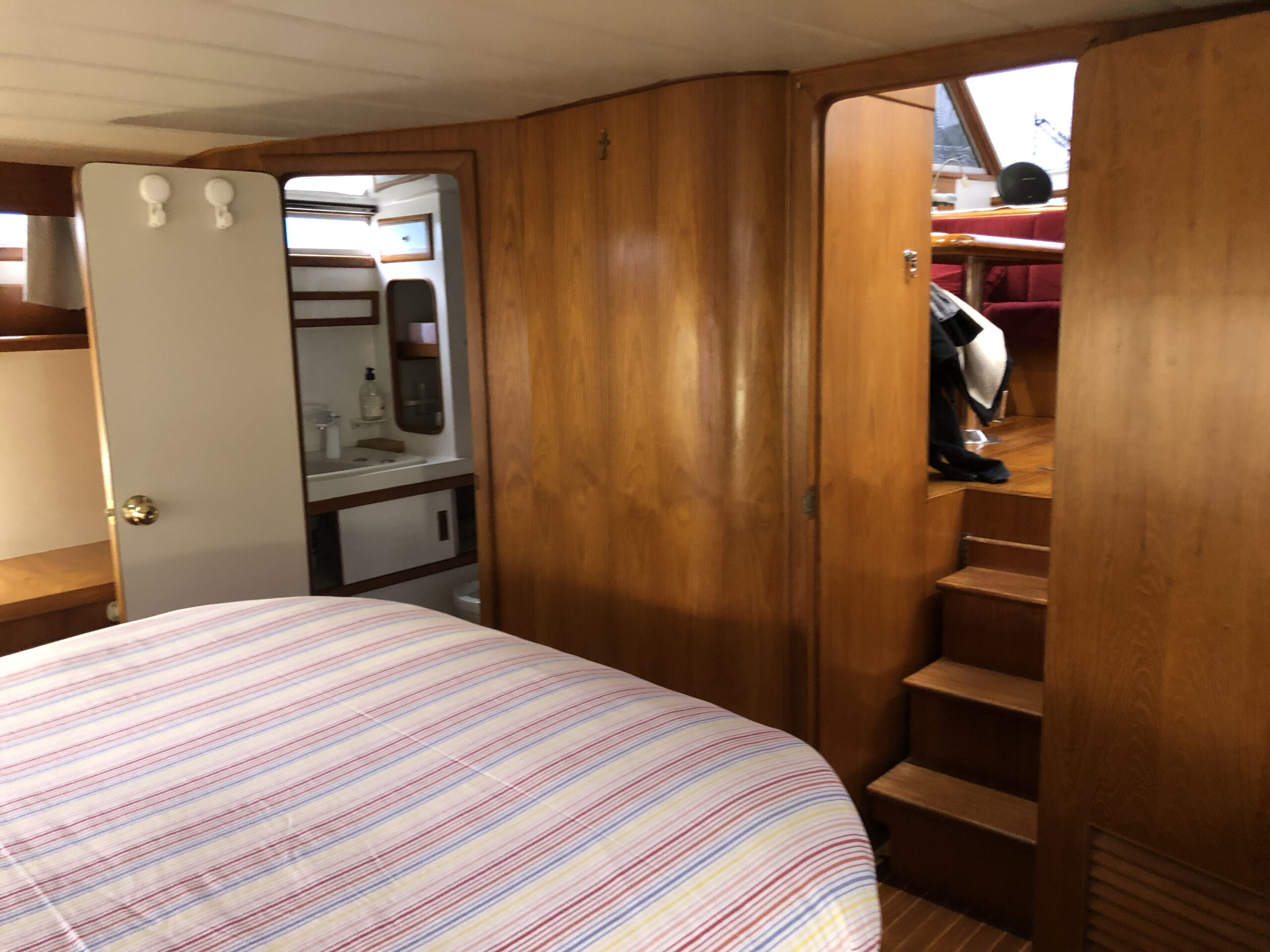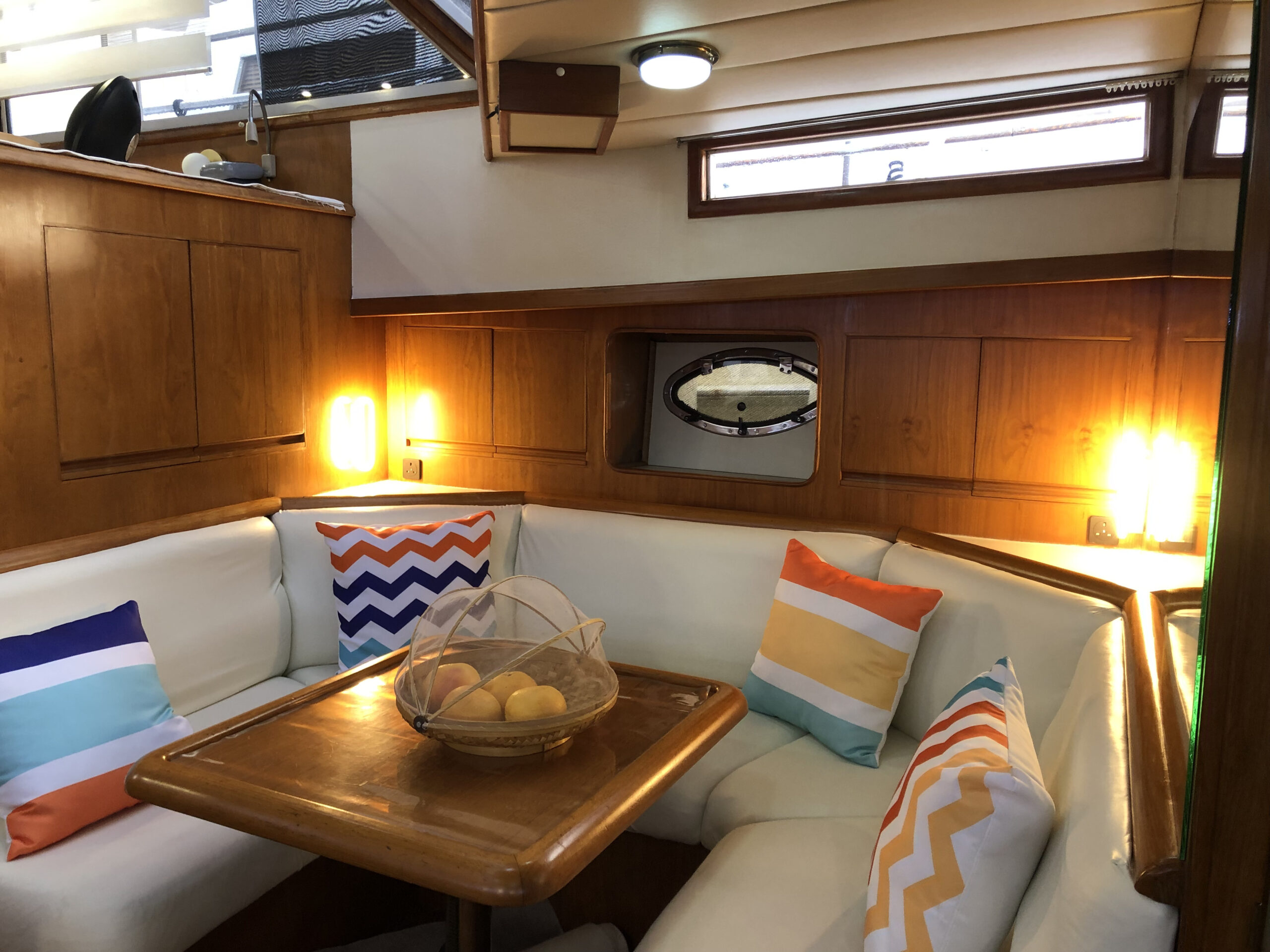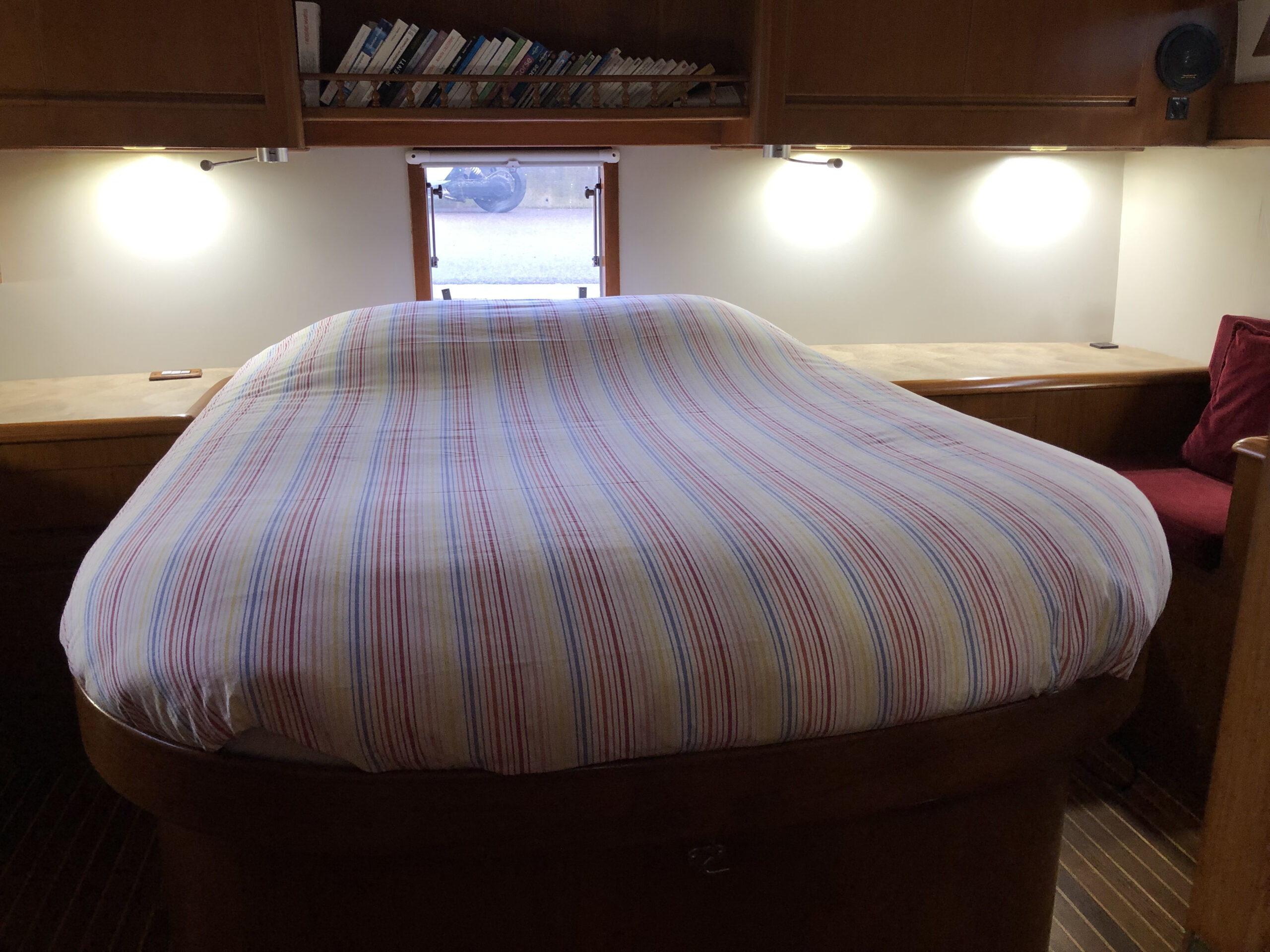 L’habitabilité intérieure, particulièrement agréable, a été pensée pour offrir un véritable confort résidentiel. Les volumes sont généreux, les circulations fluides et les matériaux de qualité participent à une ambiance chaleureuse et durable. La vedette dispose de deux cabines, permettant d’accueillir jusqu’à quatre couchages grâce à un lit double et deux lits simples, idéals pour recevoir famille ou amis.