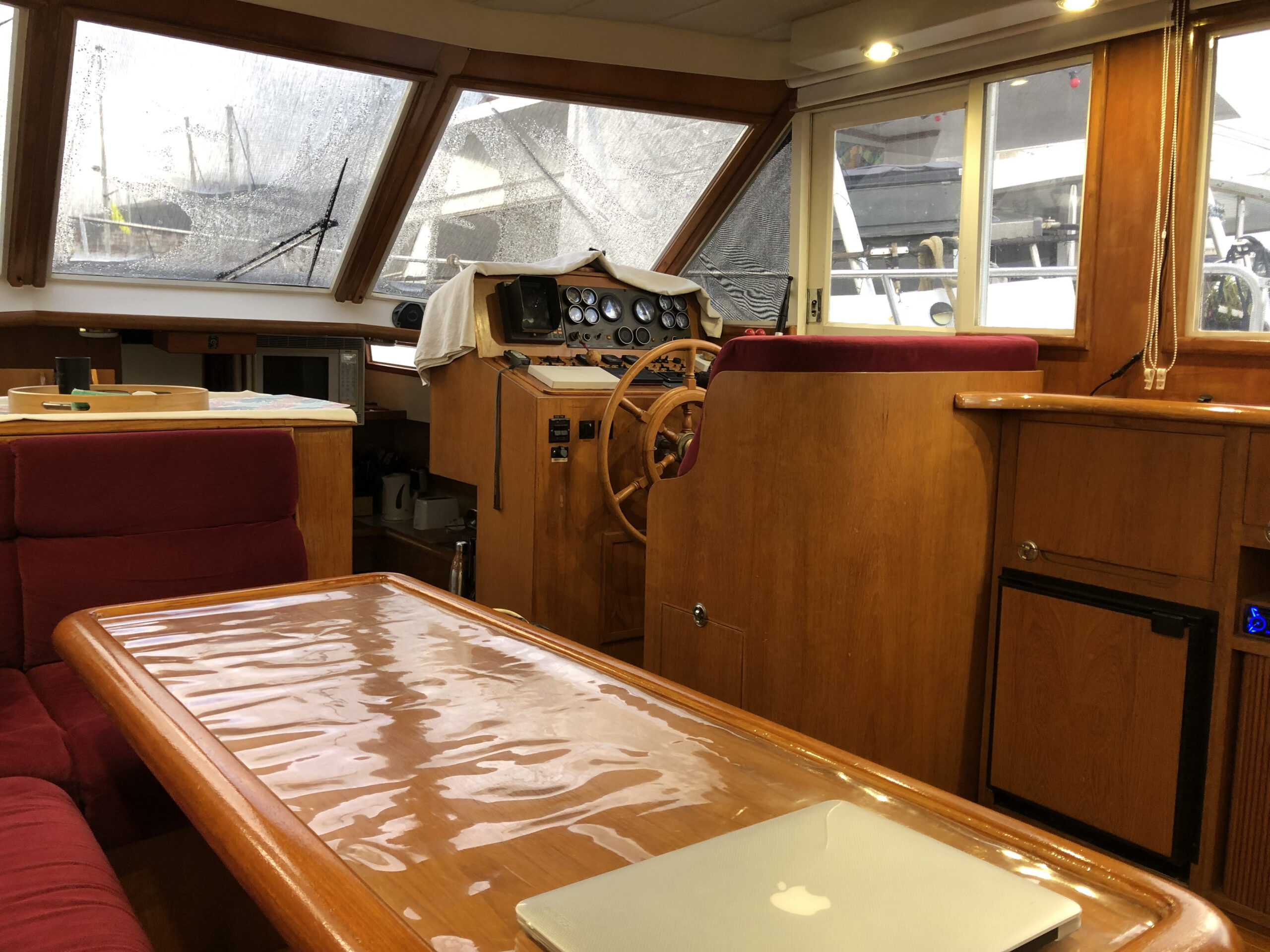 Côté motorisation, deux moteurs turbocompressés Caterpillar 3208T, puissants de 320 CV chacun, propulsent le bateau avec efficacité. La dernière vidange moteur date de février 2025, avec seulement 10 heures supplémentaires au moteur depuis.