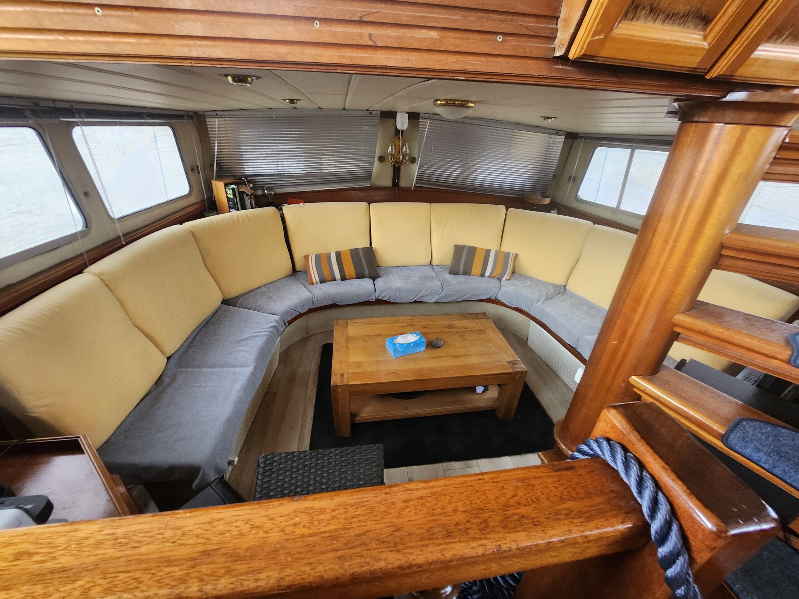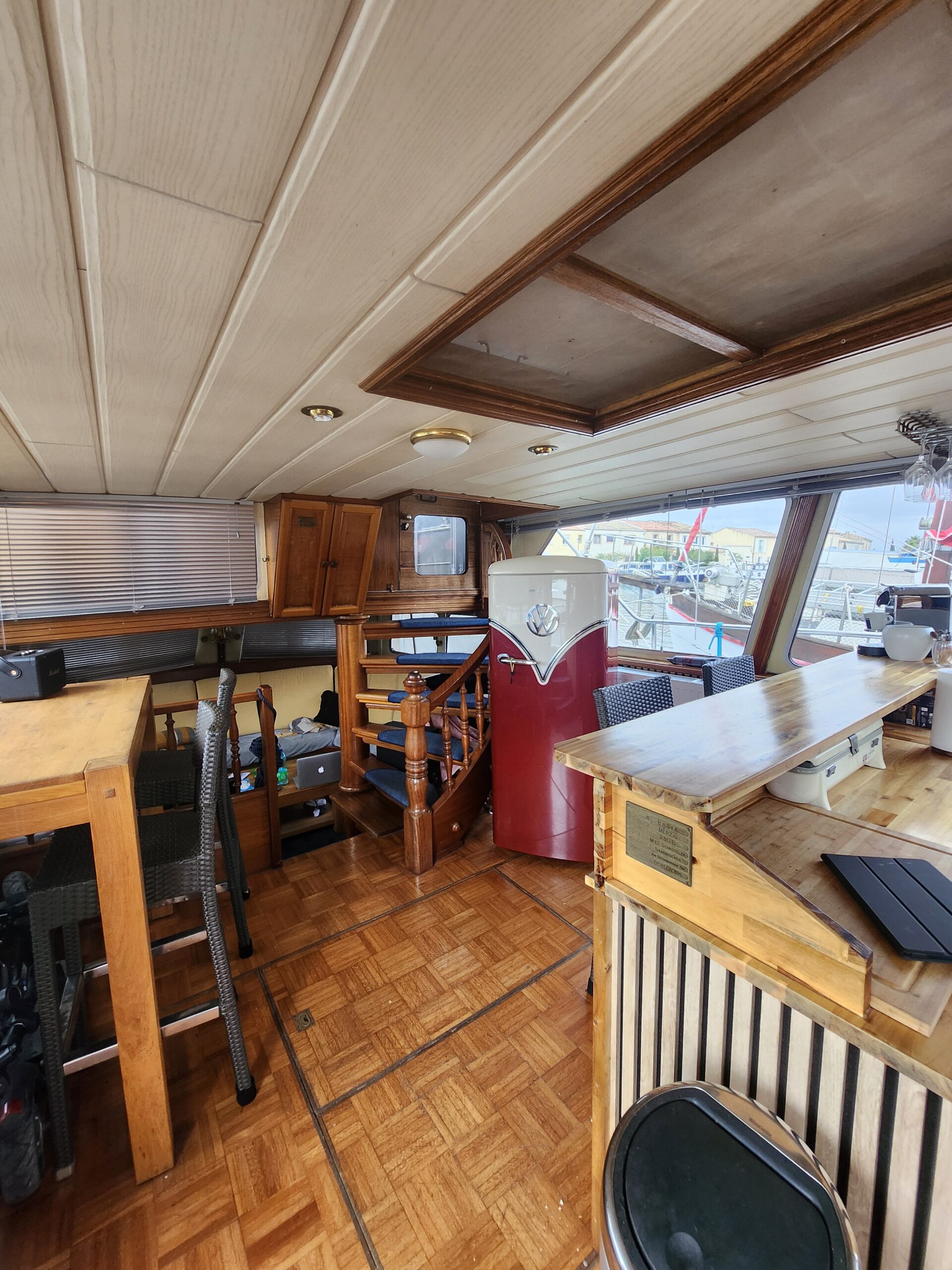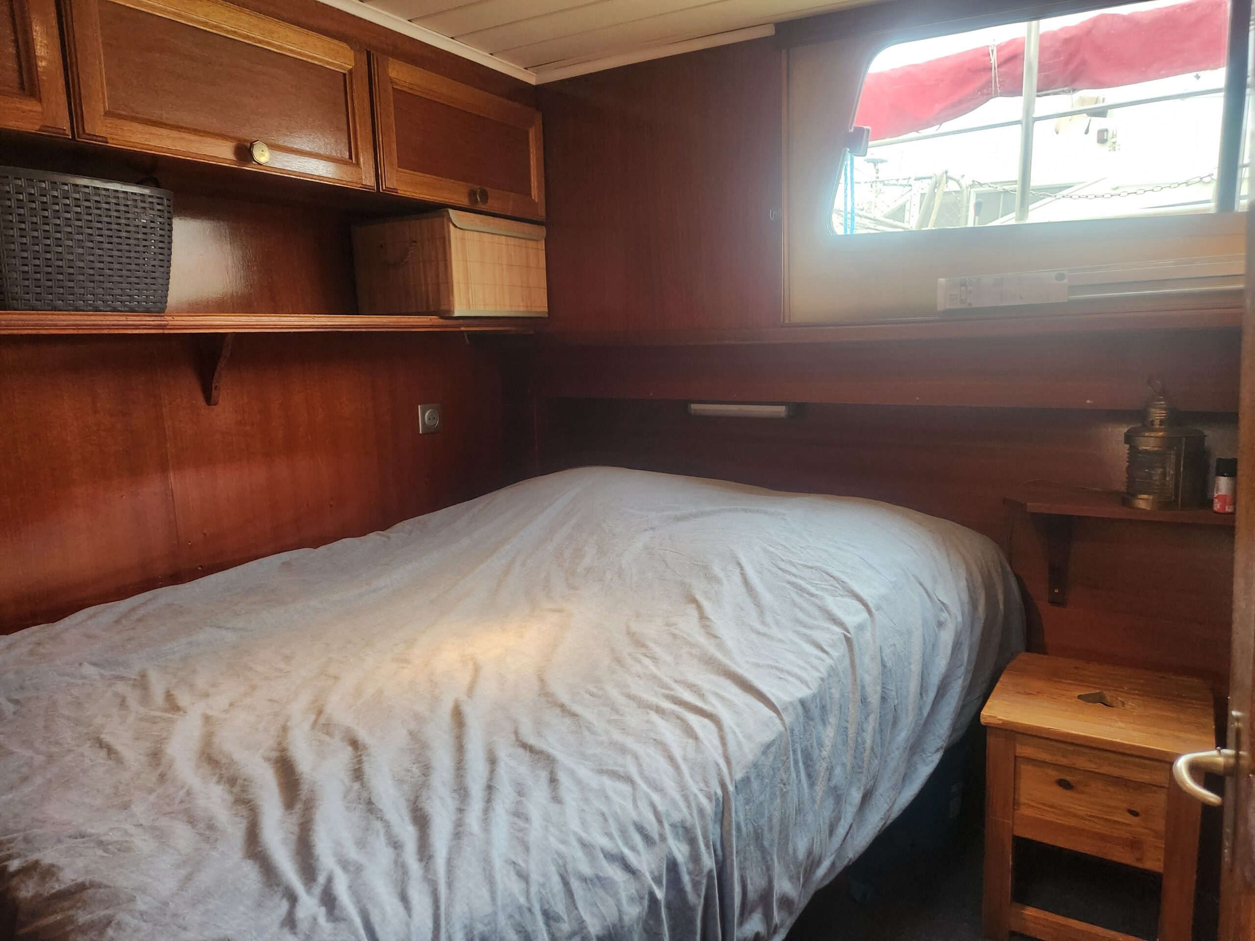 L’intérieur offre un espace chaleureux et lumineux, avec un salon convivial, une cuisine fonctionnelle, ainsi que des aménagements bien pensés pour la vie à bord. Les cabines confortables permettent d’accueillir famille et amis dans de bonnes conditions, tandis que la salle d’eau assure un confort appréciable lors des séjours prolongés.