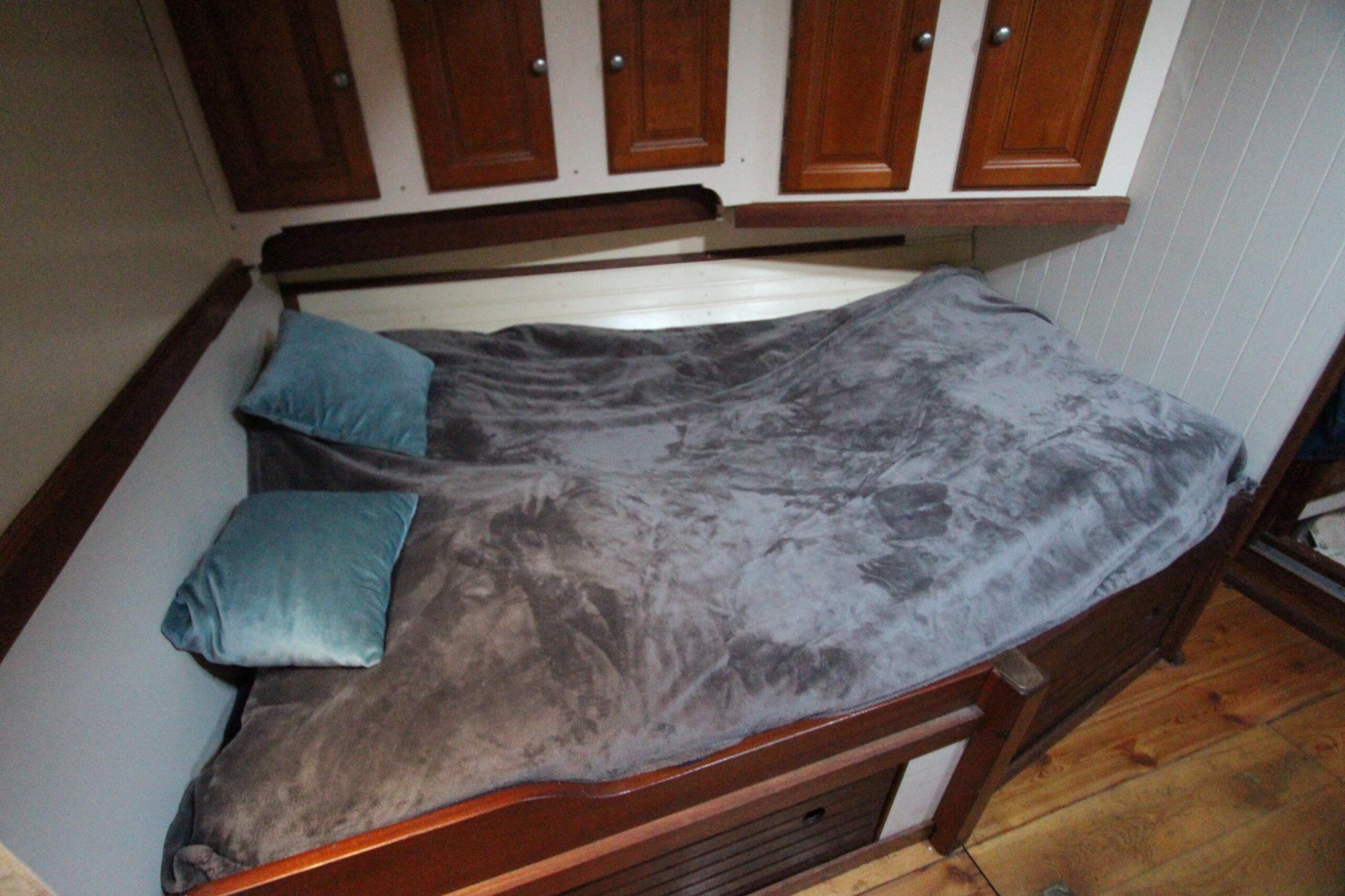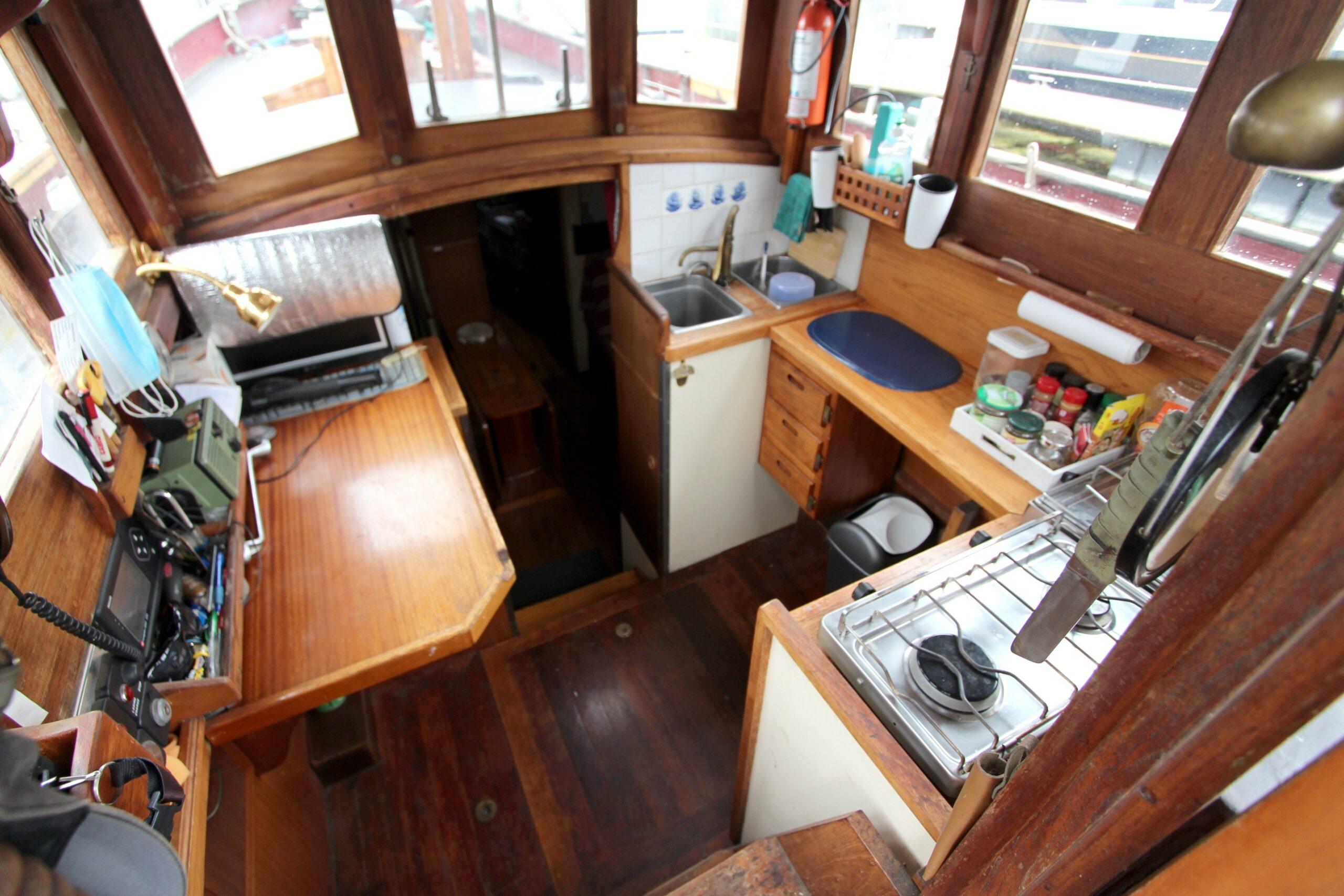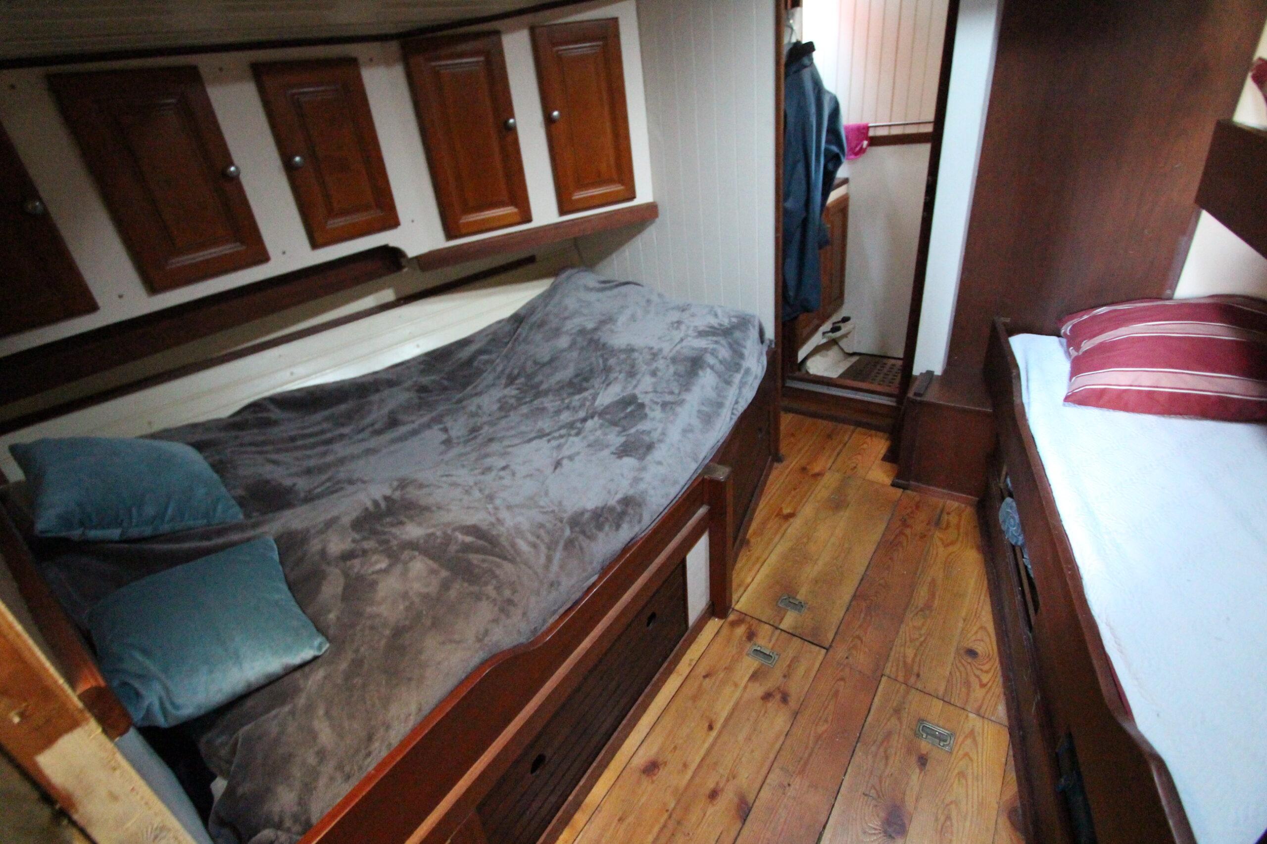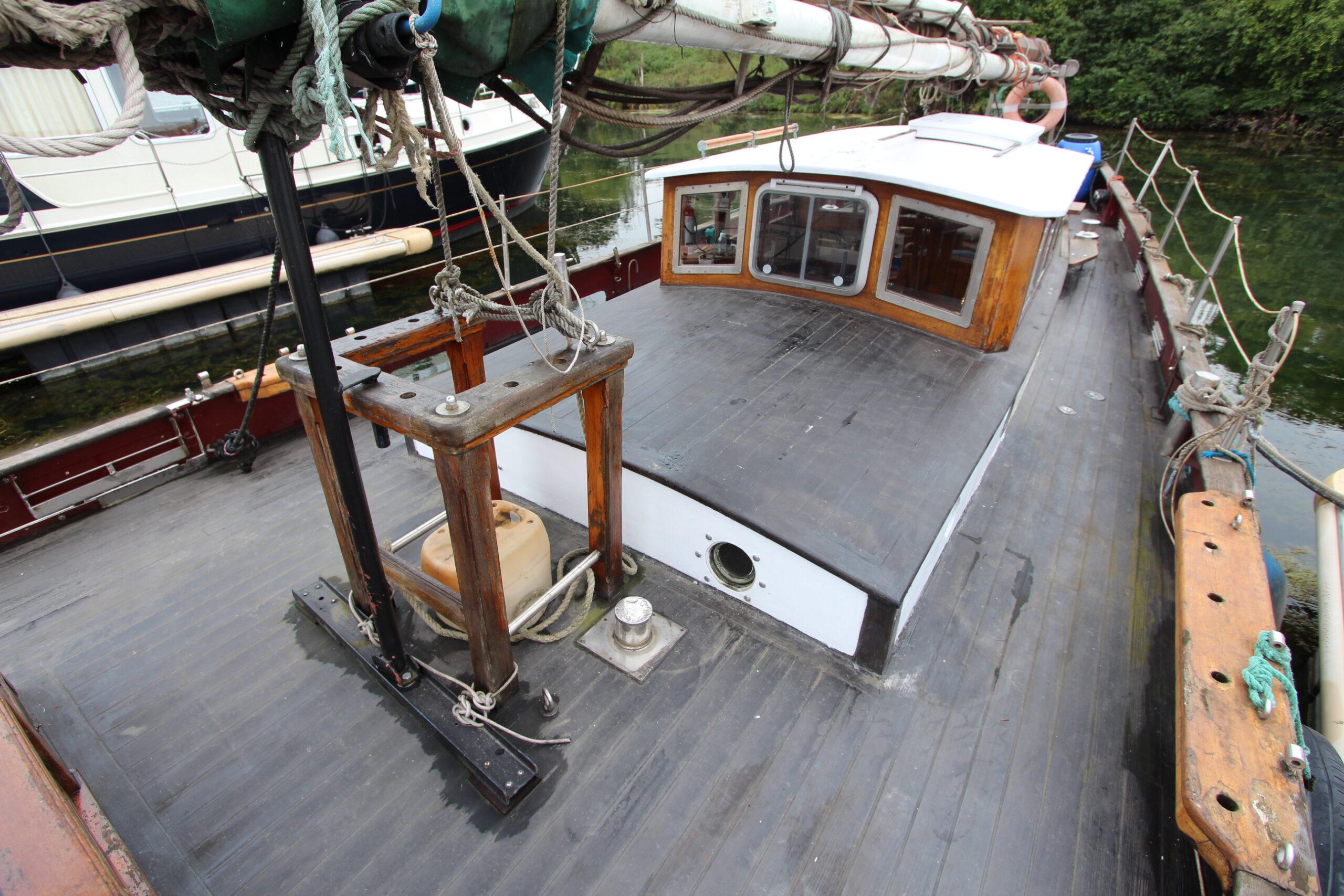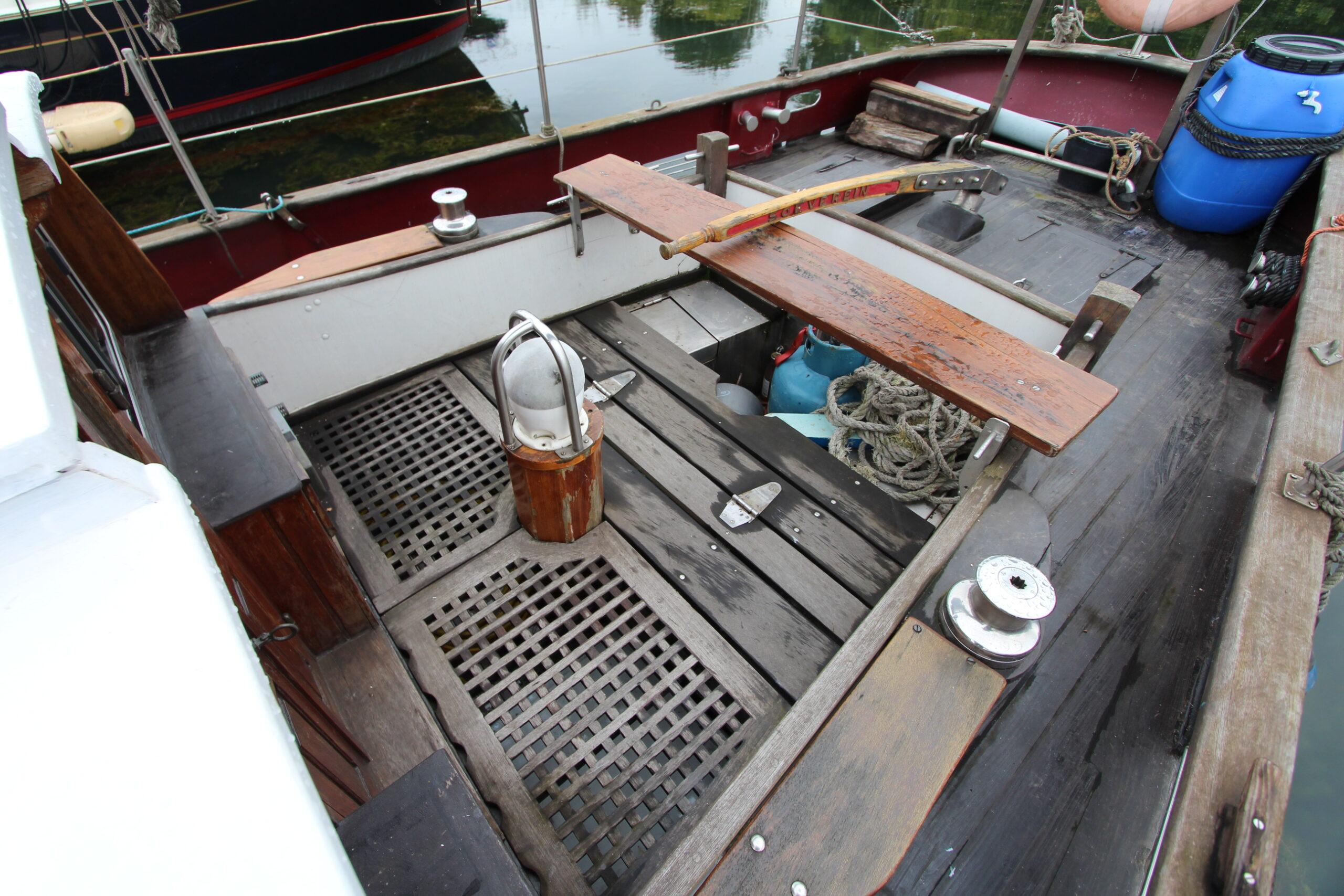 Voilier construit en 1992. Il est la seule réplique d’un “Côtre pilote” du Havre. Sur la mer, il navigue avec une constance et une stabilité incomparable. Ses voiles déployées il est difficilement rattrapable par les autres voiliers d’où son nom “Cours Après”. C’est un bateau qui à conserver tout son charme et qui recherche un nouveau propriétaire pour le bichonner. L’intérieur offre un coin cuisine, un salon, une cabine et un WC. Une rénovation des boiseries est à prévoir ainsi que l’étanchéité des fenêtres et des plats-bords. Une rénovation complète est recommandé.