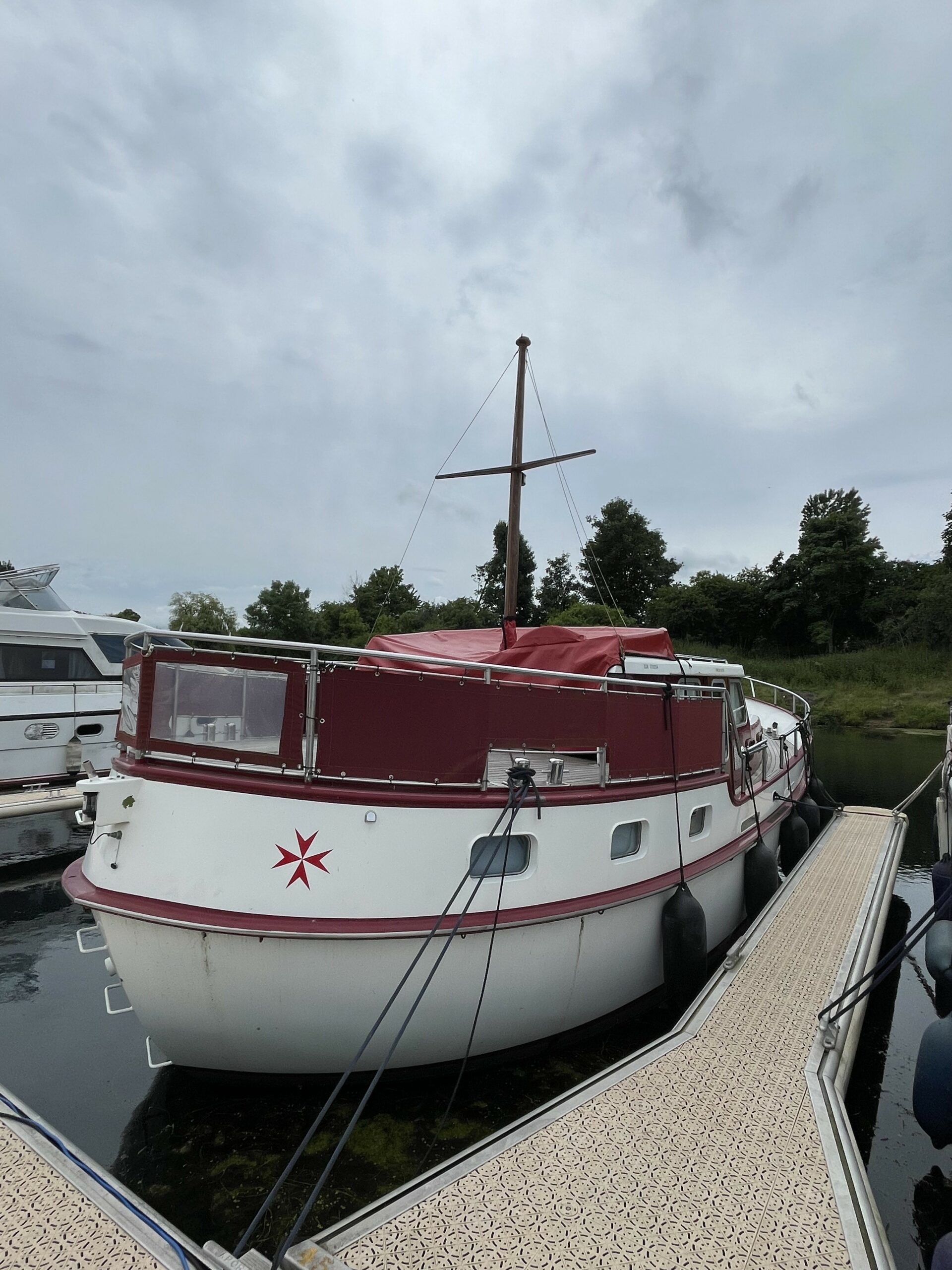 Ce yacht à moteur de 11,50 mètres de long et de 3,90 mètres de large, fruit du célèbre chantier naval néerlandais, incarne la robustesse et l’élégance propres à cette gamme. Sa coque solide en acier aux bords arrondis, caractéristique des Kompier Kotters, promet une durabilité et une sécurité remarquables, que ce soit pour naviguer sur les paisibles voies intérieures ou pour s’aventurer le long des côtes. Cette coque contribue également à une stabilité et un confort de navigation appréciables.