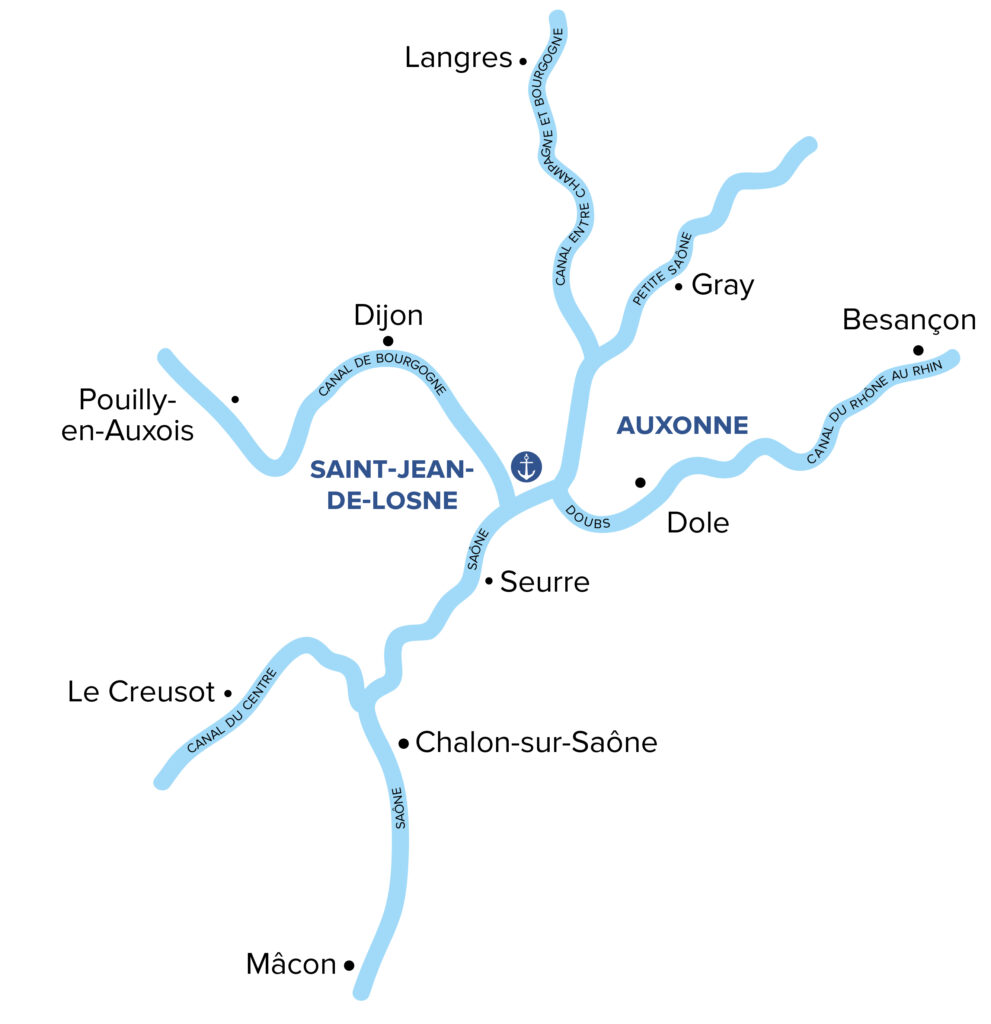 Nous sommes situés en Bourgogne sur la Saône, à deux pas de la Franche-Comté. Connue dans le monde entier pour ses vignobles prestigieux et sa cuisine authentique, notre belle région champêtre vous ravira avec ses étendues de vignes, ses forêts mystérieuses, ses massifs montagneux et ses sites exceptionnels.