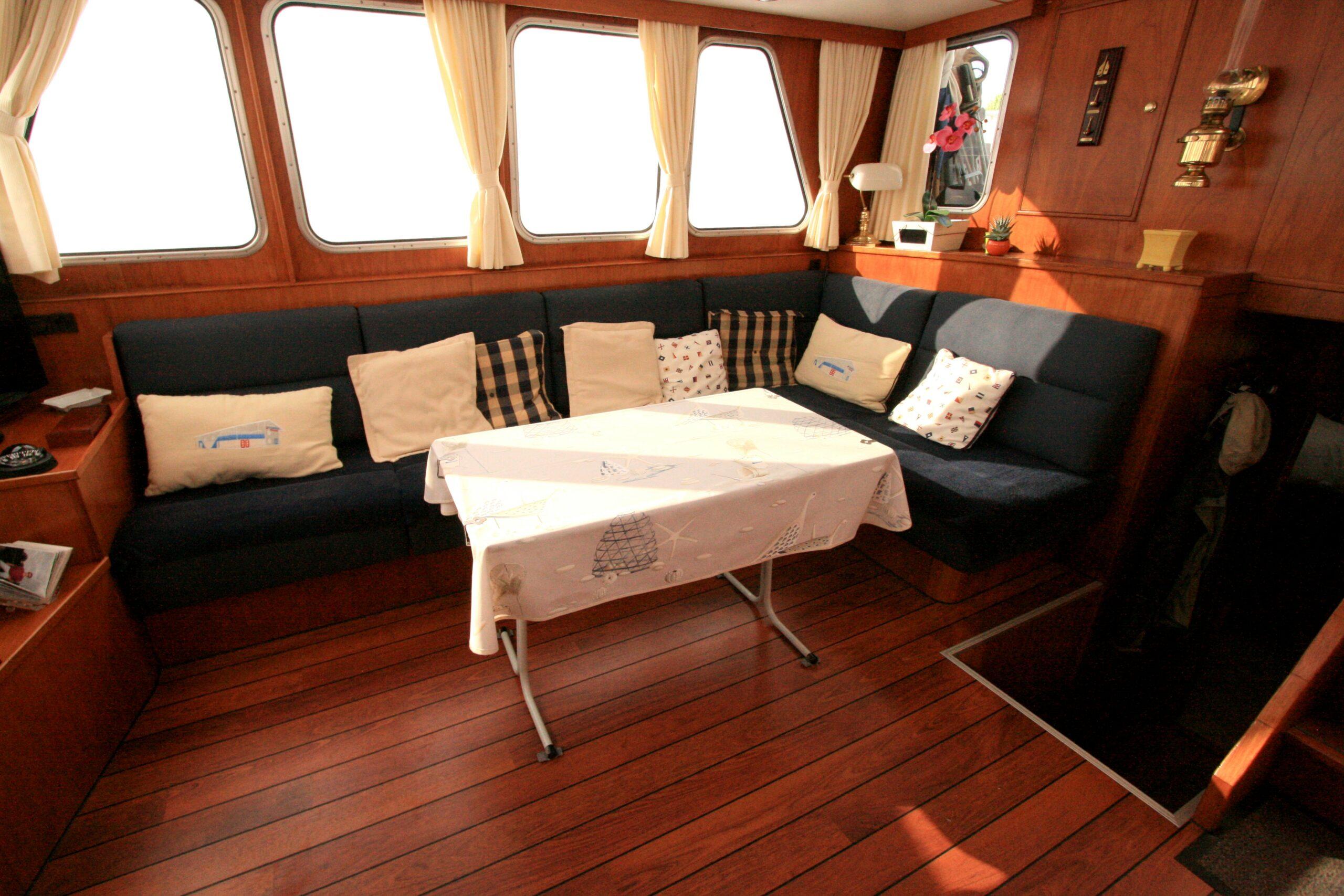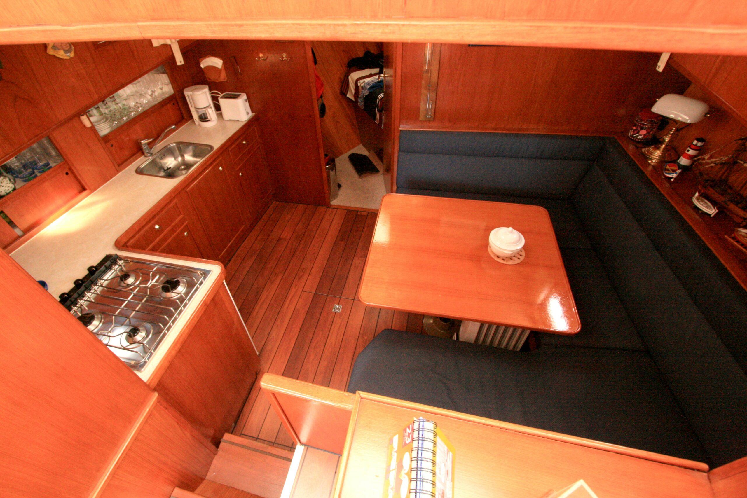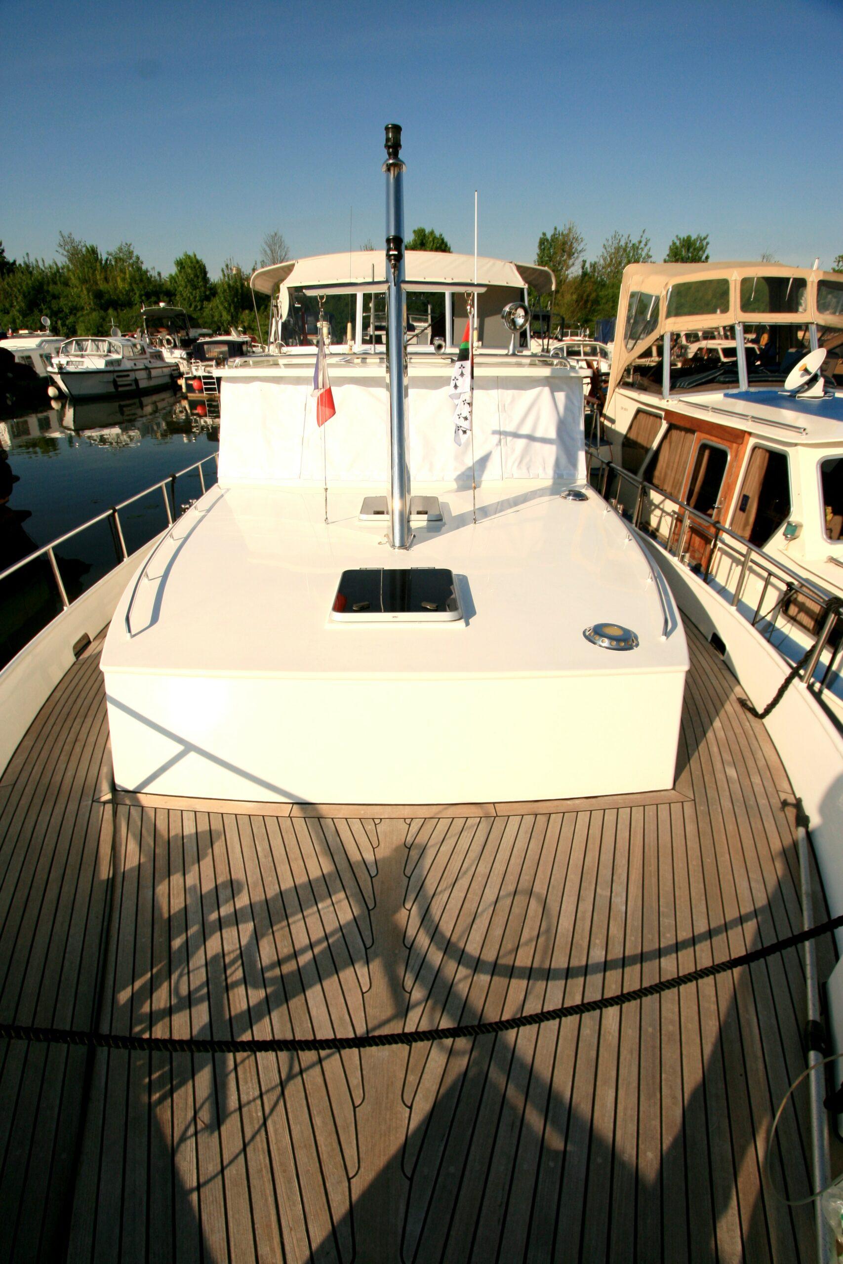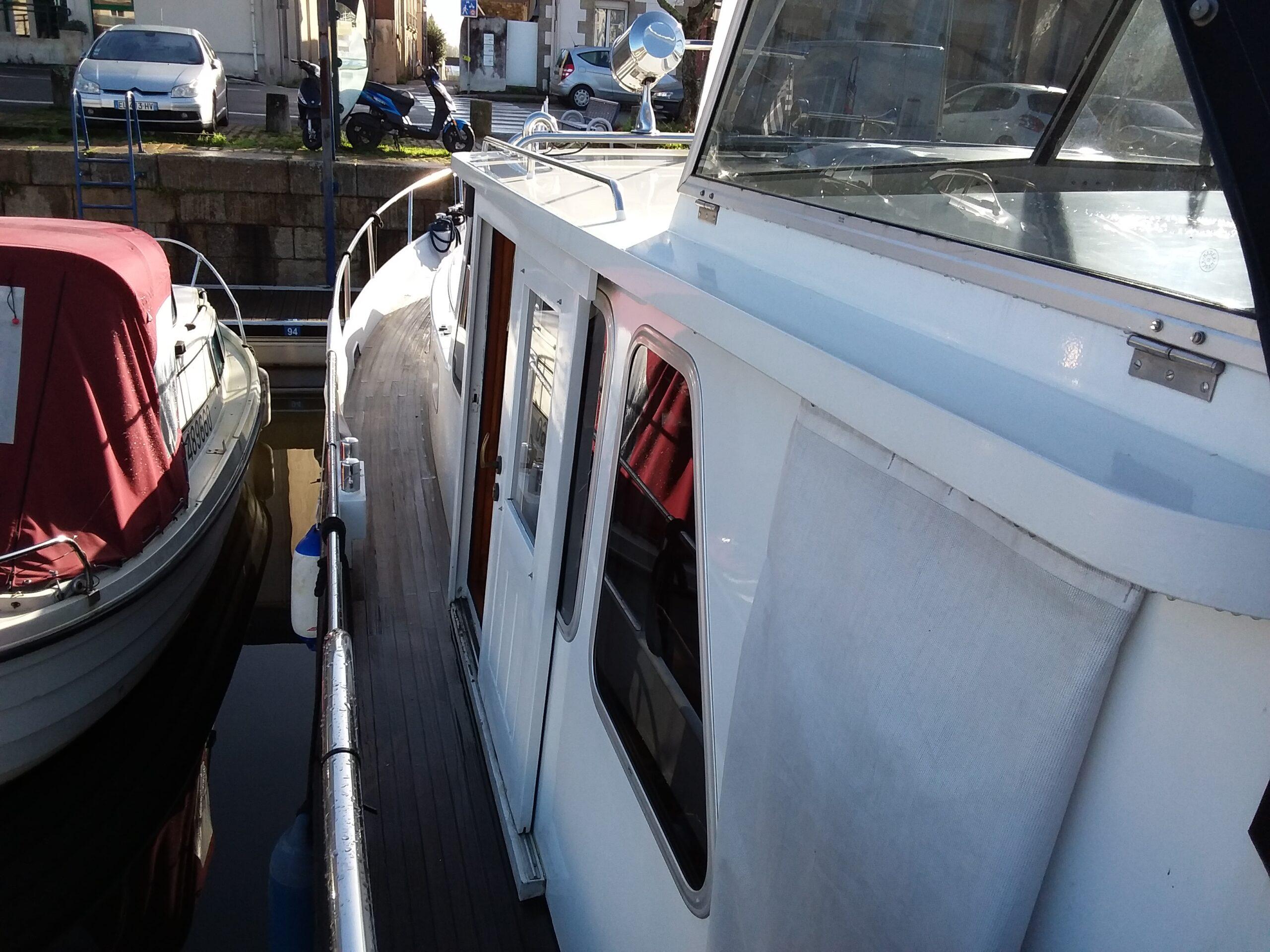 Superbe Kotter de 1996, mer et rivière. Bateau bien entretenu en excellent état. Couchages pour 6 personnes, 2 cabines. Terrasse avec poste de pilotage et entrée. Salon avec canapé et poste de pilotage. WC. Cabine arrière avec 2 lits simples et salle de bain. Dinette convertible en lit double. Cuisine équipée. Cabine avant avec lit double. Bateau confortable et spacieux.