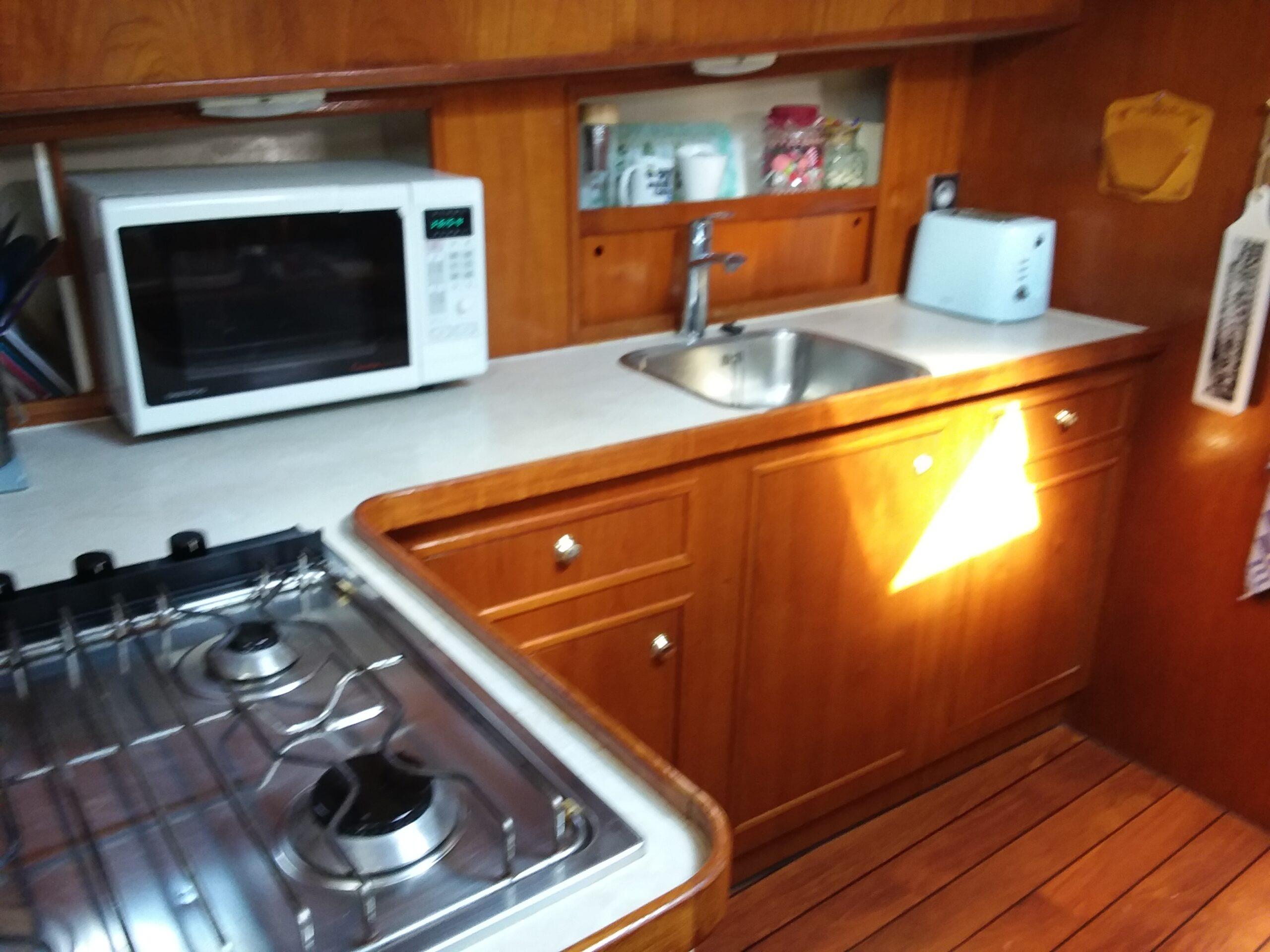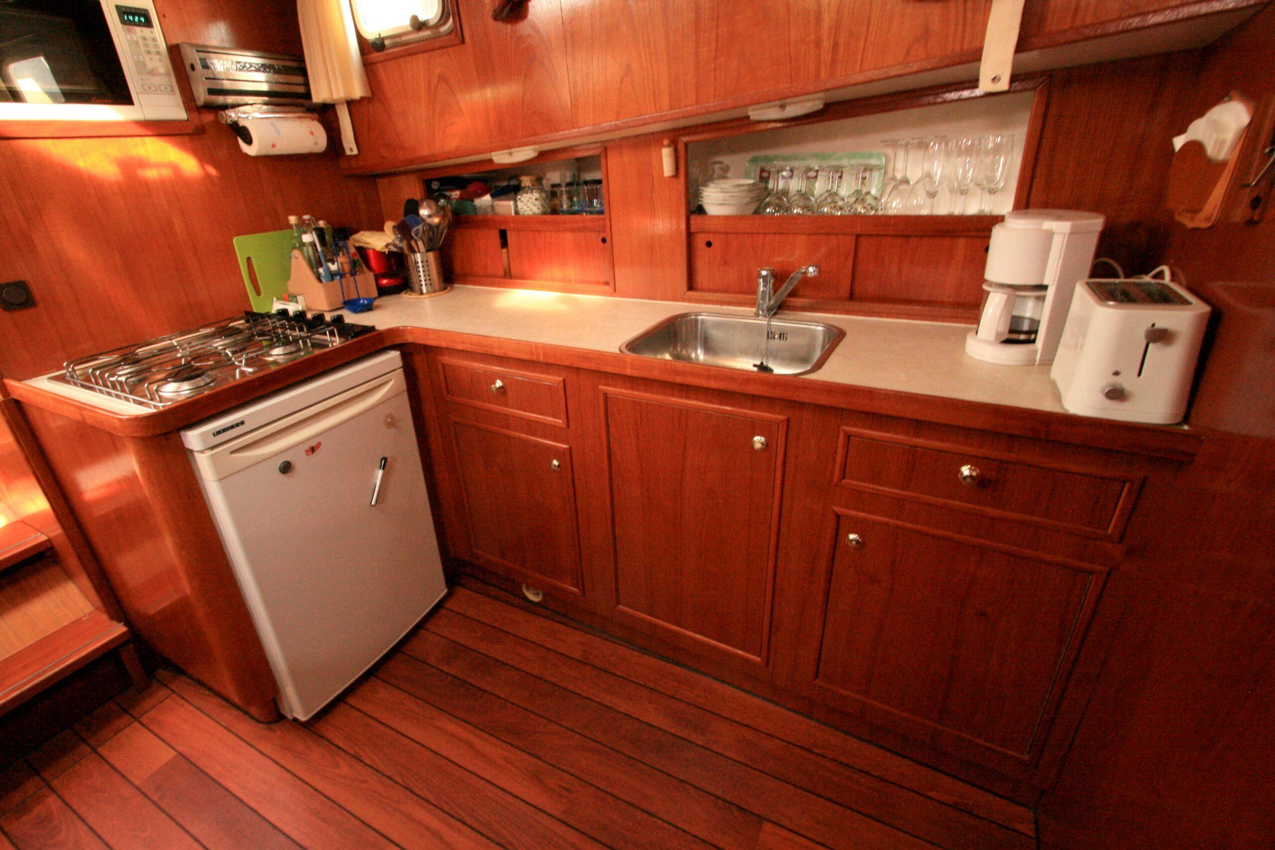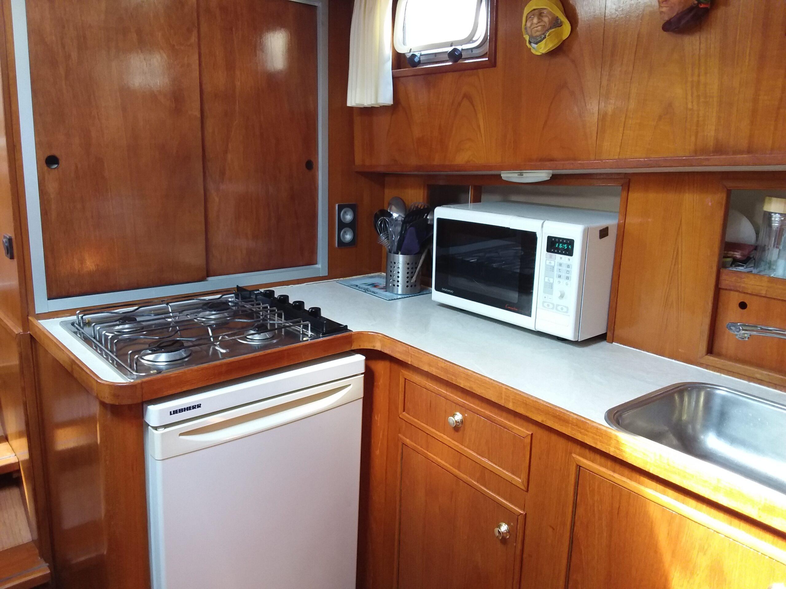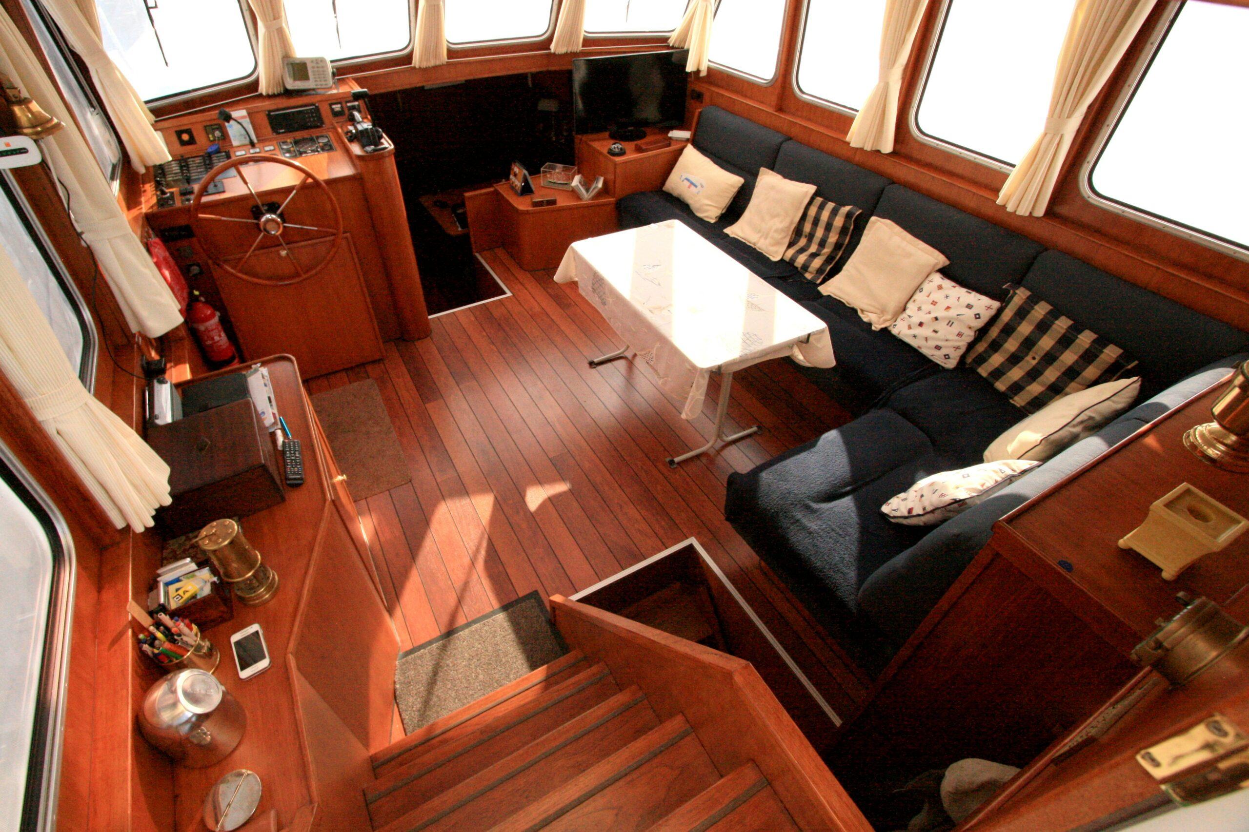 Superbe Kotter de 1996, mer et rivière. Bateau bien entretenu en excellent état. Couchages pour 6 personnes, 2 cabines. Terrasse avec poste de pilotage et entrée. Salon avec canapé et poste de pilotage. WC. Cabine arrière avec 2 lits simples et salle de bain. Dinette convertible en lit double. Cuisine équipée. Cabine avant avec lit double. Bateau confortable et spacieux.